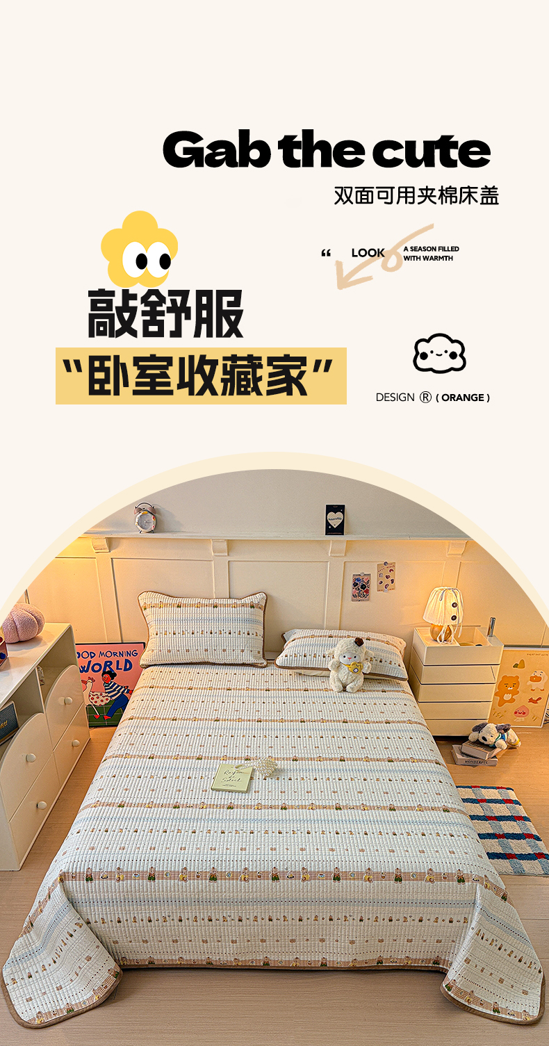 橙子家居 2025新款棉加绒床盖床盖单件床盖单品床盖三件套夹层水洗棉花跑量款现货 幸运熊