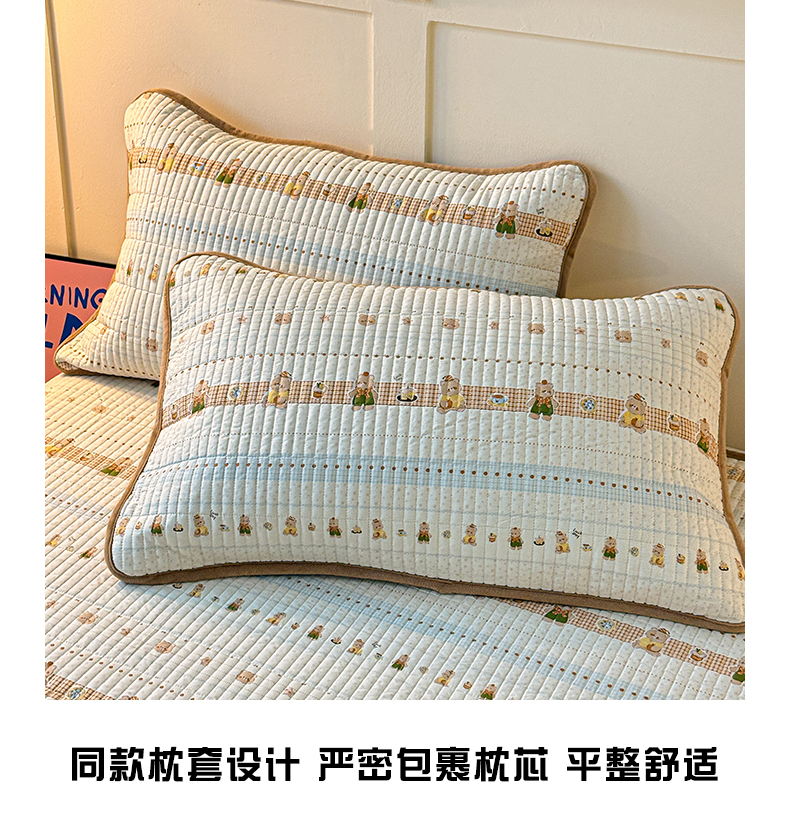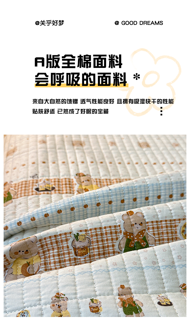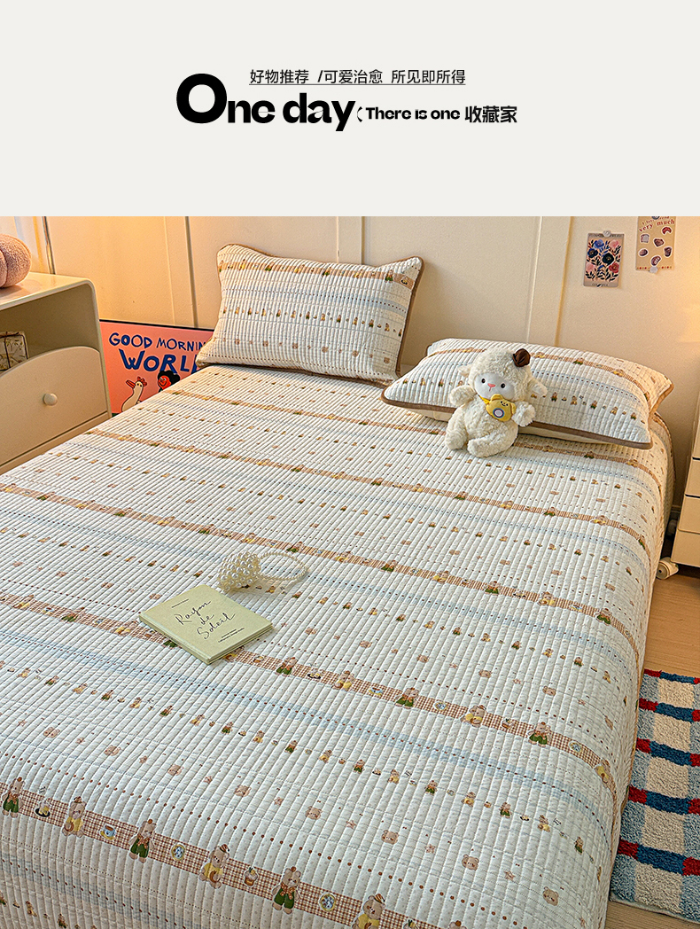 (总)橙子家居 2025新款双面全棉纯棉砂洗夹棉床盖三件套,粉木马,腊肠狗,梦露花园,苹果趣事,甜心南瓜,小熊贝蒂,樱桃派,组合图仅供展示,格子小熊,赫本,莫娇-黄,沁花-绿,薇恋时光,雾里花-粉,雅清