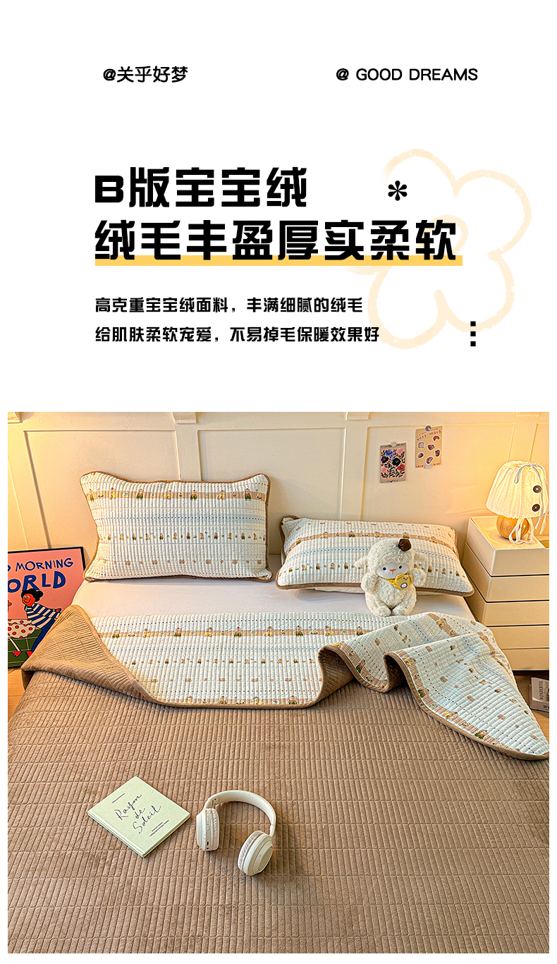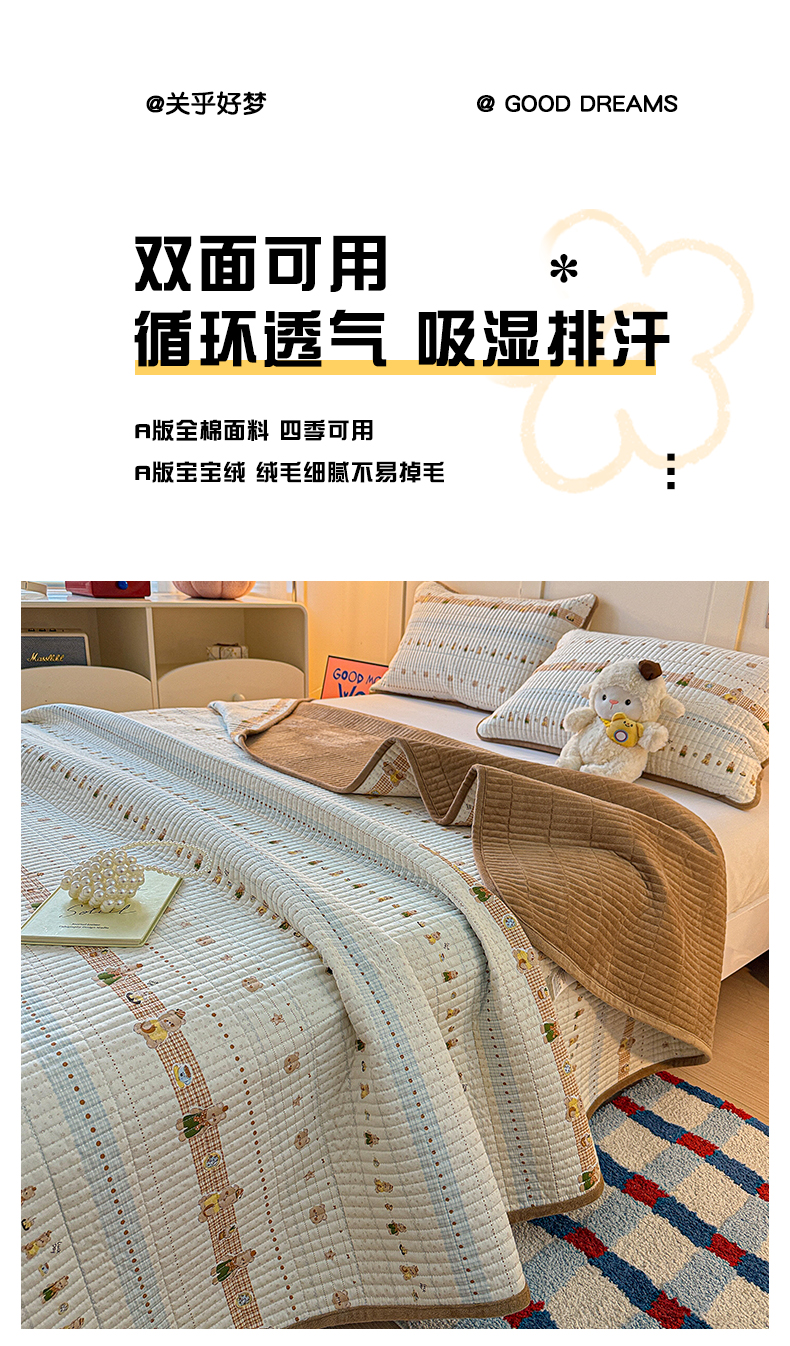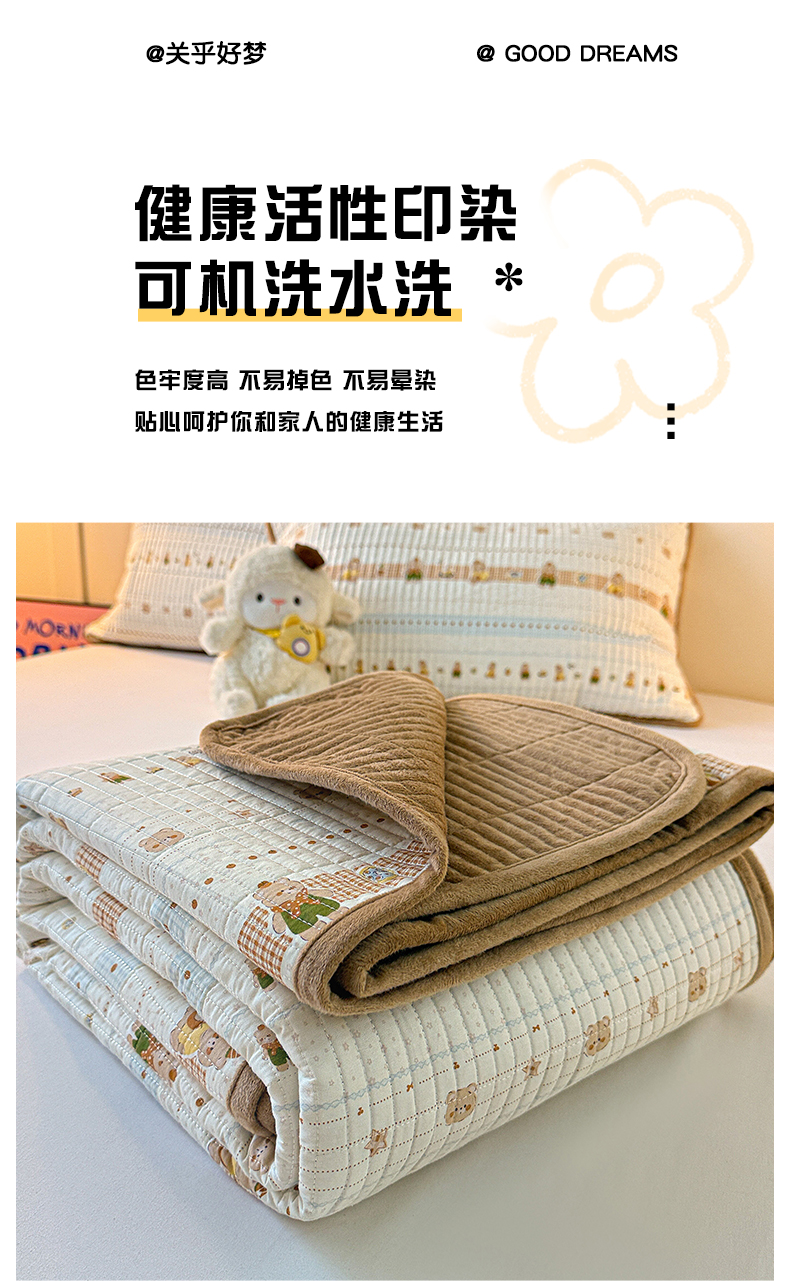 商品名称:橙子家居 2025新款棉加绒床盖床盖单件床盖单品床盖三件套夹层水洗棉花跑量款现货 幸运熊