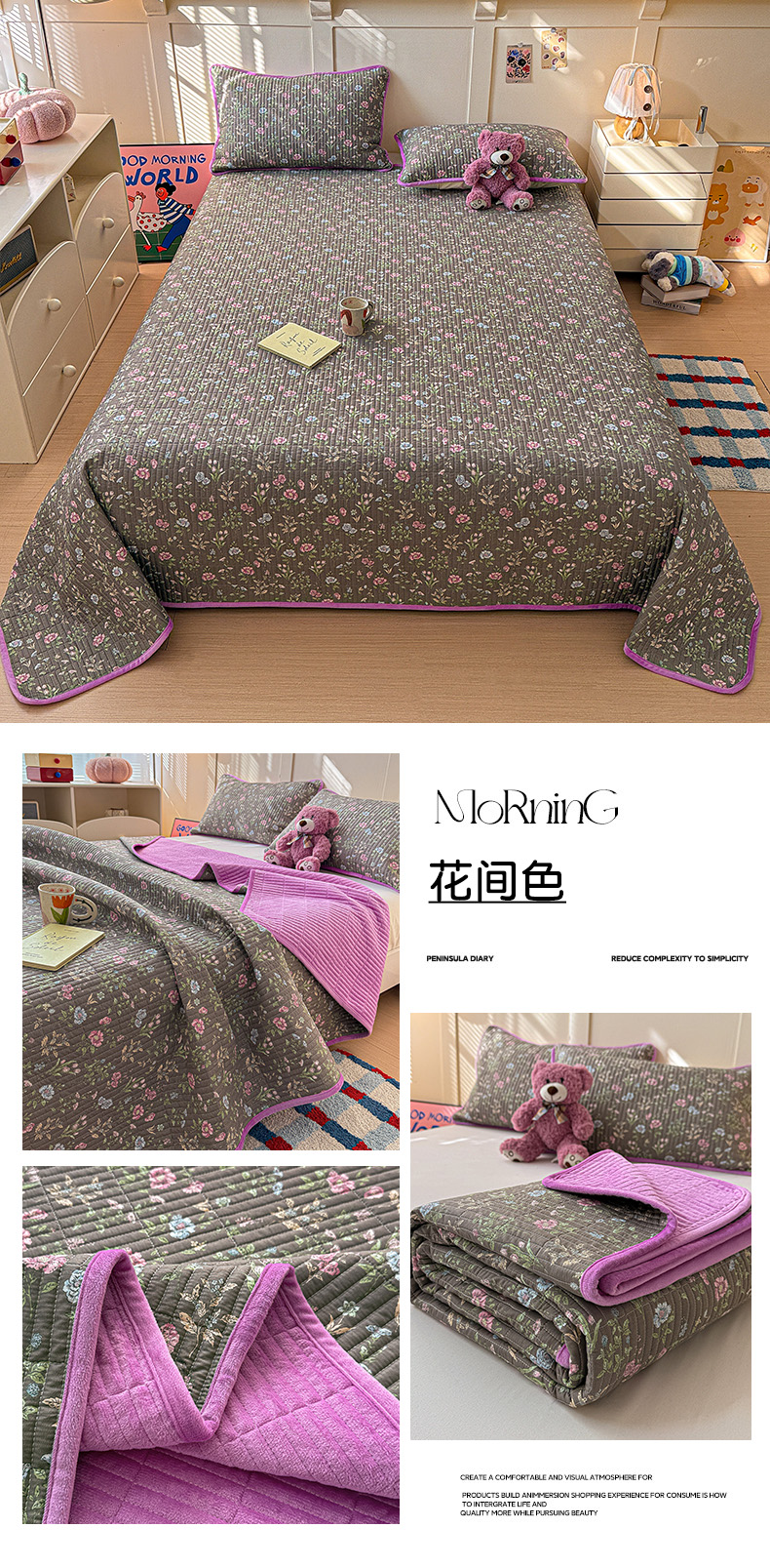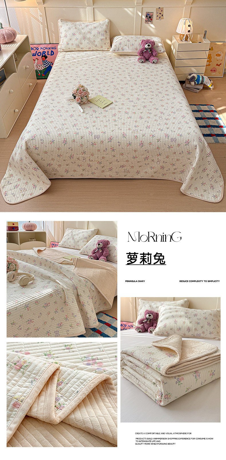 (总)橙子家居 2025新款棉加绒床盖床盖单件床盖单品床盖三件套夹层水洗棉花跑量款现货,组合图仅供展示不可下单,花边兔,花间色,见春山,萝莉兔,洛丽丝,千代兰,若兮花,新新一家,幸运熊,熊猫卡皮,云棠