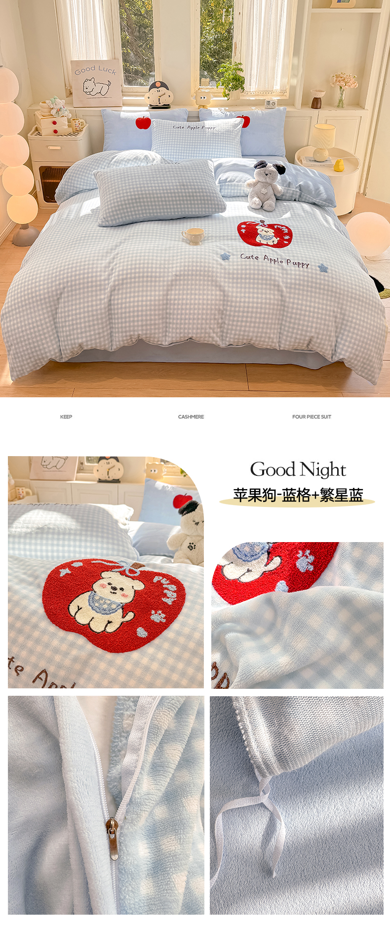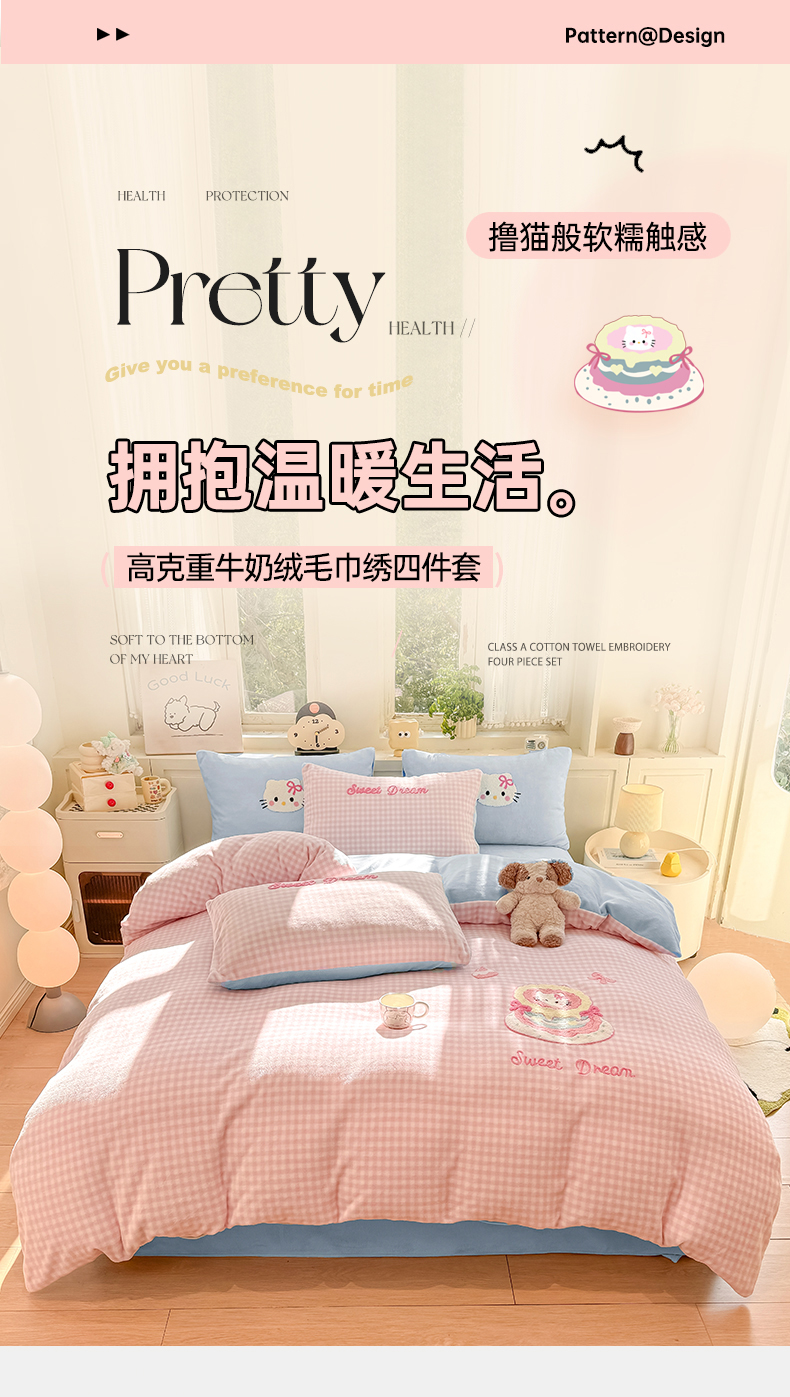 当前位置: 91家纺网 > 商品网购 > 床品套件 > 四件套 > 牛奶绒四件套 > 灰鲸 2025新款牛奶绒毛巾绣苹果狗、蛋糕喵系列四件套 蛋糕喵-粉格+繁星蓝