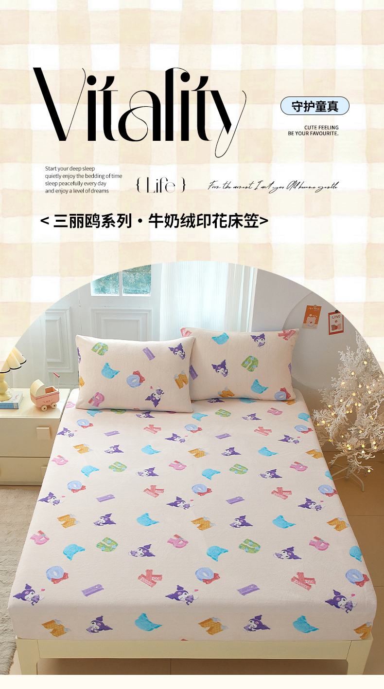 蘭菲家纺 2025新款三丽欧牛奶绒套件系列单品床笠 小库儿