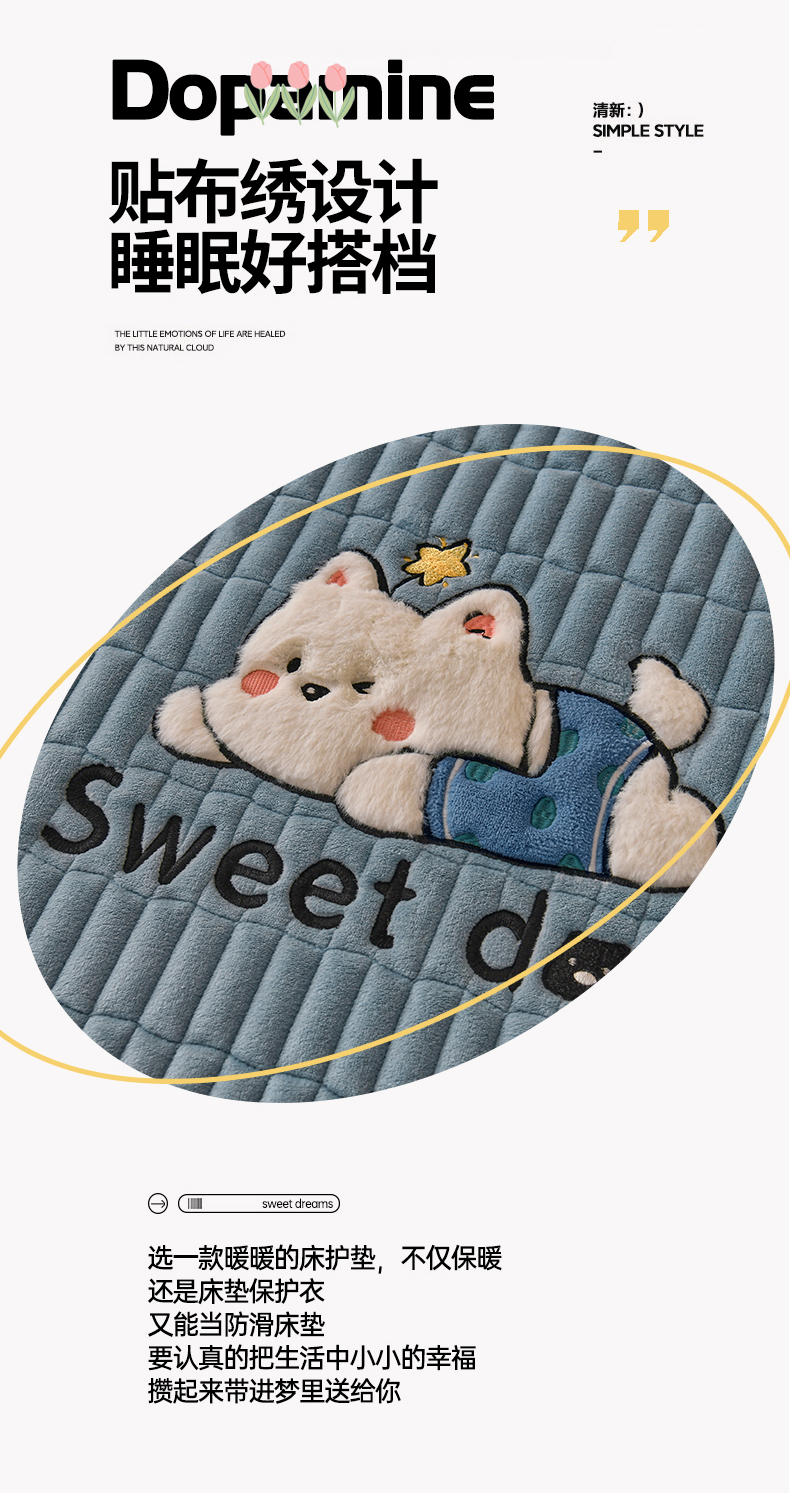 当前位置: 91家纺网 > 商品网购 > 床垫/床褥 > 普通床垫 > 悠米悠家 2025新款牛奶绒夹棉加厚床褥-小狗 小熊系列 小狗-蓝色