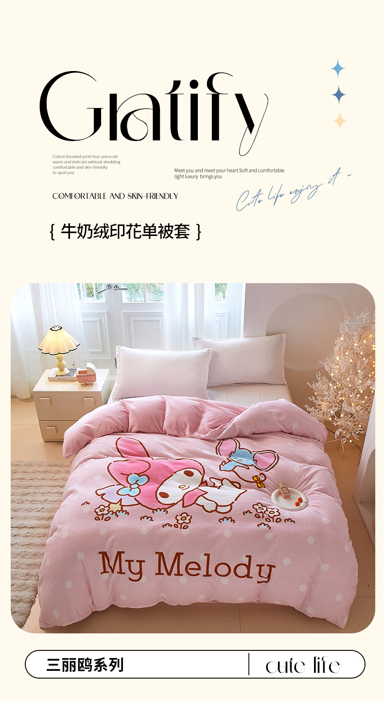 蘭菲家纺 2025新款三丽欧牛奶绒套件系列单品被套 轻松美乐蒂