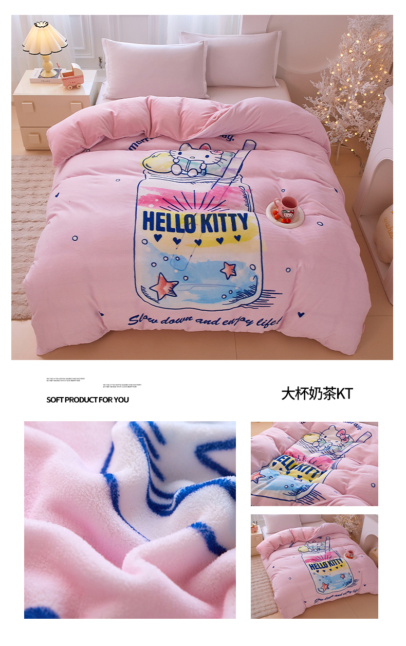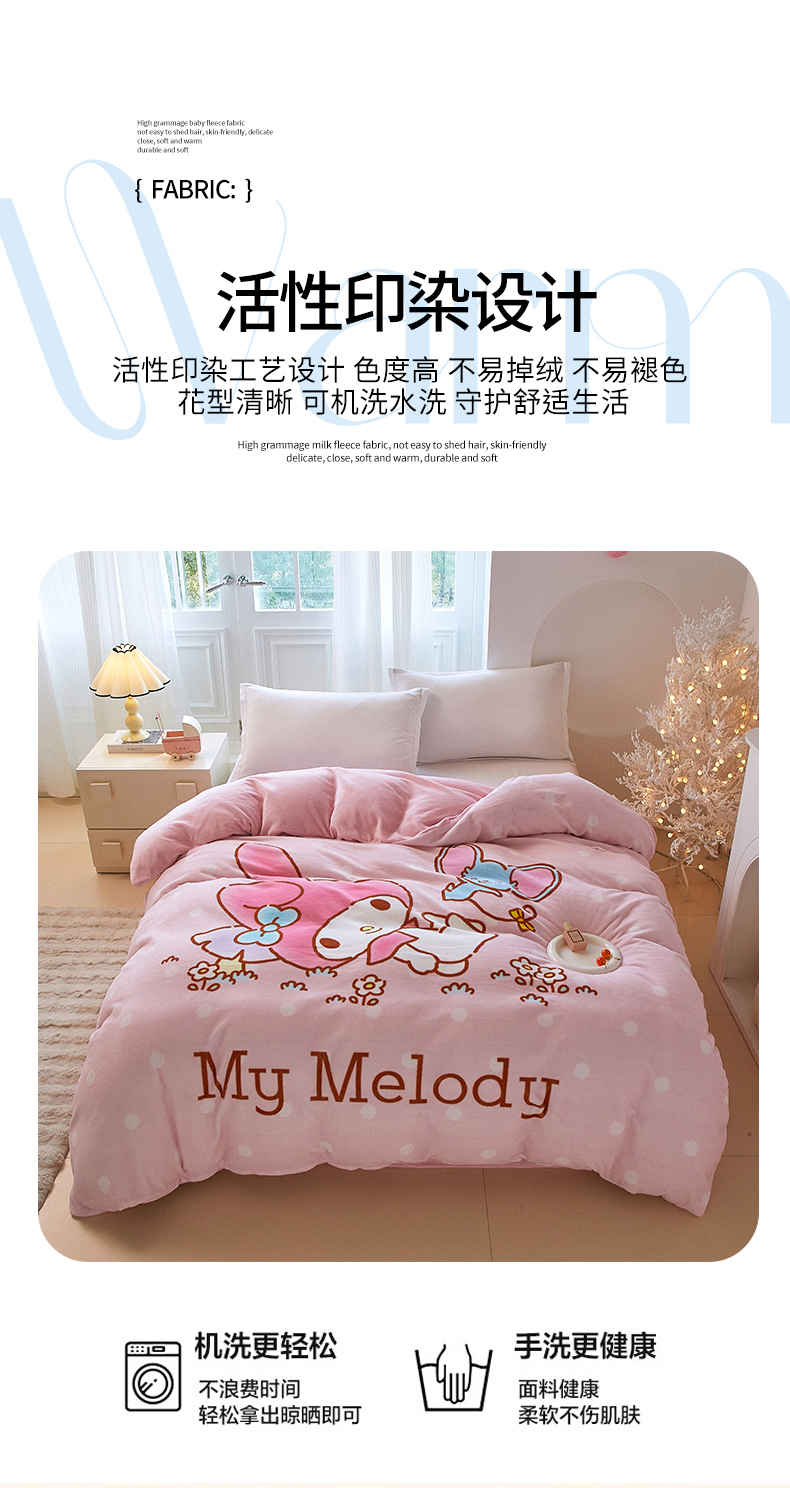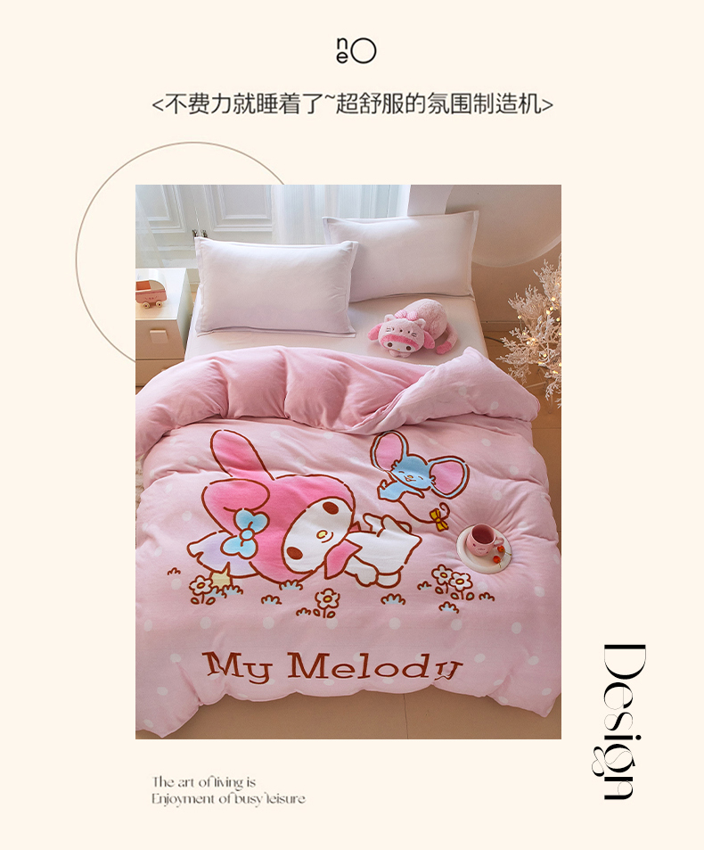 商品名称:蘭菲家纺 2025新款三丽欧牛奶绒套件系列单品被套 轻松美乐蒂