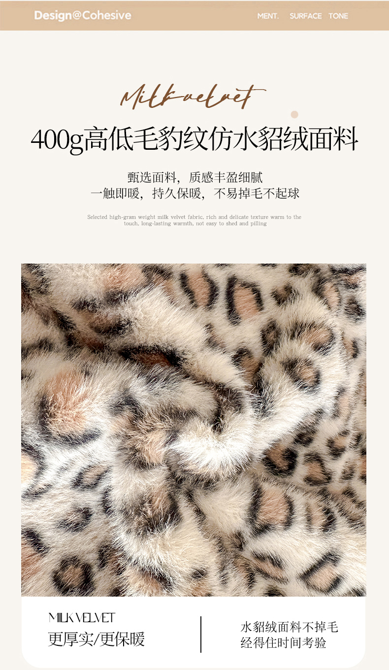 商品名称:(总)大米家居 2025新款十斤重高低毛豹纹韩版蕾丝仿水貂绒四件套-豹纹系列