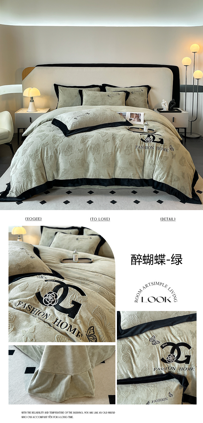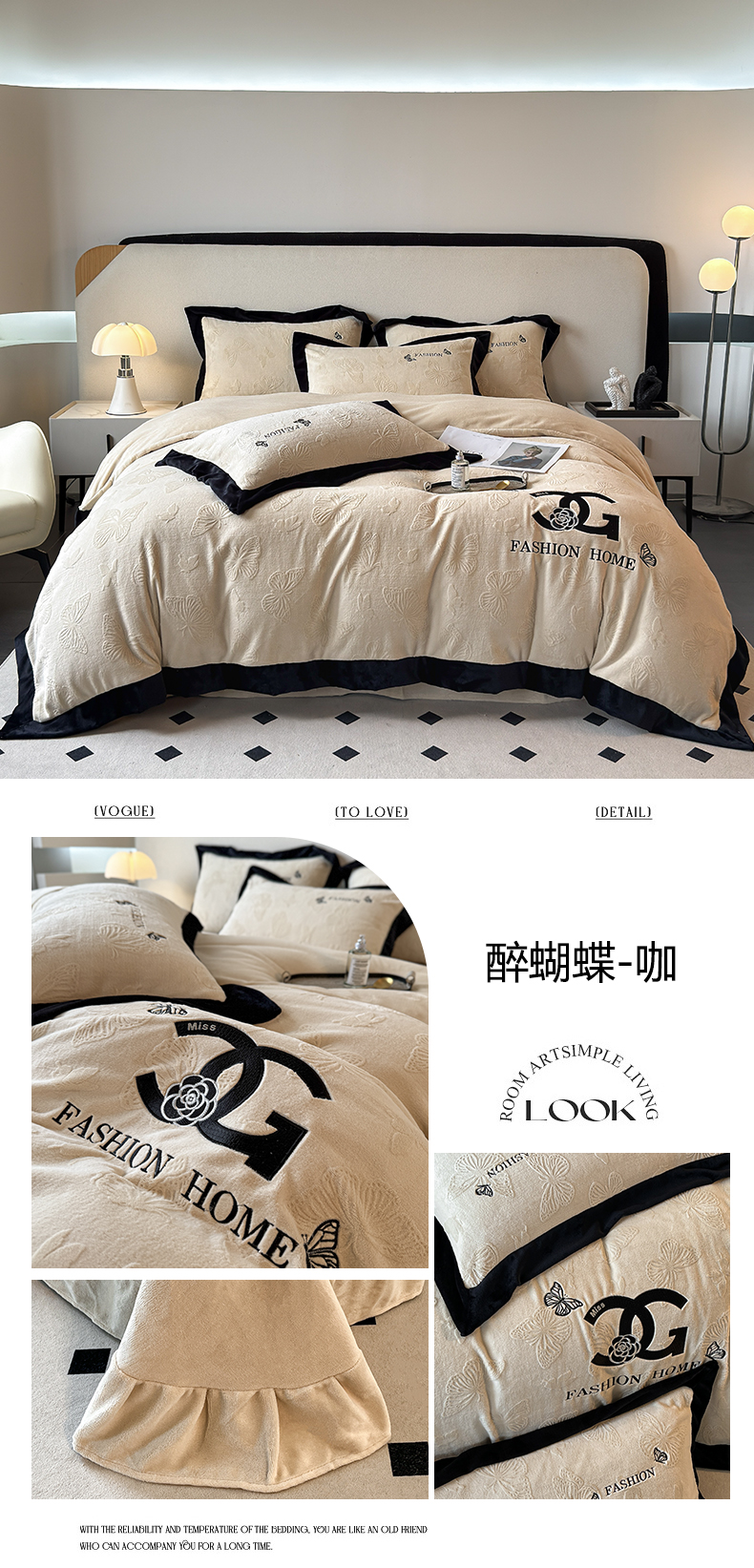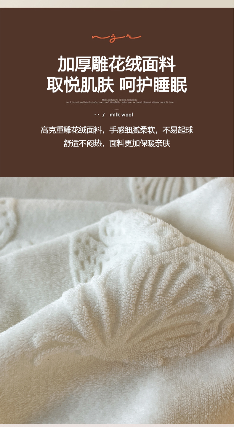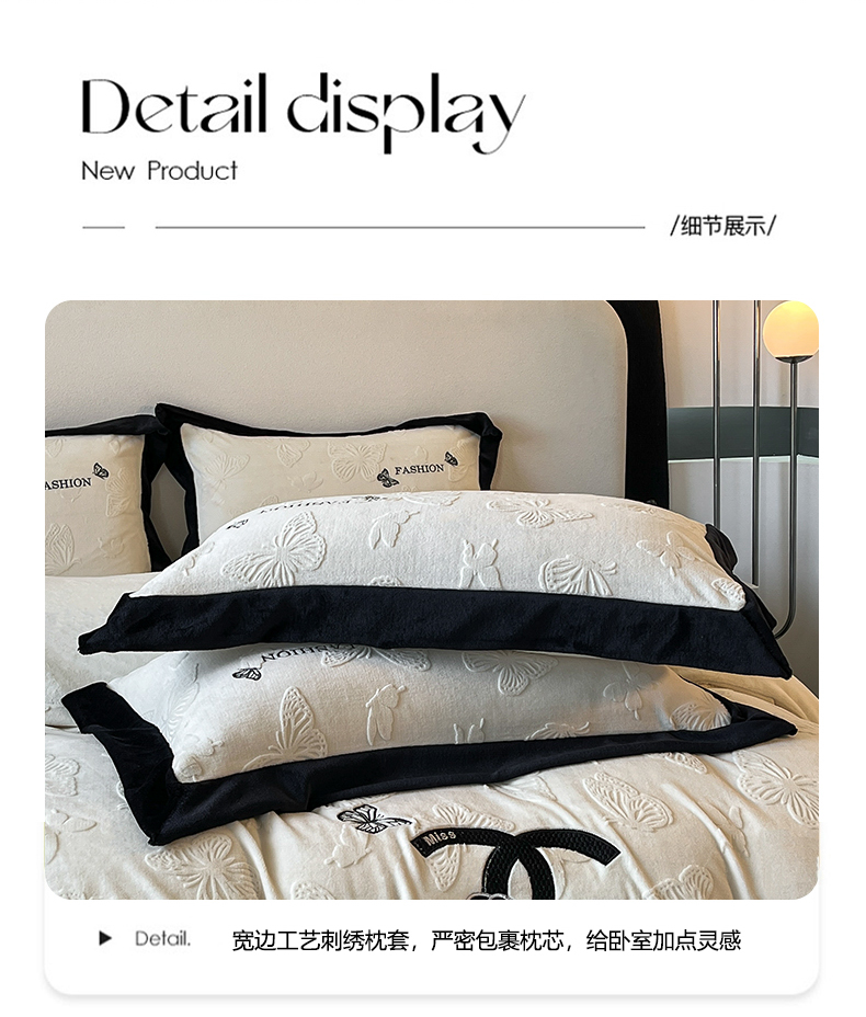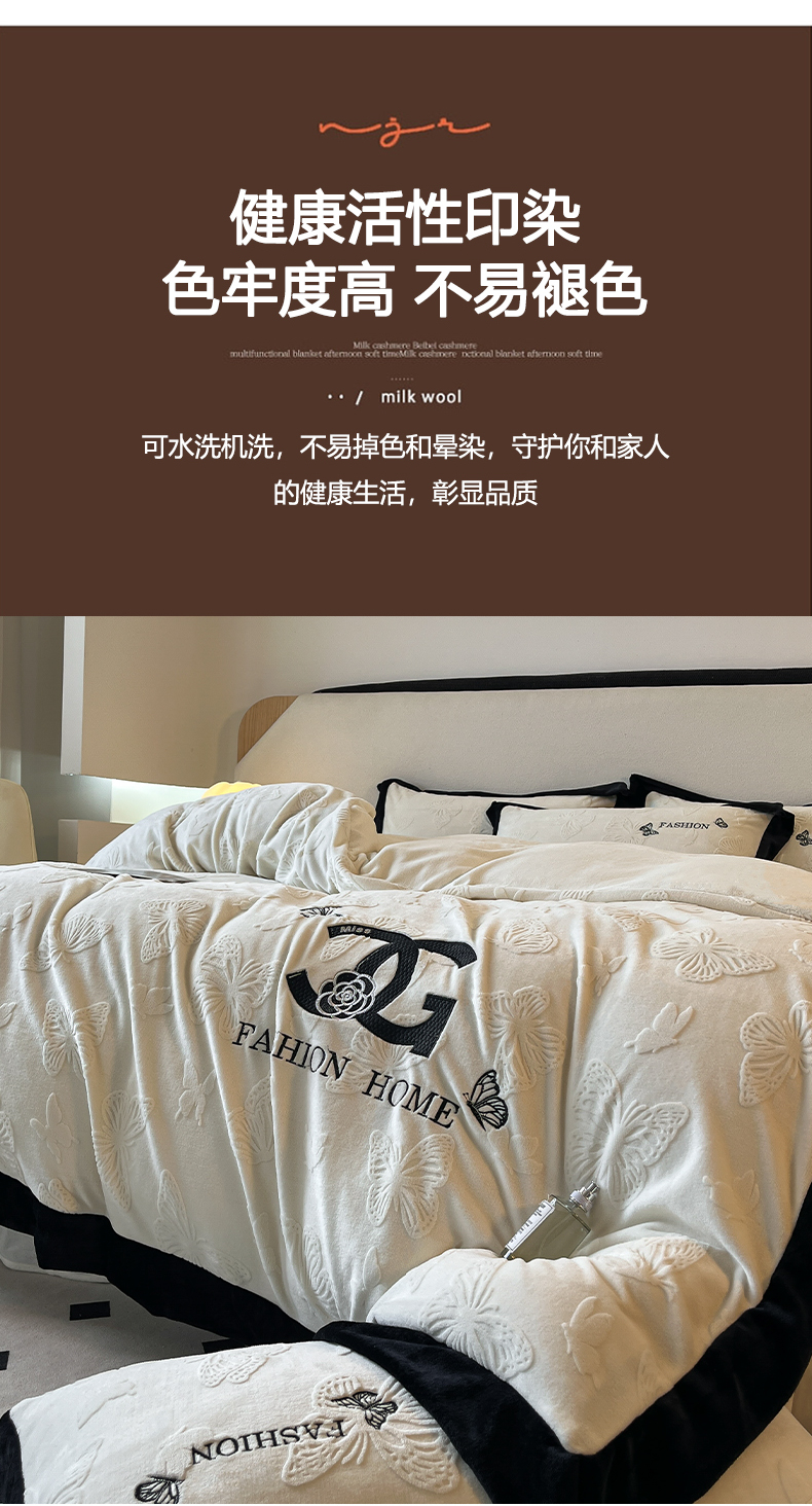 (总)子曰 2025新款雕花加厚牛奶绒宽边工艺款四件套-小香风,小香风-咖,小香风-粉,小香风-绿,小香风-米白,小香风-紫