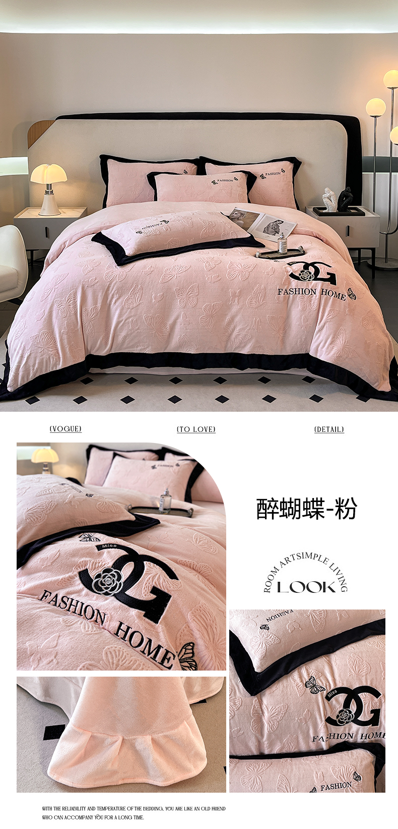 商品名称:子曰 2025新款雕花加厚牛奶绒宽边工艺款四件套-小香风 小香风-粉
