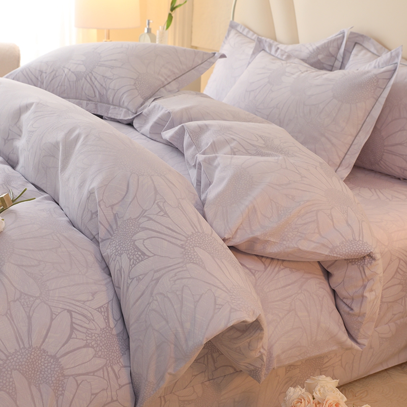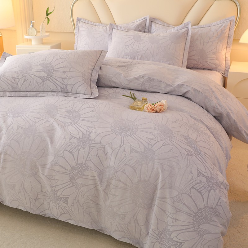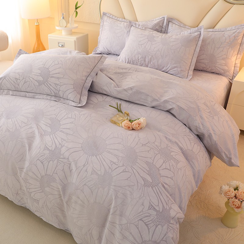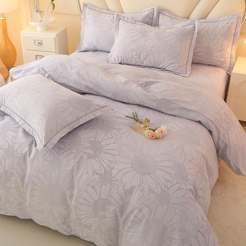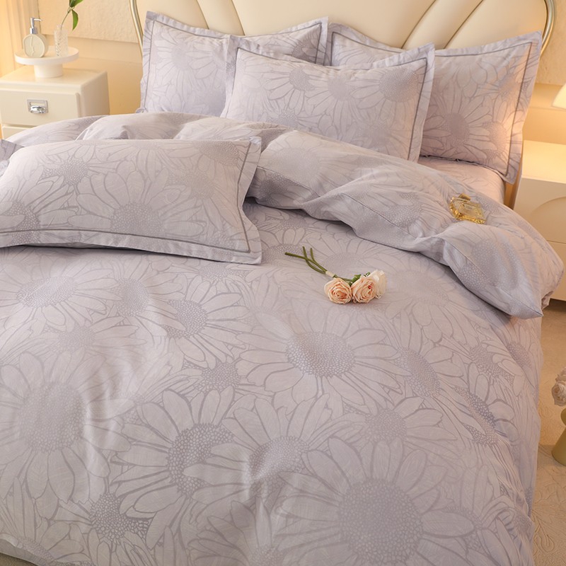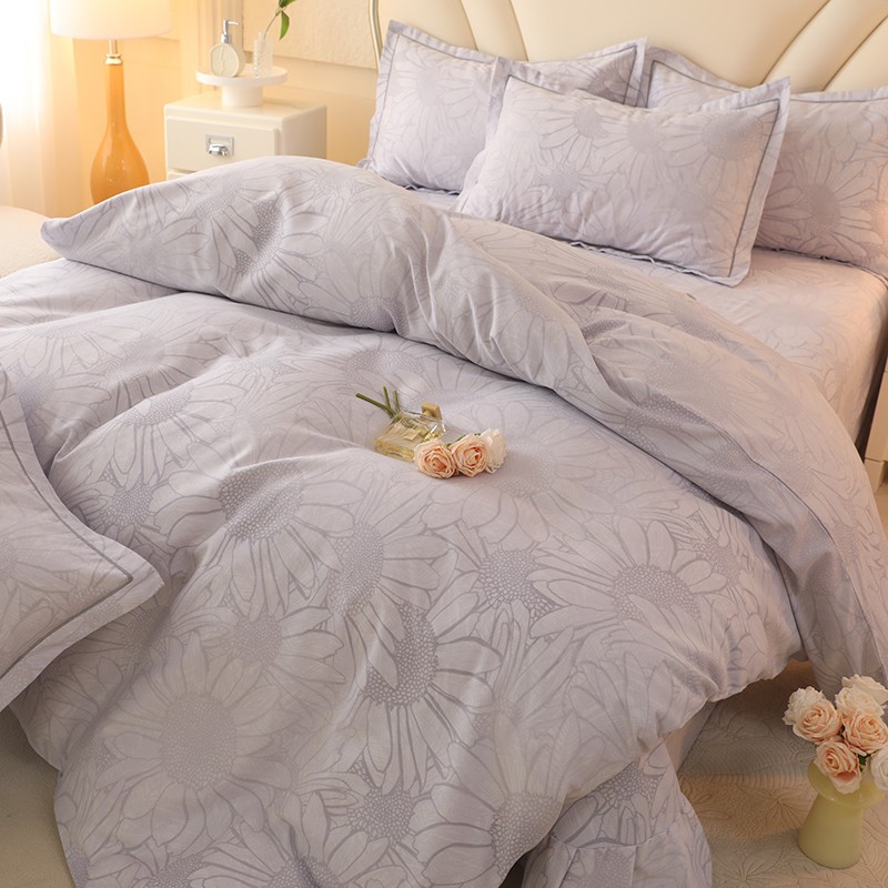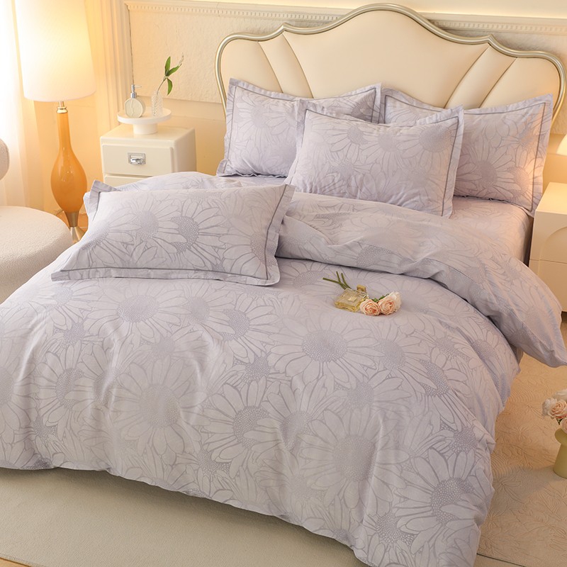 木易家居2026新款全棉磨毛印花四件套 向阳花开-灰