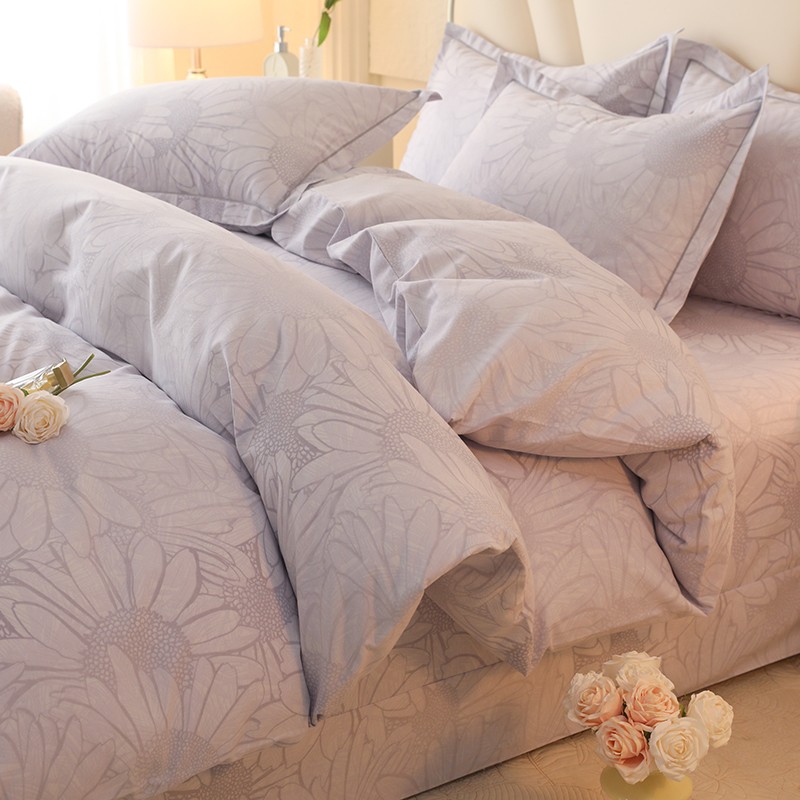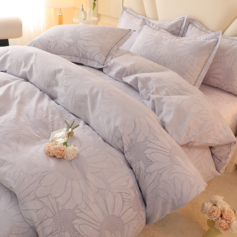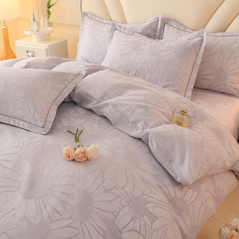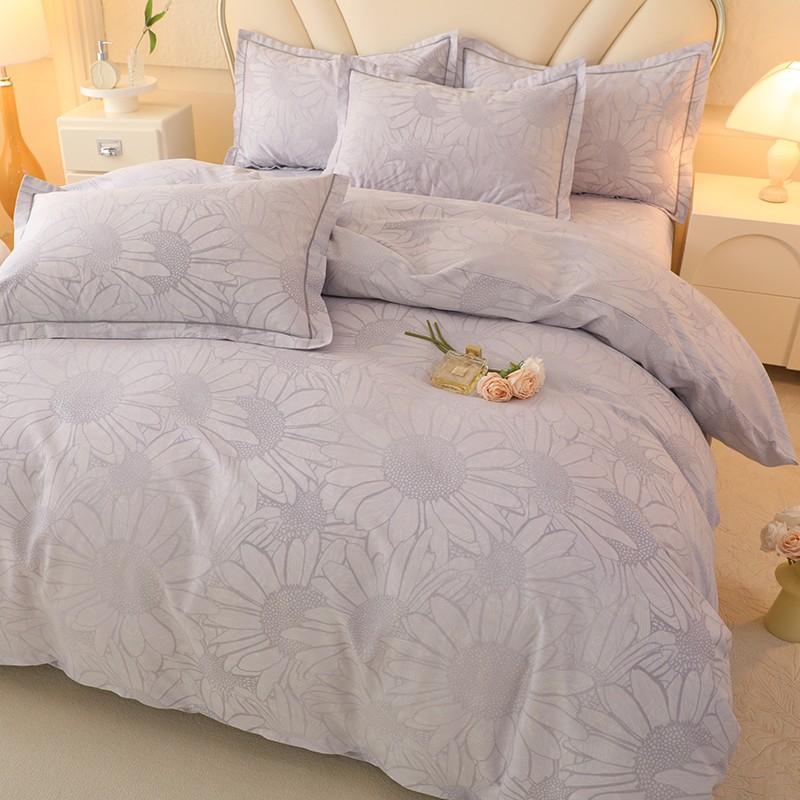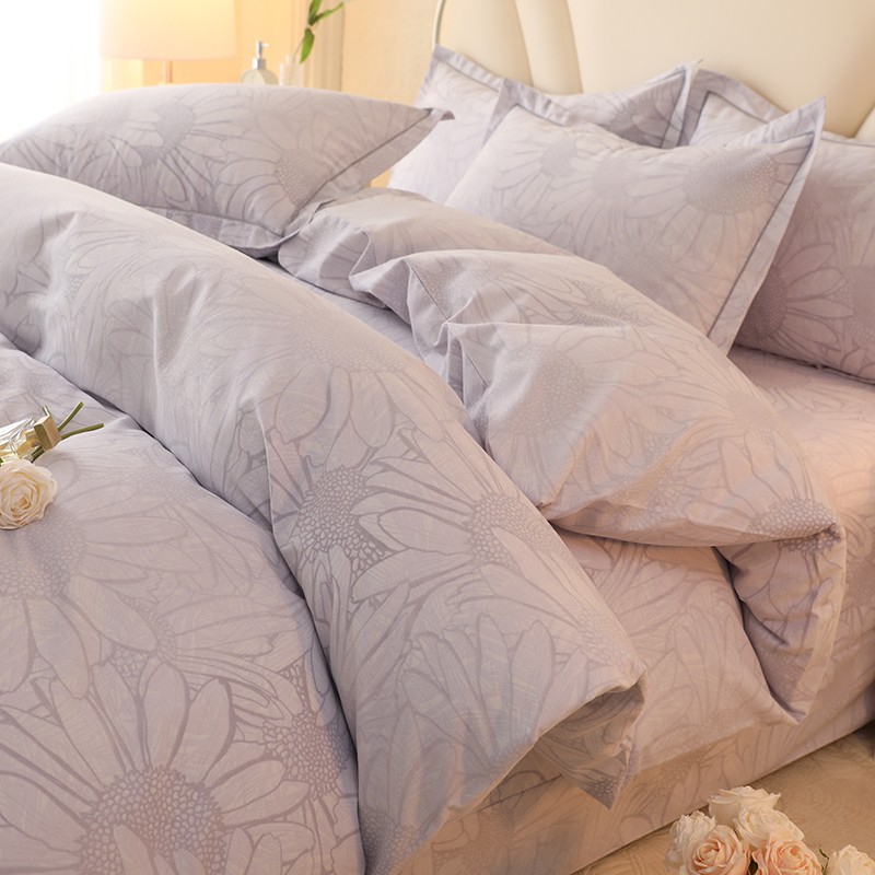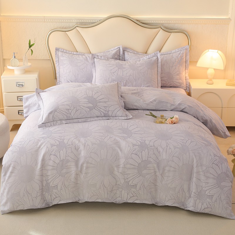 木易家居2026新款全棉磨毛印花四件套 向阳花开-灰