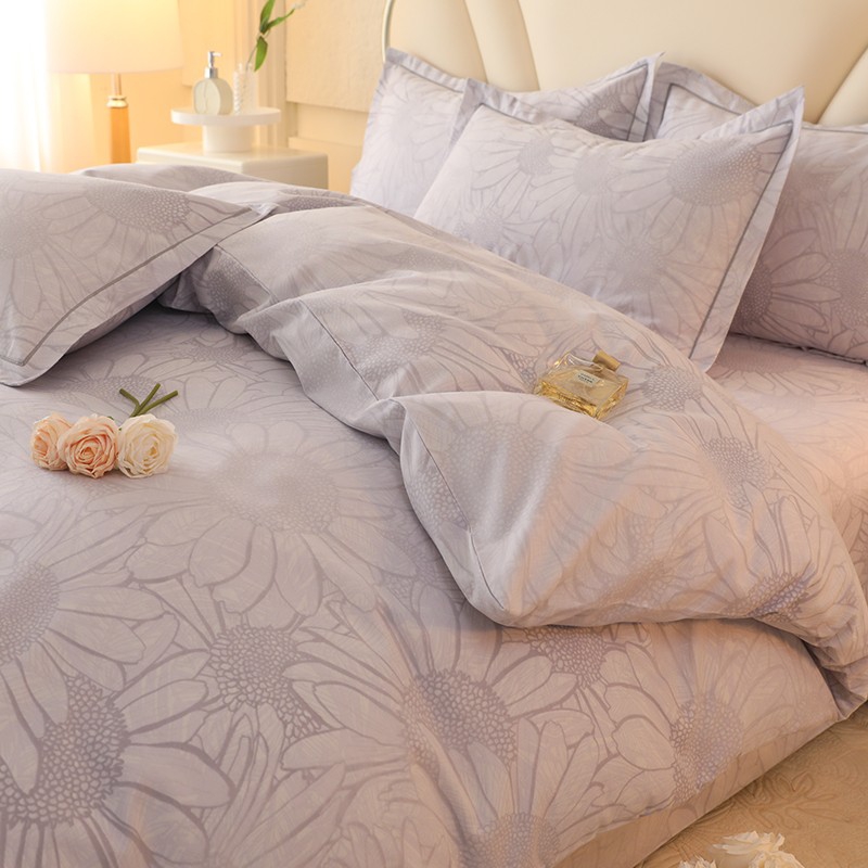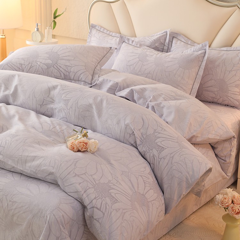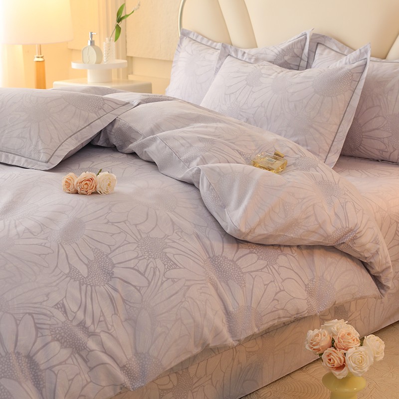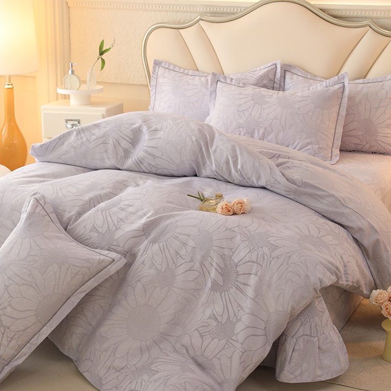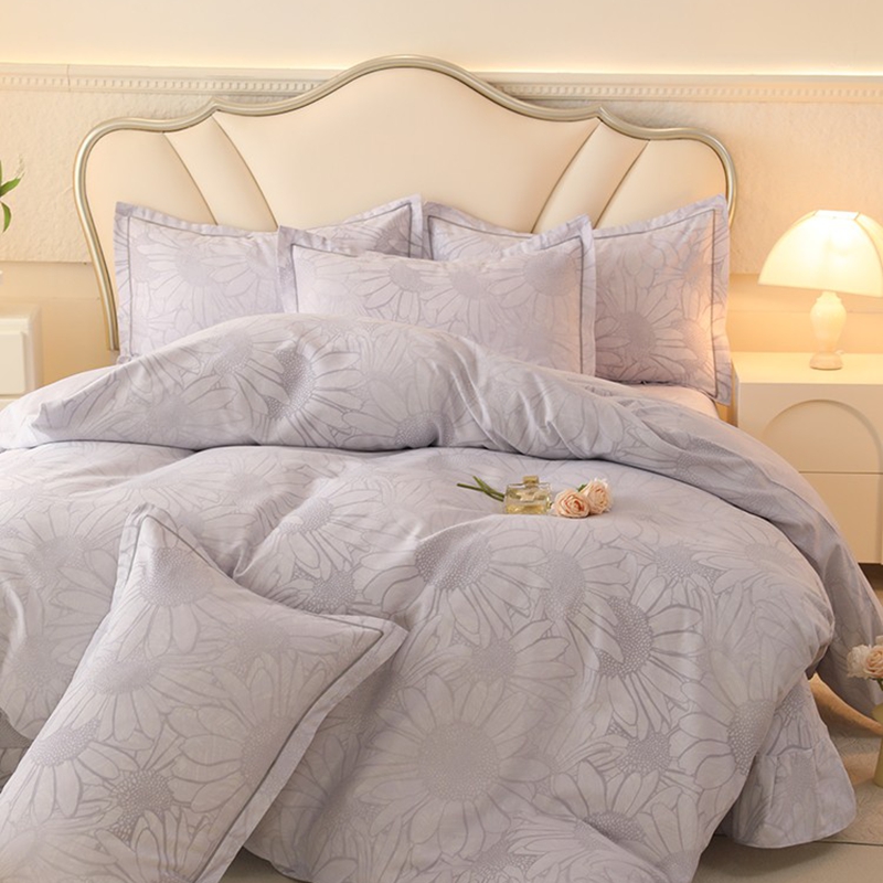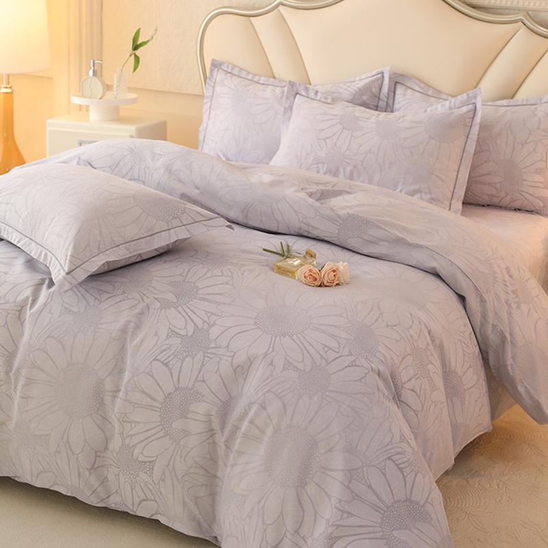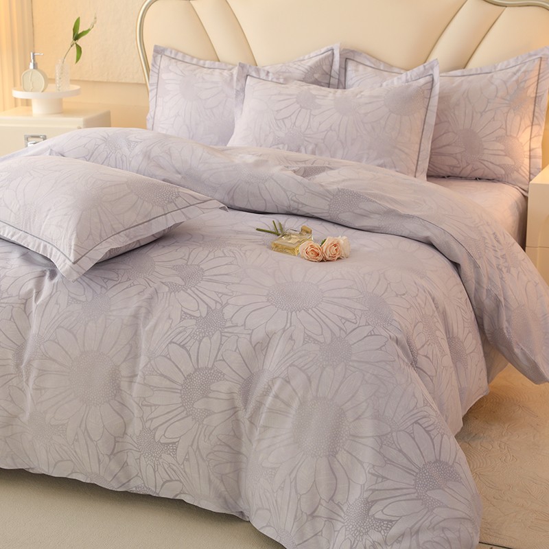 木易家居2026新款全棉磨毛印花四件套 向阳花开-灰