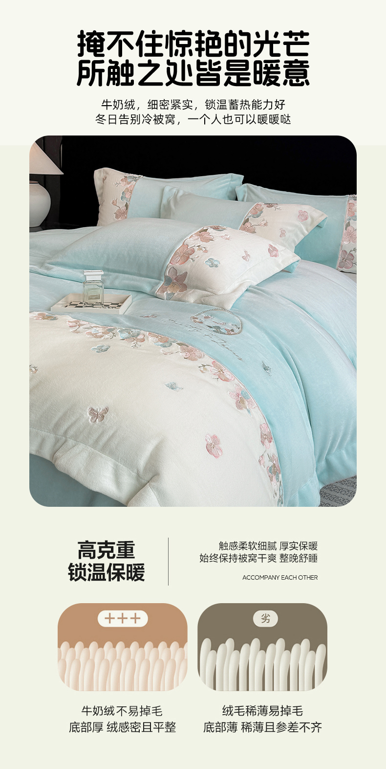 当前位置: 91家纺网 > 商品网购 > 床品套件 > 四件套 > 牛奶绒四件套 > (总)家居1号家纺 2025新款230克A类牛奶绒双拼刺绣四件套-兰黛(控价券后不得低于238元 会员优惠10元)