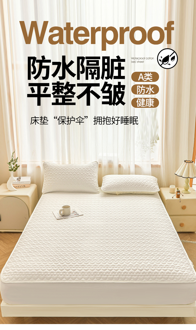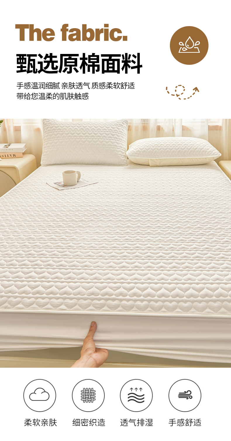• 91家纺网 家纺一手货源 找家纺 邵依家纺 2025新款A类大豆夹棉爱心款原棉防水床笠 爱心本白