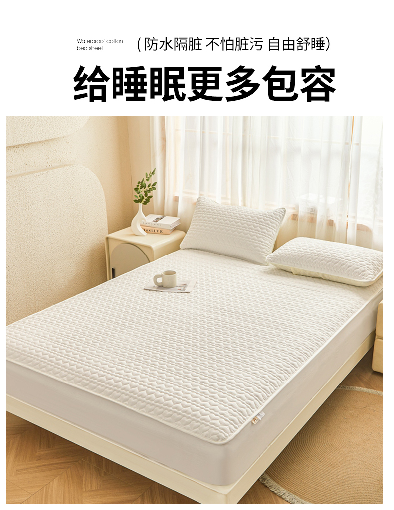 邵依家纺 2025新款A类大豆夹棉爱心款原棉防水床笠 爱心本白