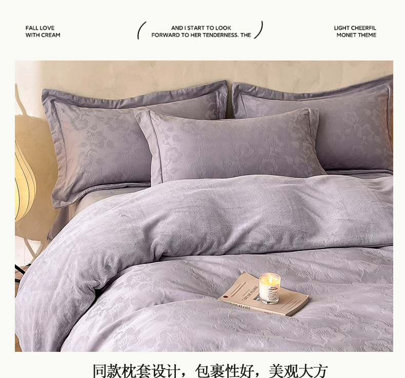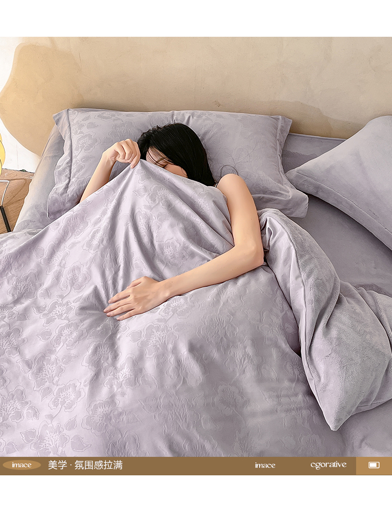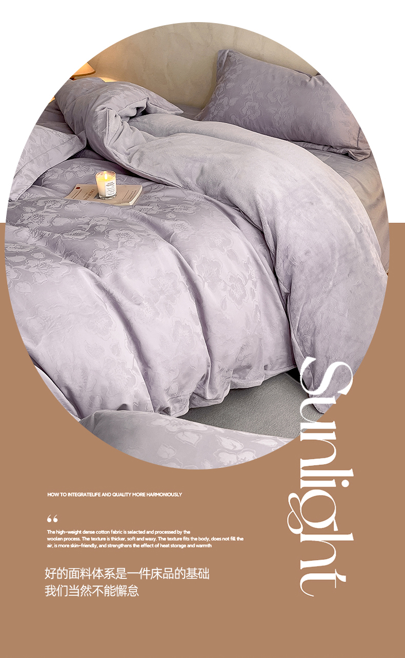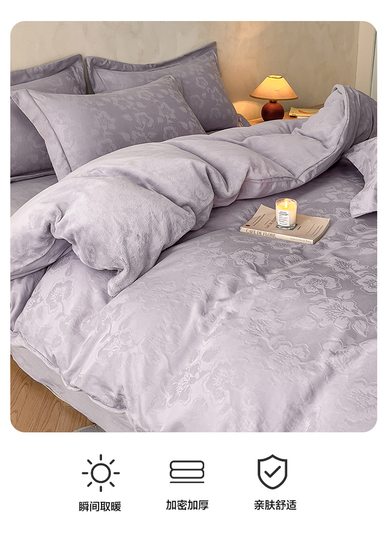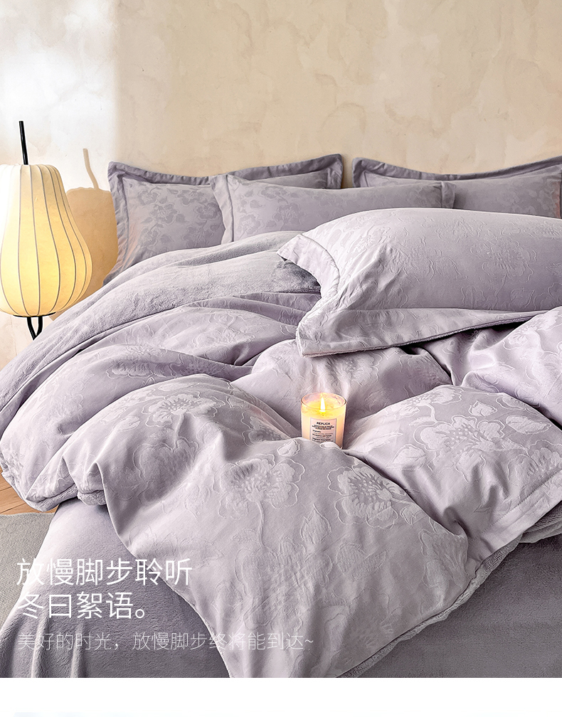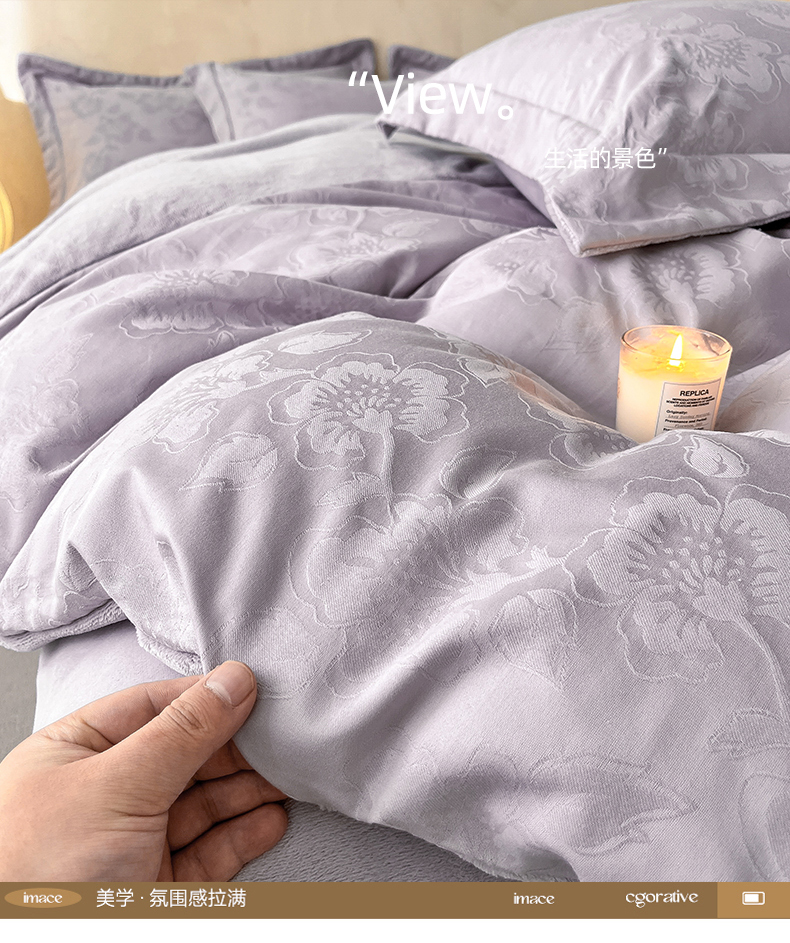 当前位置: 91家纺网 > 商品网购 > 床品套件 > 四件套 > 其它四件套 > 禾时 2025新款全棉加厚立体提花加绒四件套 兰亭-淡雅紫(加绒款)