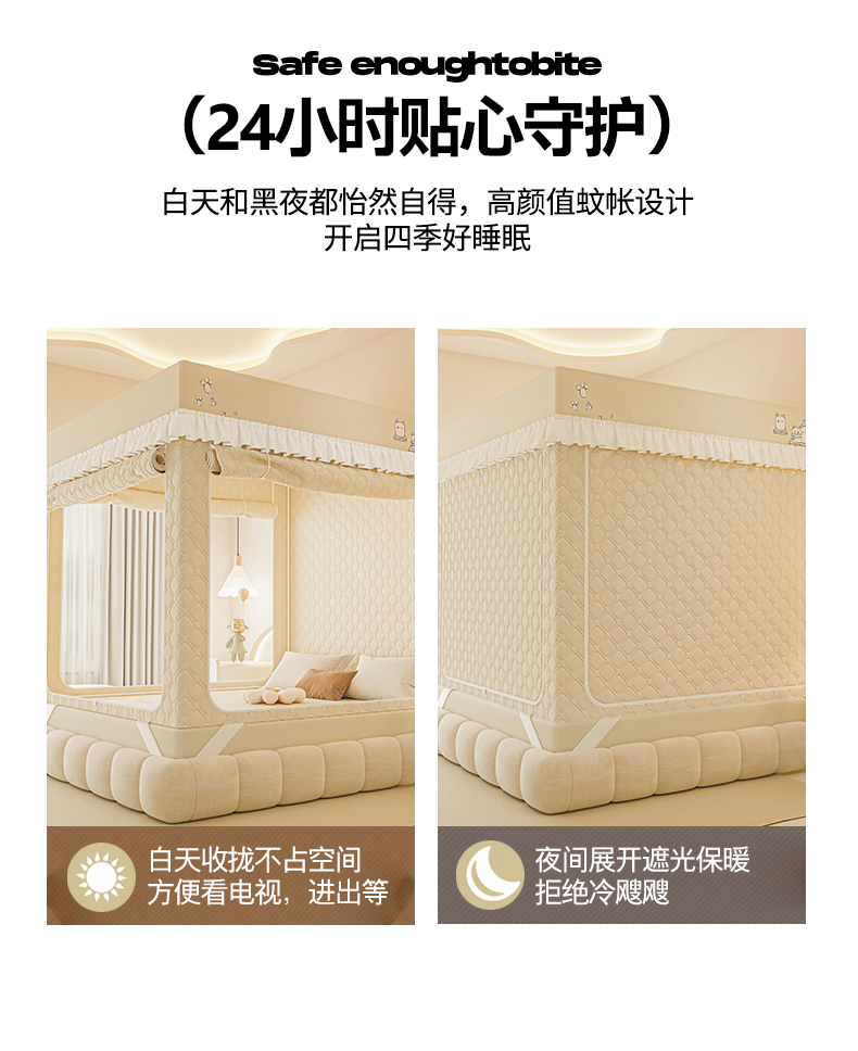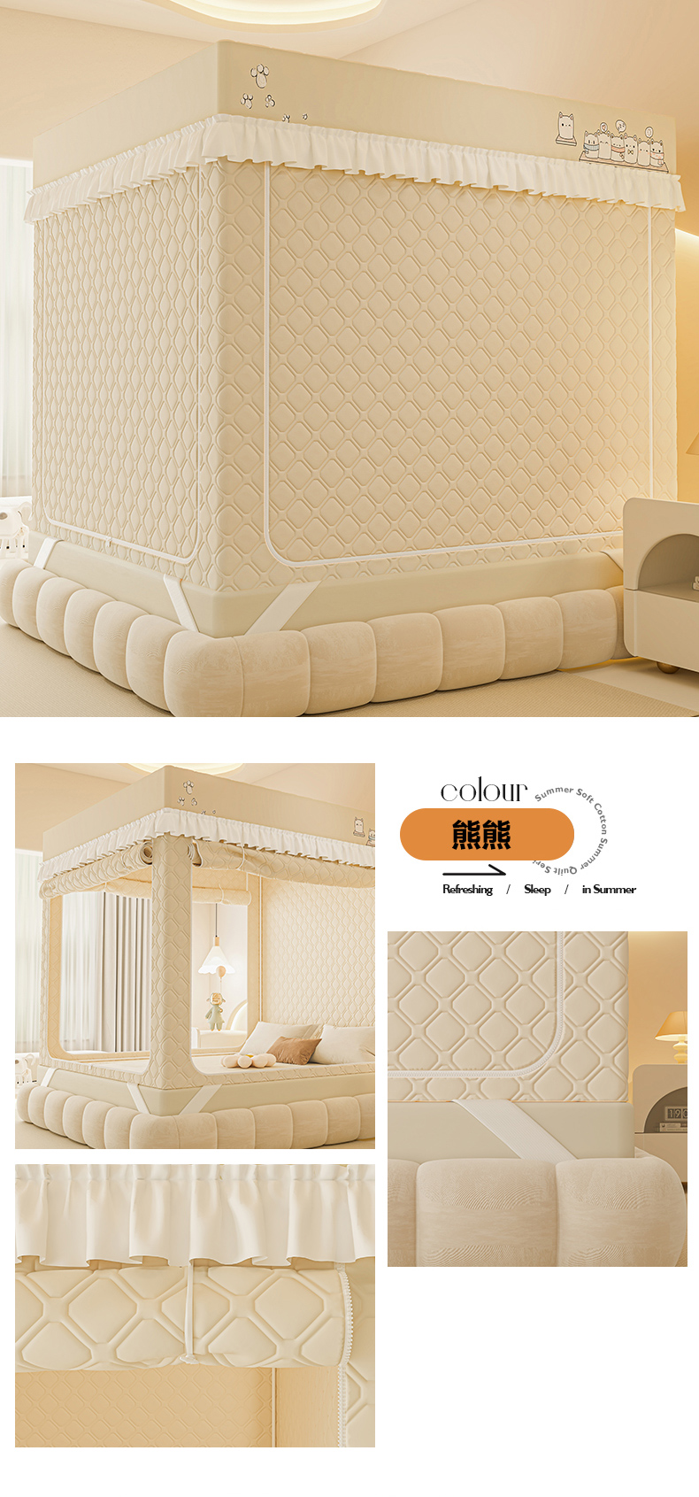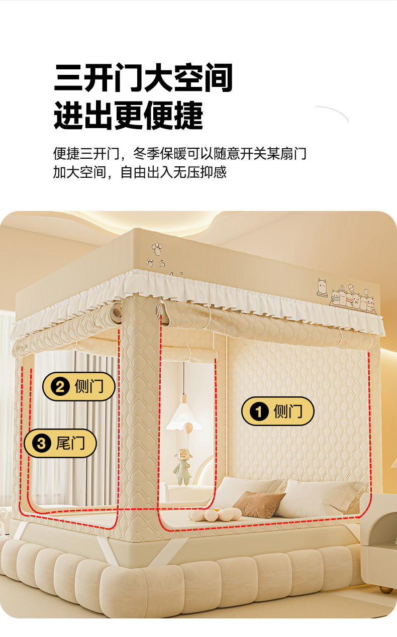 商品名称:梦之宝蚊帐 2025新款卡通花边夹棉防风一体式系列蚊帐 熊熊