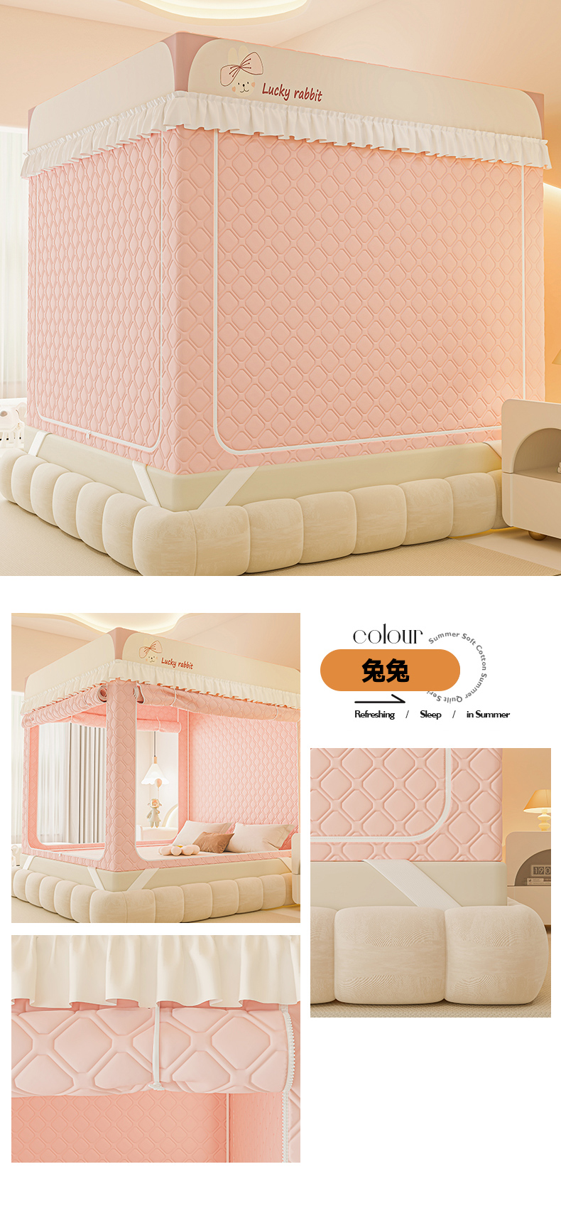 (总)2025新款夹棉保暖蚊帐一体式碎花清新,大樱桃-粉,大樱桃-蓝,大樱桃-米,花朵猫咪,碎花-蓝,碎花-米,兔兔和蝴蝶结,仙草兔