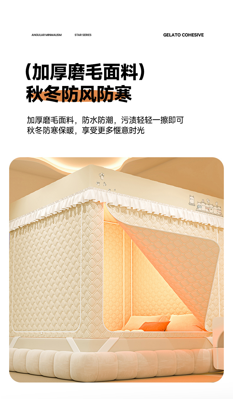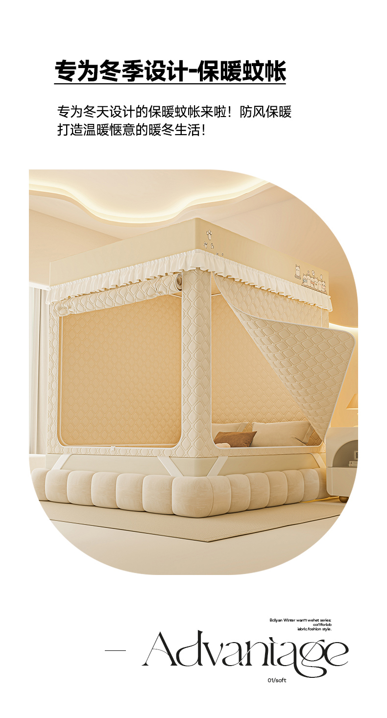 梦之宝蚊帐 2025新款卡通花边夹棉防风一体式系列蚊帐 熊熊