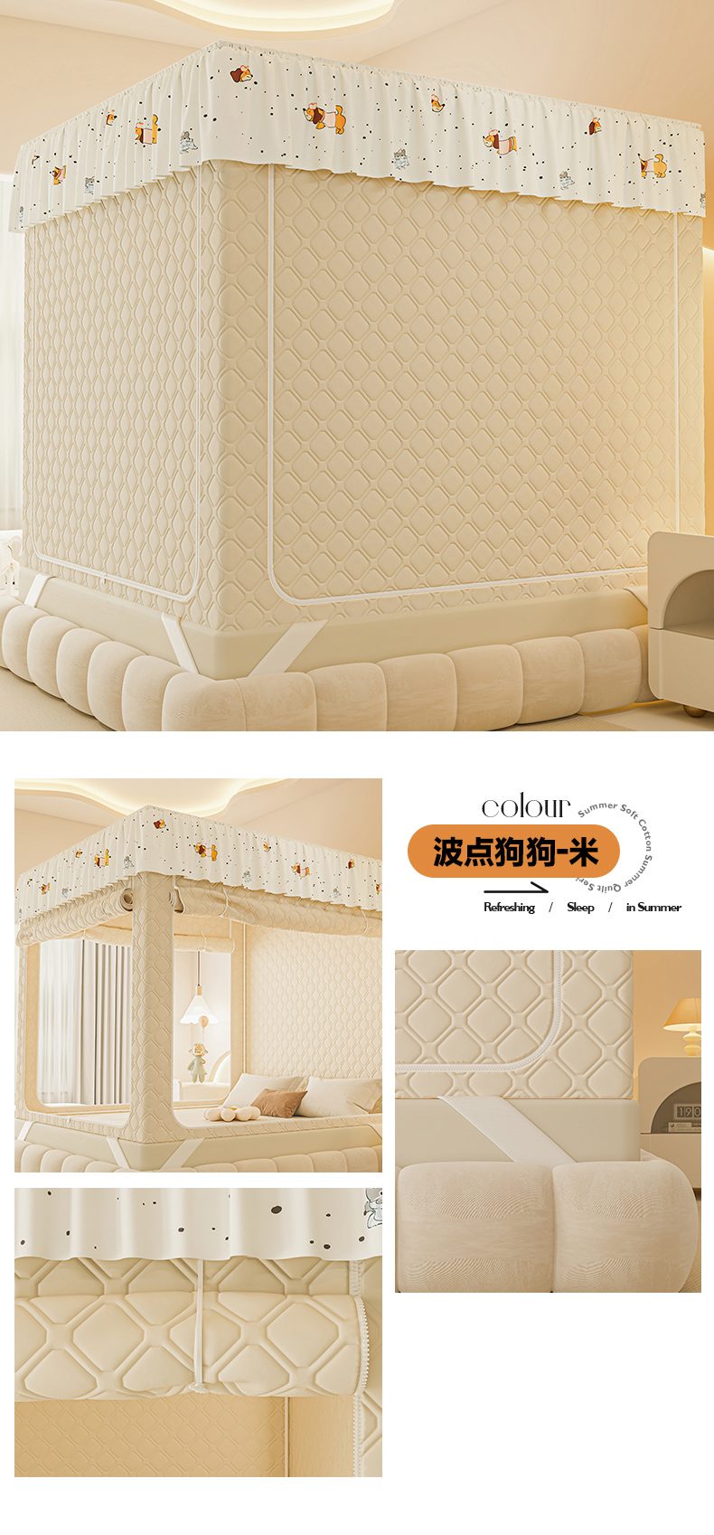(总)梦之宝蚊帐 2025新款卡通花边夹棉防风一体式系列蚊帐,波点狗狗-米,波点狗狗-蓝,狗狗,兔兔,熊熊