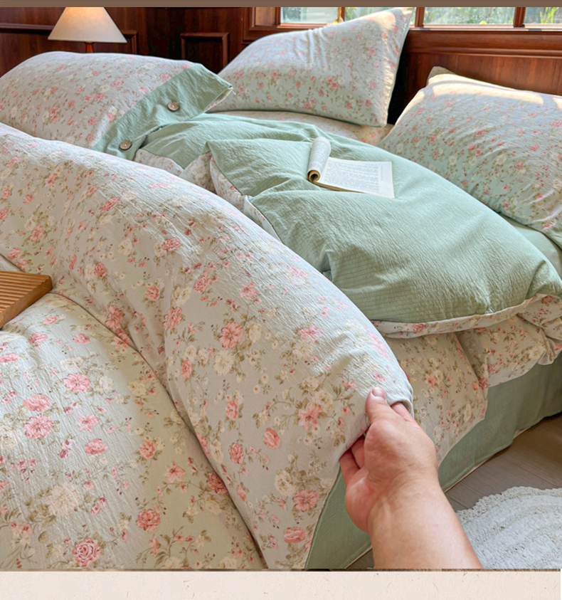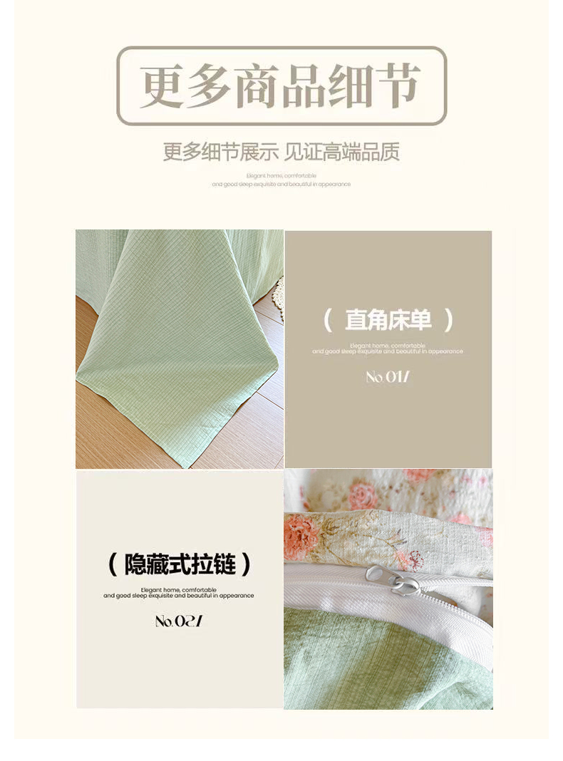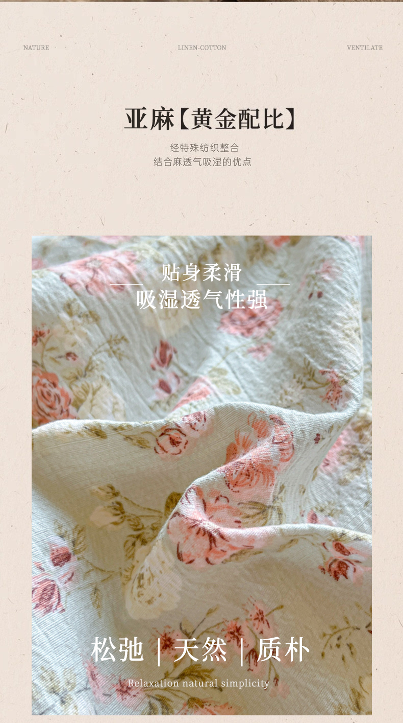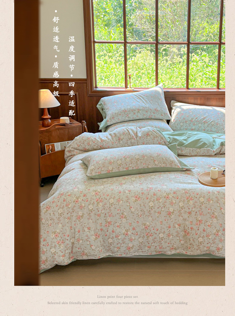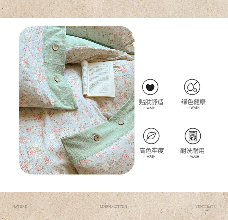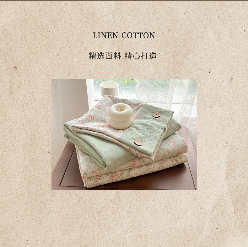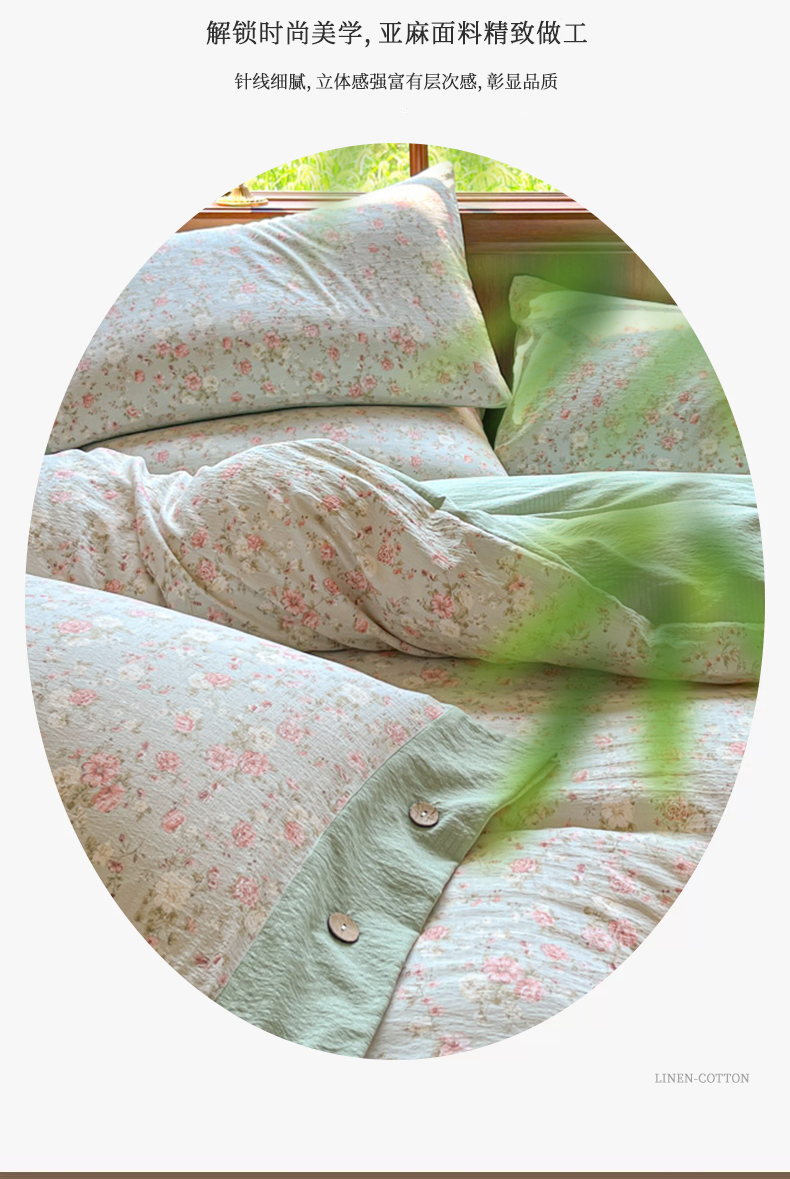 当前位置: 91家纺网 > 商品网购 > 床品套件 > 四件套 > 其它四件套 > 爱彼家纺 2025四季款亲水洗麻亚麻皱皱纱四件套-纽扣款-提供买家秀 花似锦绿