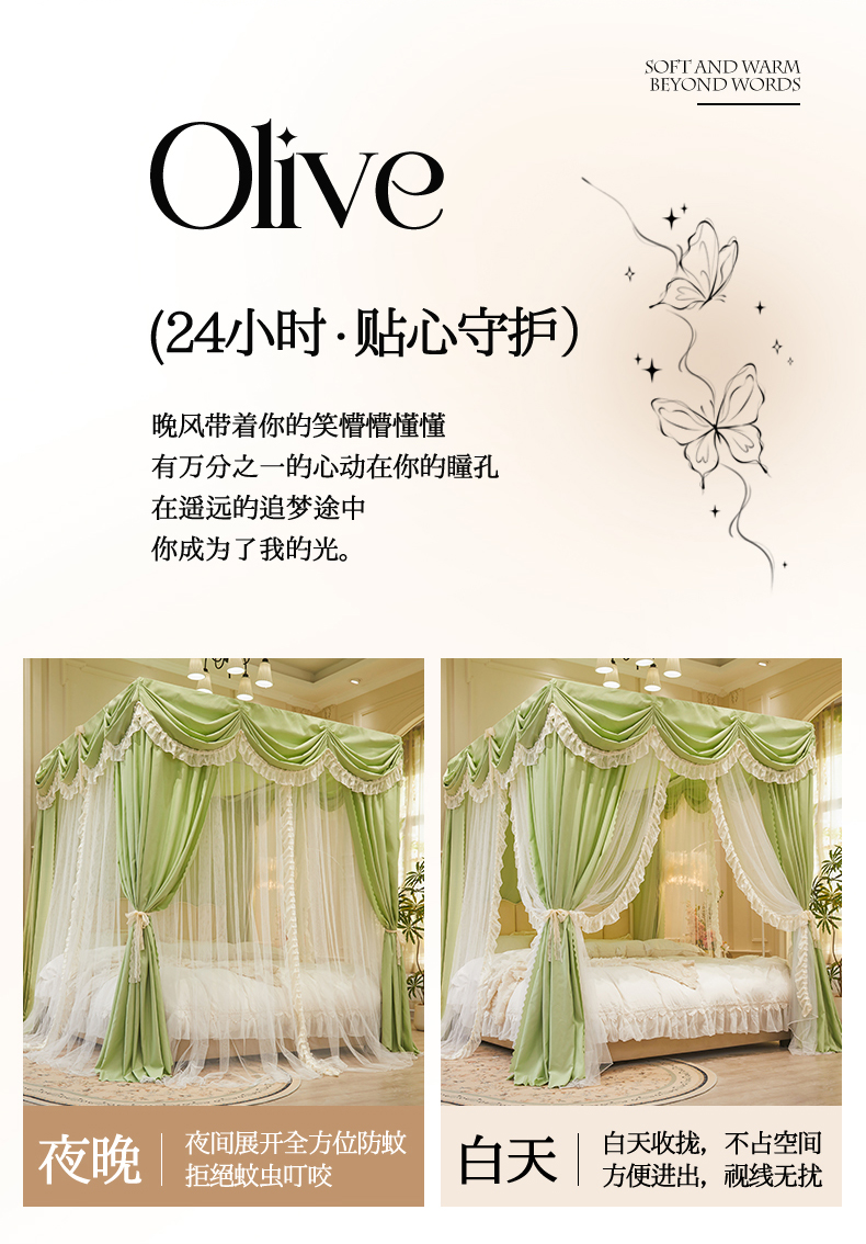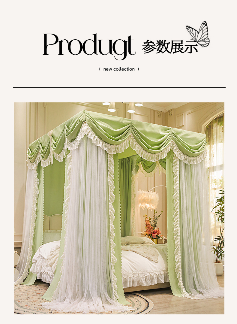 (总)2025新款公主圆顶法式花边吊顶蚊帐--爱丽丝,爱丽丝绿色,爱丽丝白,爱丽丝蓝灰,爱丽丝杏色,爱丽丝玉色