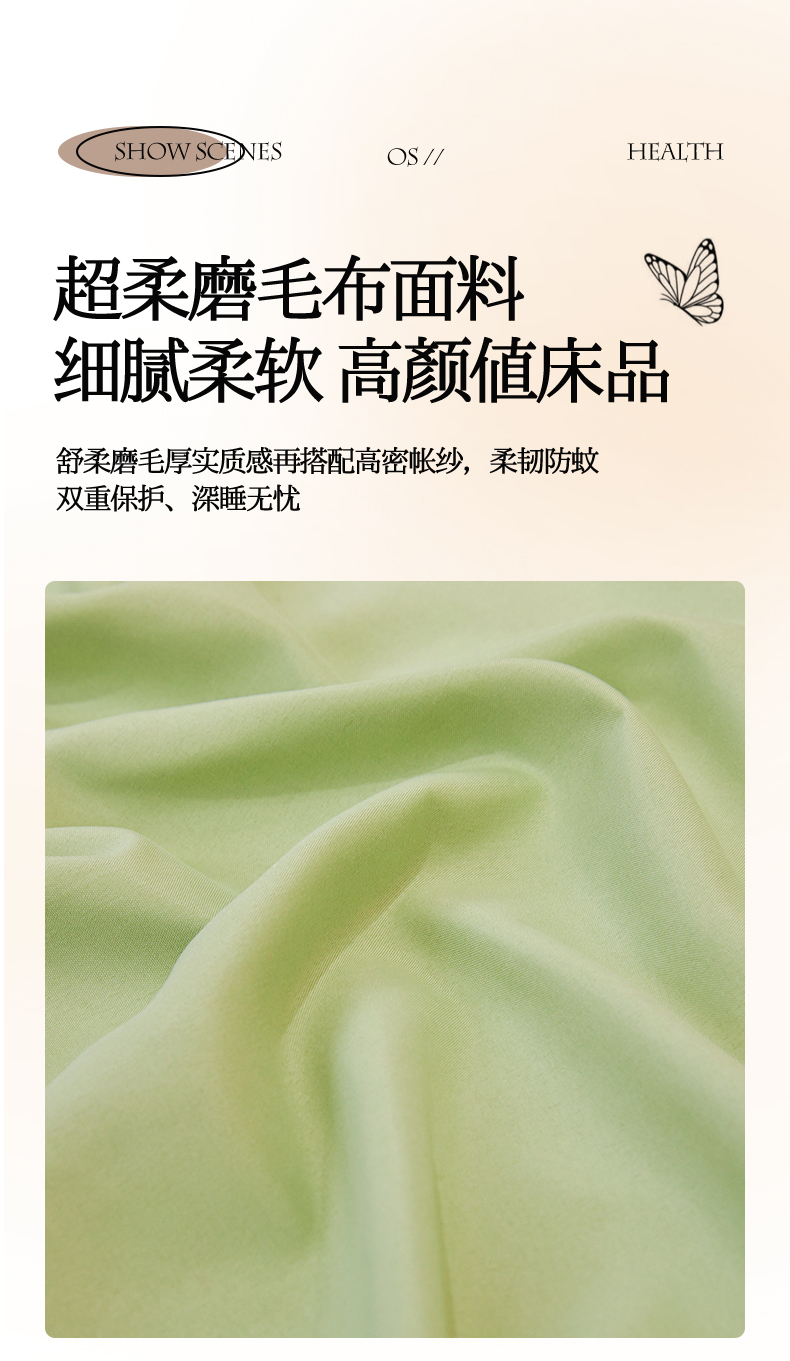 (总)艾晶美家纺有限公 2025新款防摔坐床外穿杆全底蚊帐,艾草绿,豆沙粉,高级灰,奶咖黄