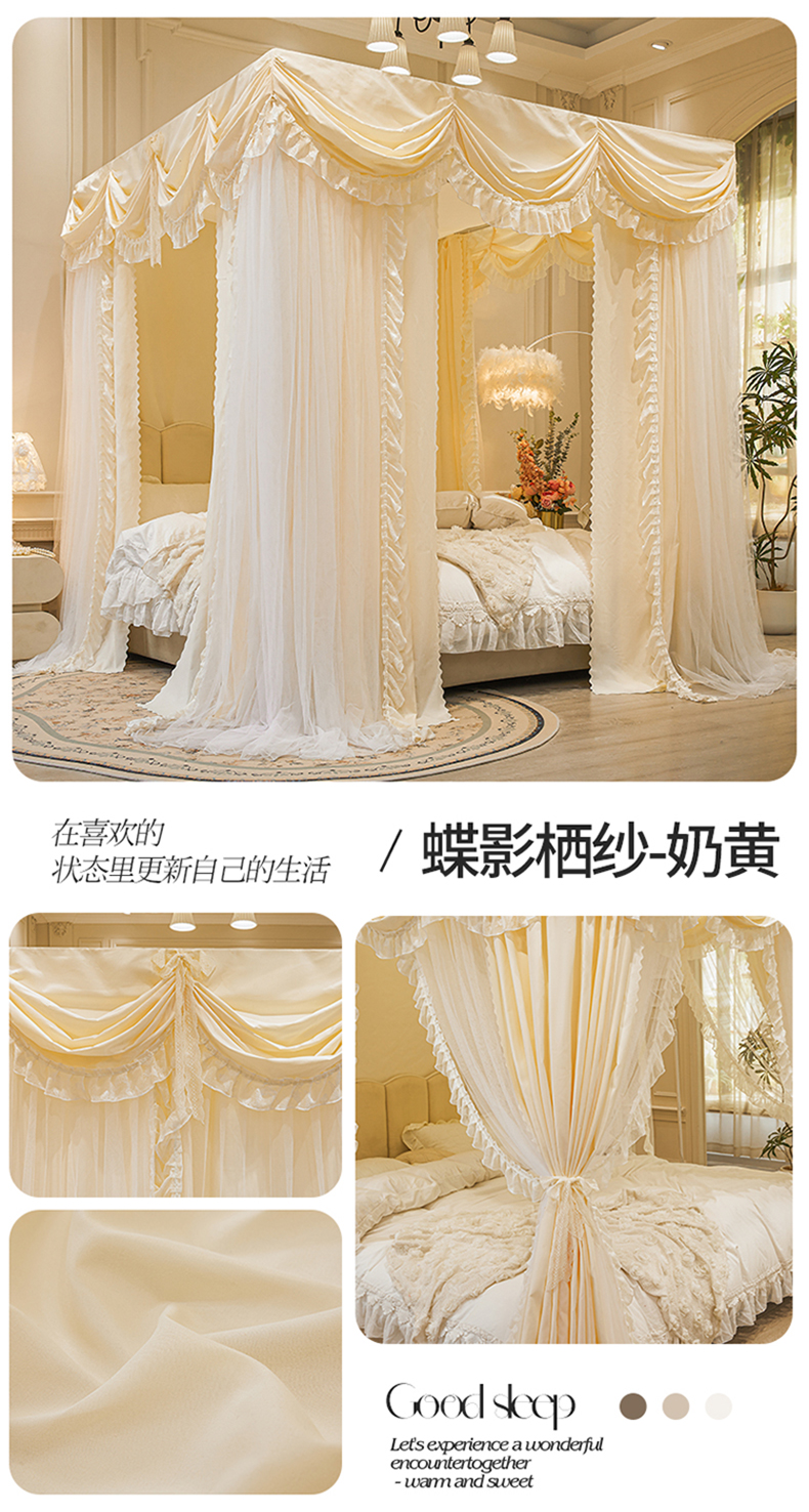商品名称:(总)艾晶美家纺有限公司 2026新款法式公主风 双杆双层落地床幔遮光蚊帐