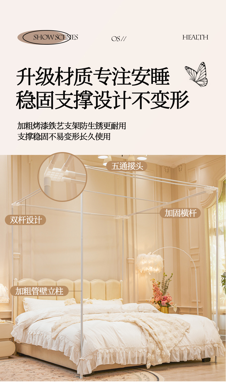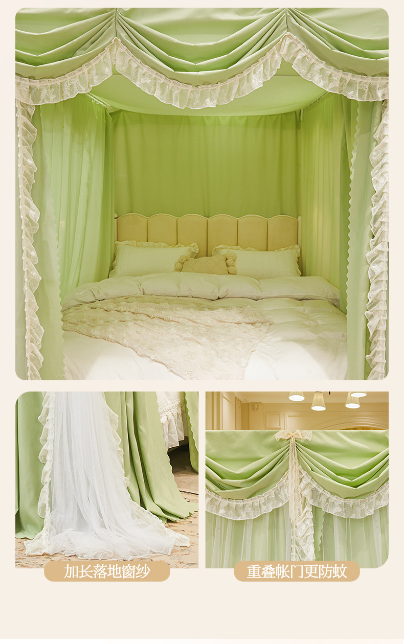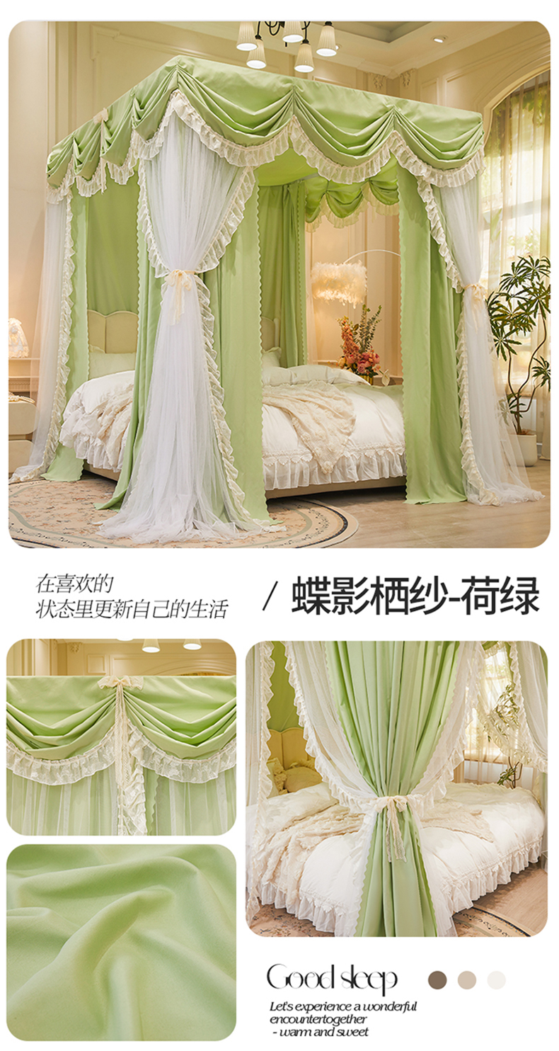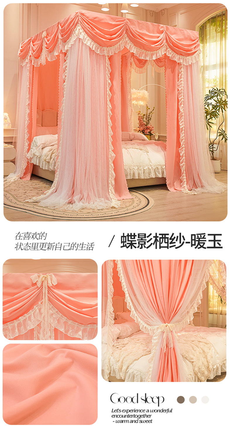 (总)艾晶美家纺有限公司 2026新款法式公主风 双杆双层落地床幔遮光蚊帐