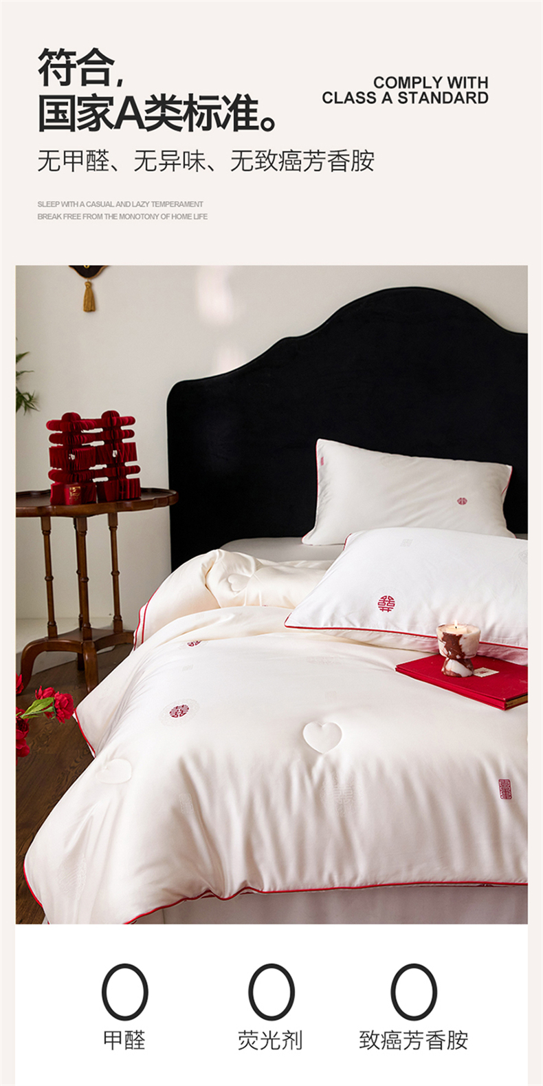 (总)头等舱 2025新款天棉缎剪花婚庆大提花55莱赛尔大豆7A抗菌秋冬被(空境图),吾家有喜-本白,吾家有喜-嫩粉,配包装