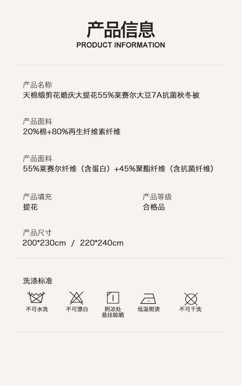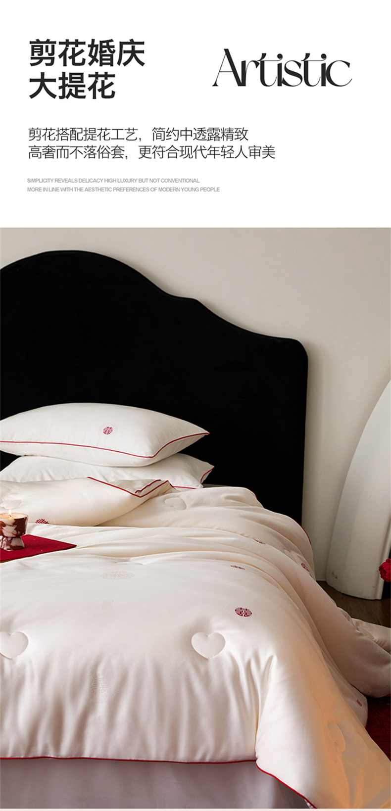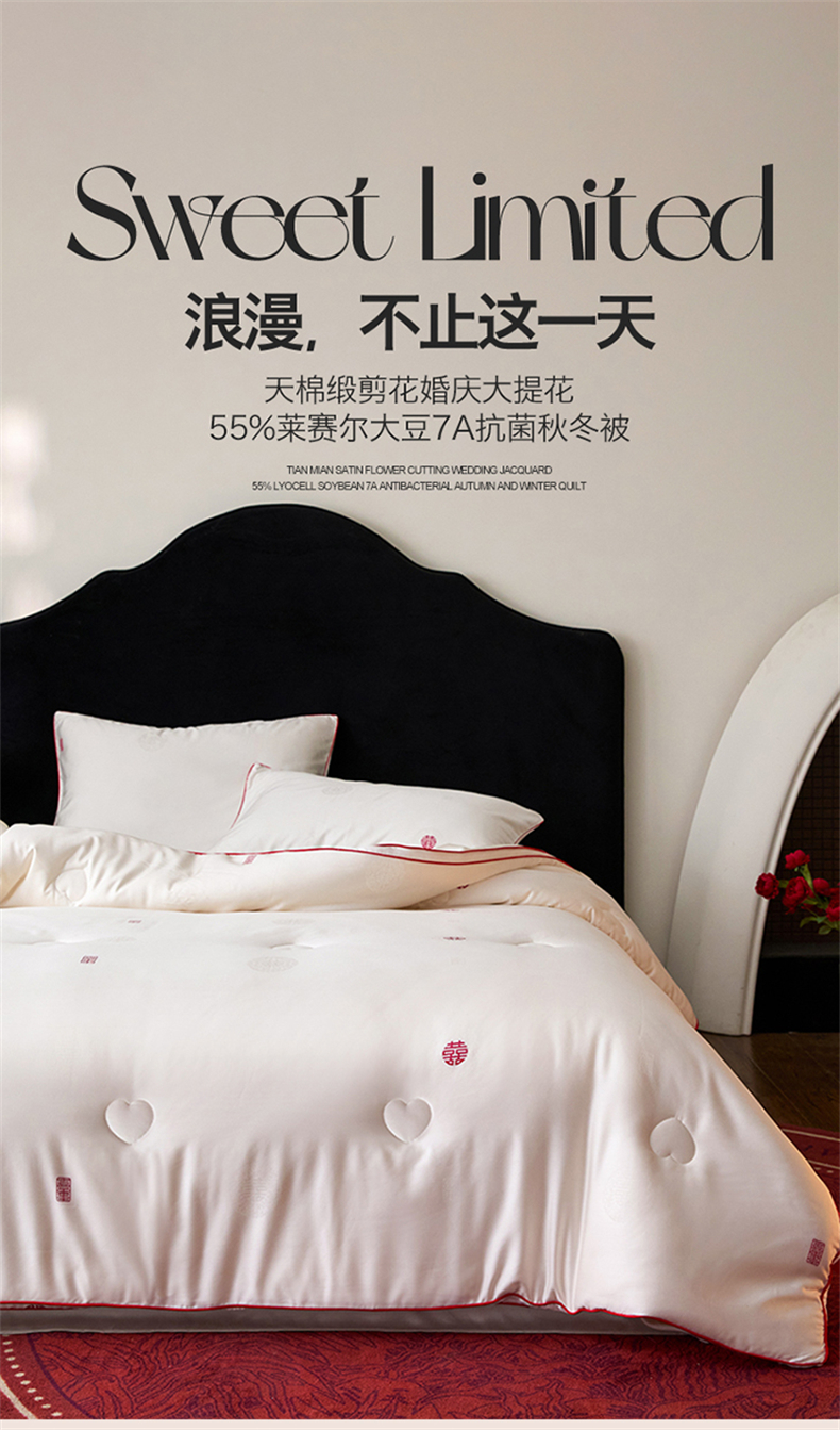 (总)头等舱 2025新款天棉缎剪花婚庆大提花55莱赛尔大豆7A抗菌秋冬被(模特图),吾家有喜-本白,吾家有喜-嫩粉,配包装