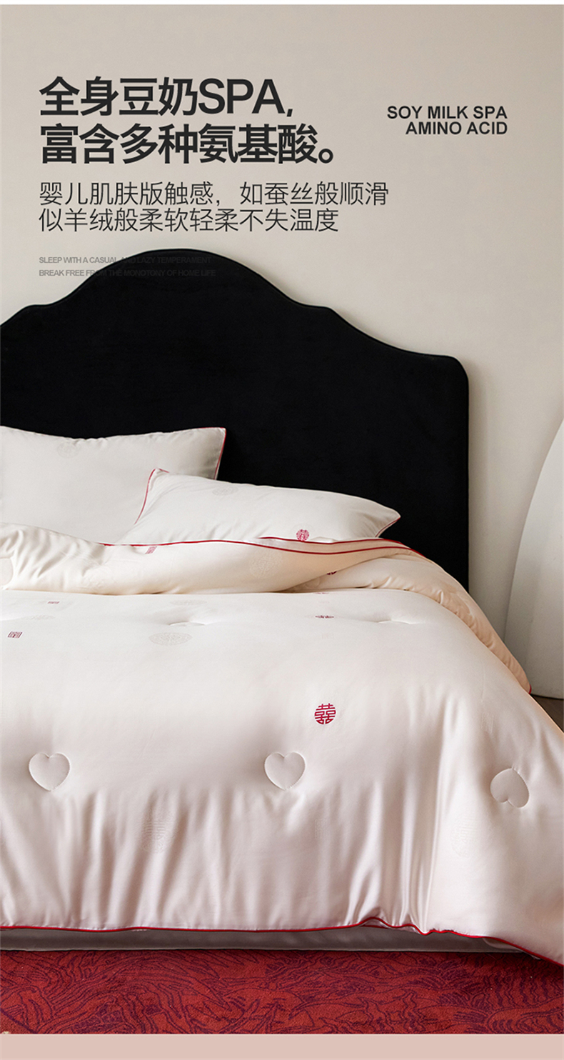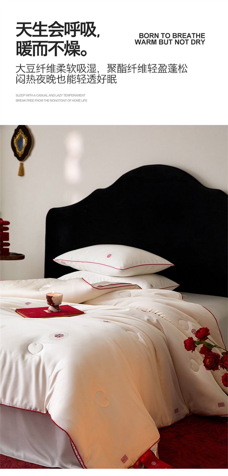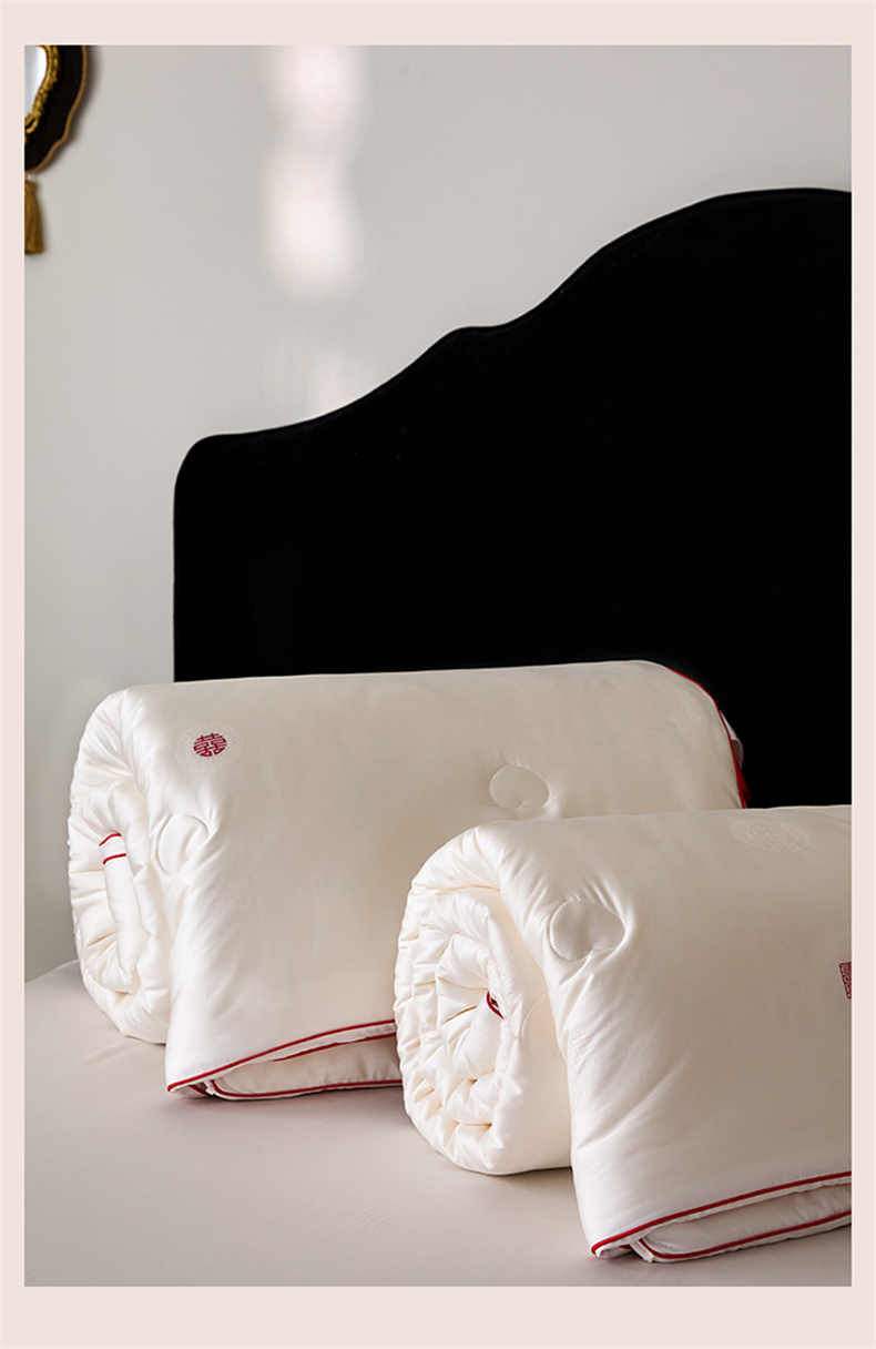 (总)头等舱 2025新款天棉缎剪花婚庆大提花55莱赛尔大豆7A抗菌秋冬被(模特图),吾家有喜-本白,吾家有喜-嫩粉,配包装