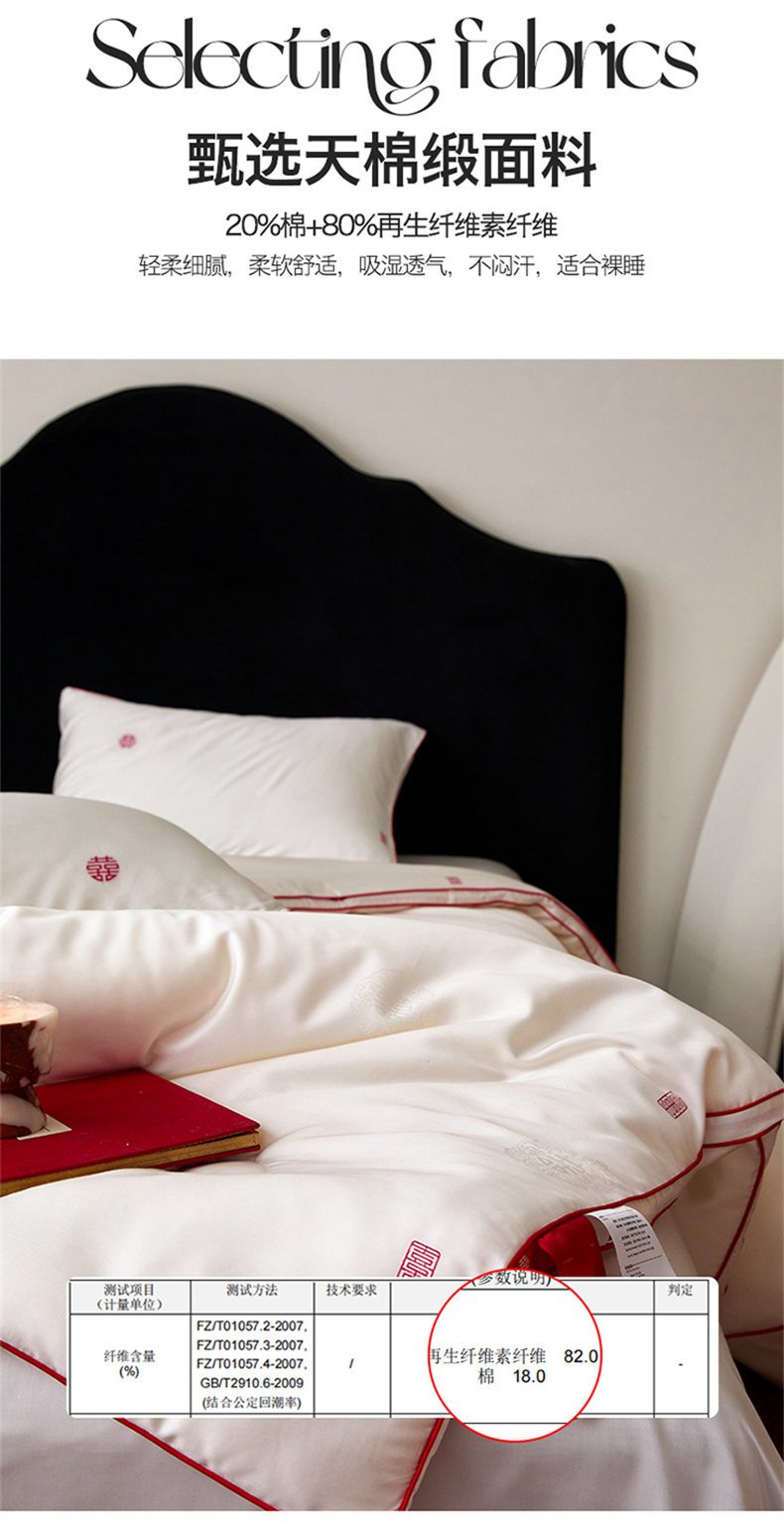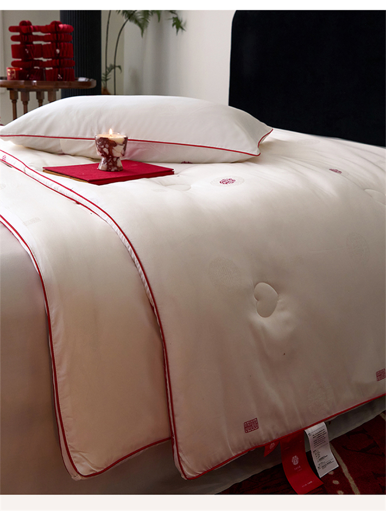 商品名称:头等舱 2025新款天棉缎剪花婚庆大提花55莱赛尔大豆7A抗菌秋冬被(空境图) 吾家有喜-本白