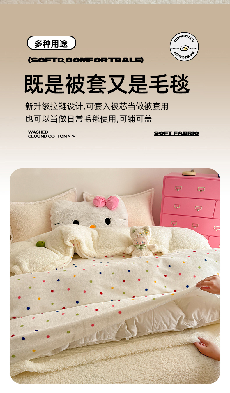 商品名称:温眠家纺 2025新款ins羊羔绒牛奶绒可被套休闲毯单被套-被套图 羊-多彩