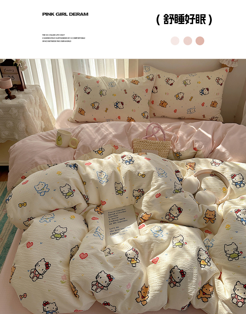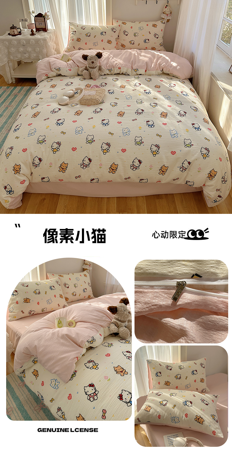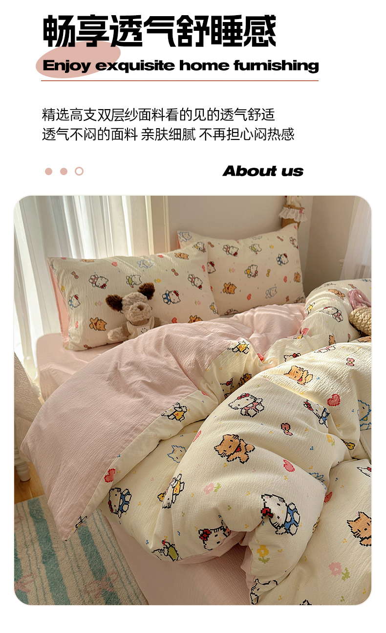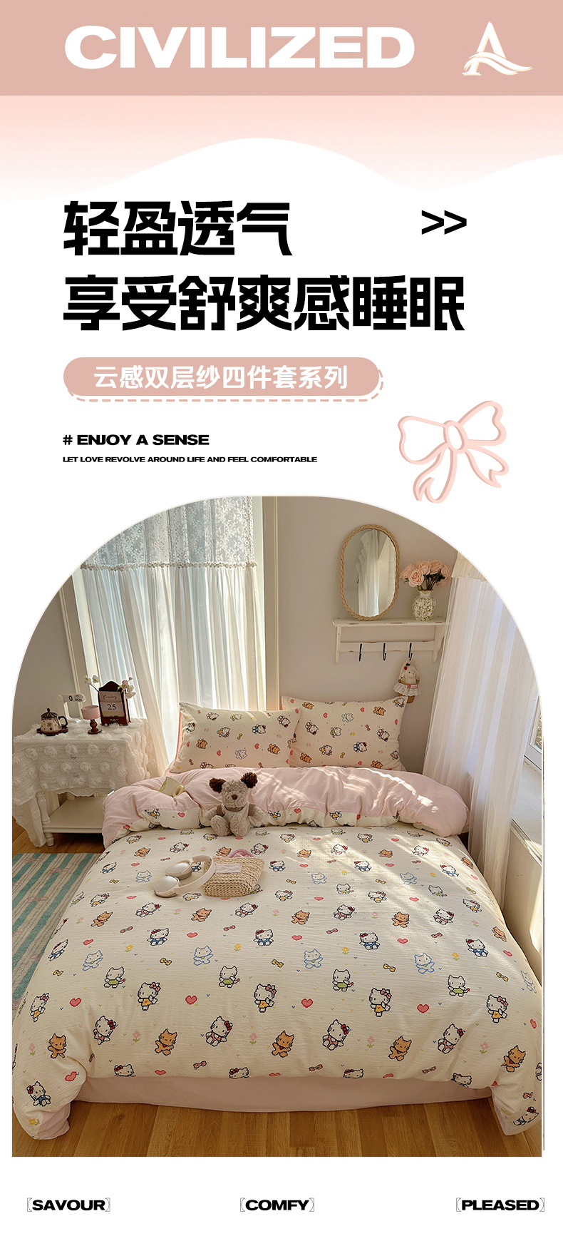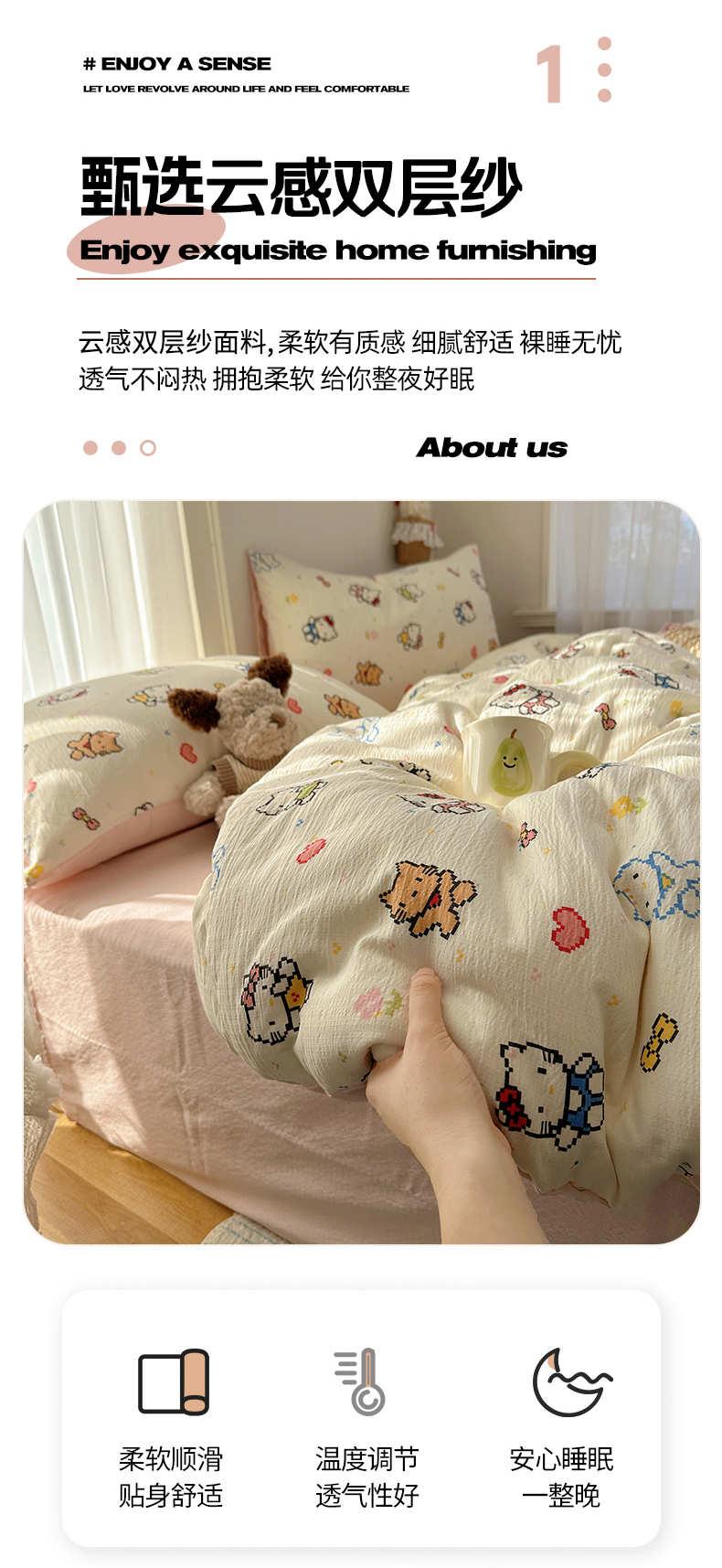 当前位置: 91家纺网 > 商品网购 > 床品套件 > 四件套 > 双层纱四件套 > 温眠家纺 2026新款敲可爱的奶呼呼云感双层纱简约四件套系列-超级治愈~ 大脸二胡猫-咖