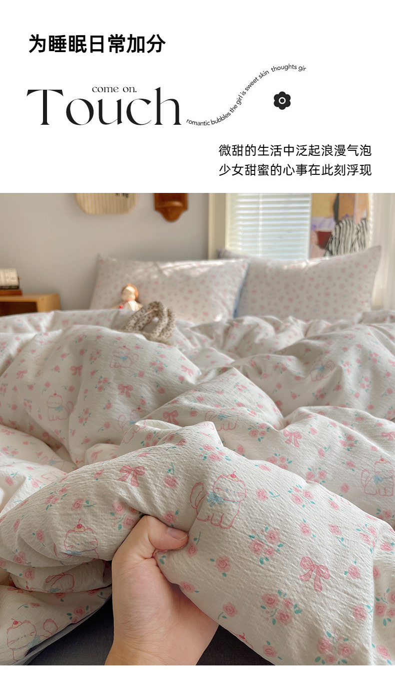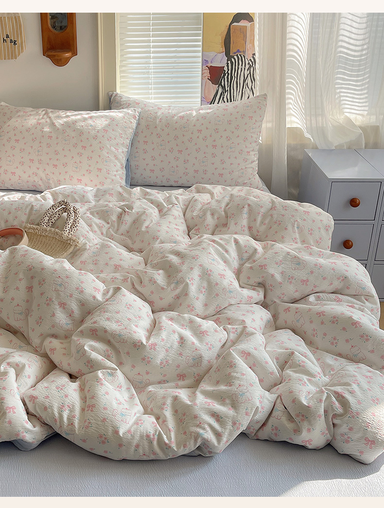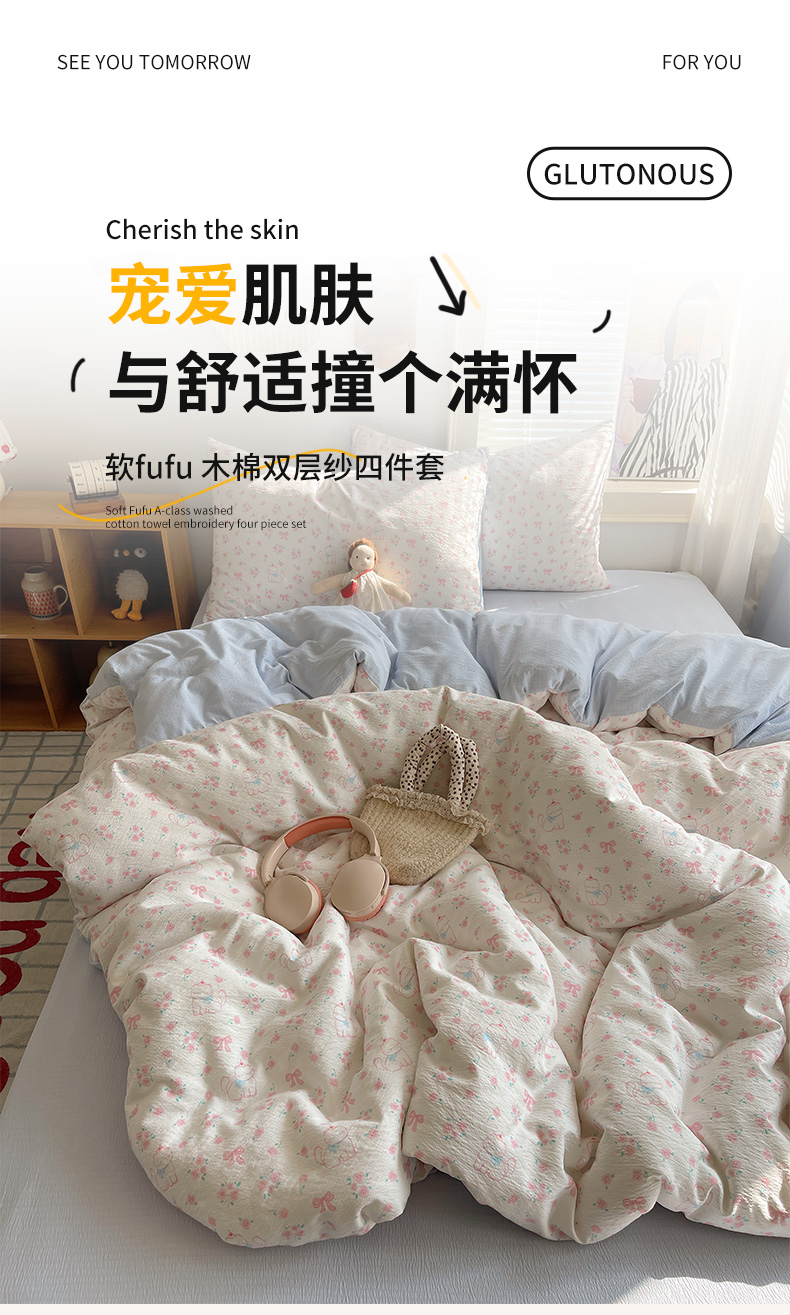 当前位置: 91家纺网 > 商品网购 > 床品套件 > 四件套 > 双层纱四件套 > 繁花家居 2026新款木棉双层纱四件套 喵喵花结