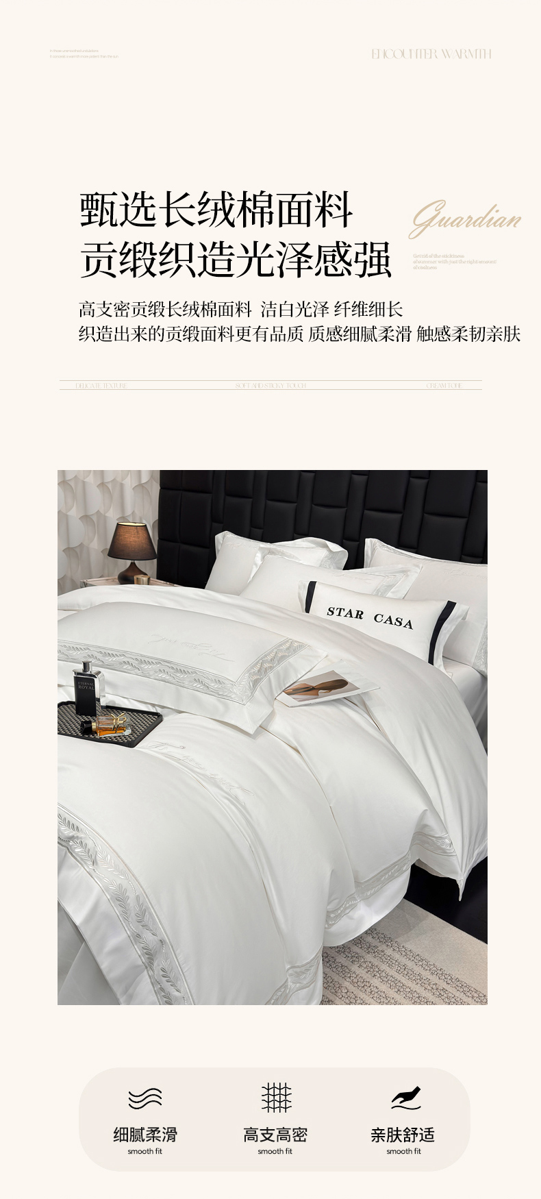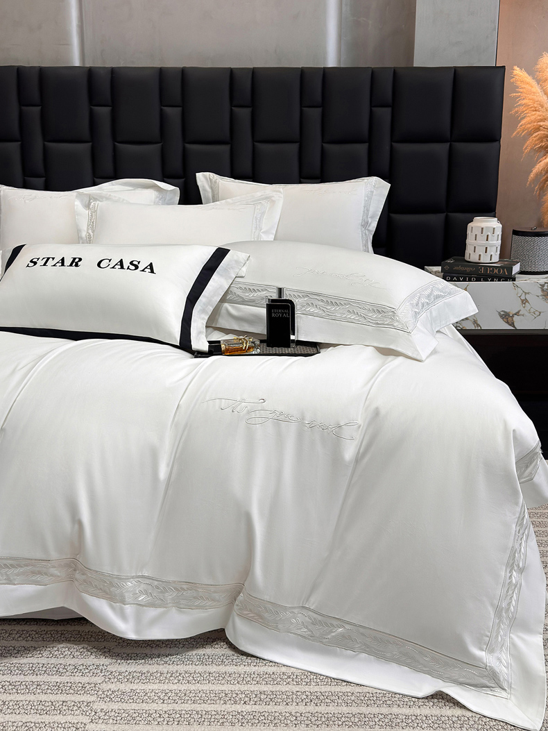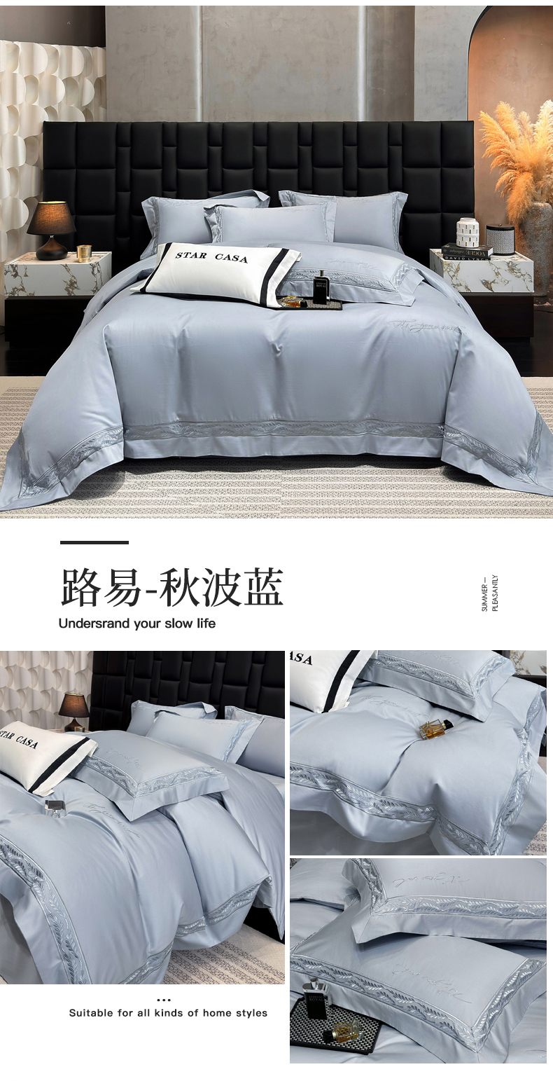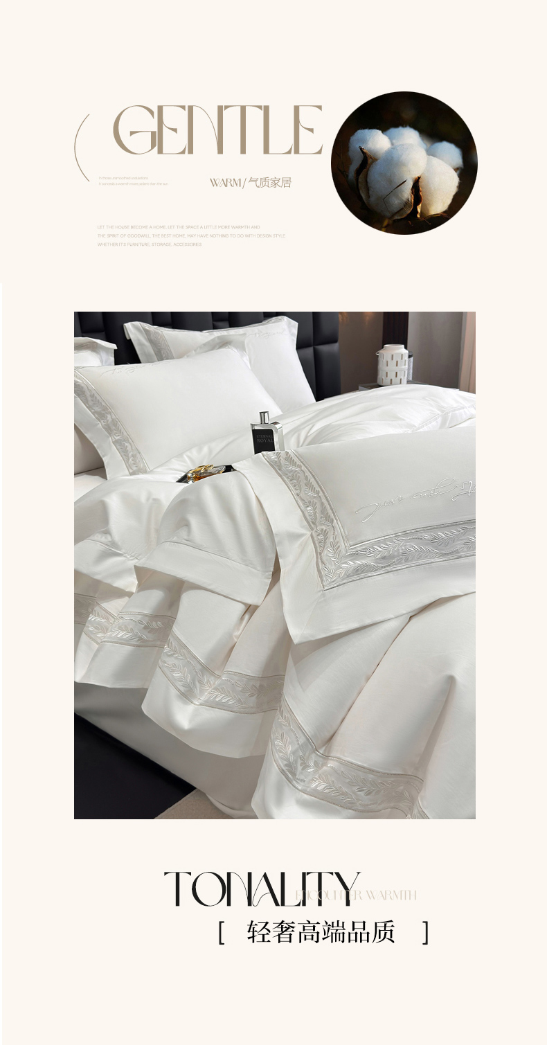 (总)星蕴家纺 2026新款双股长绒棉全棉纯棉刺绣四件套-柏林系列,柏林 贵族白,柏林 星空灰,柏林 云山蓝,柏林 香槟金,柏林 可可粉
