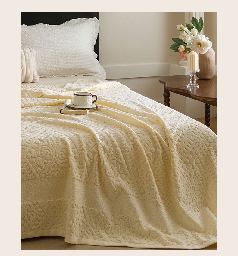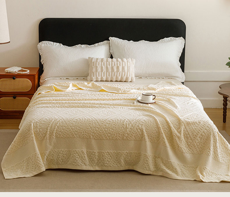 悦然毛巾被 2026新款全棉老式毛巾被夏被空调毯 菱纹米白