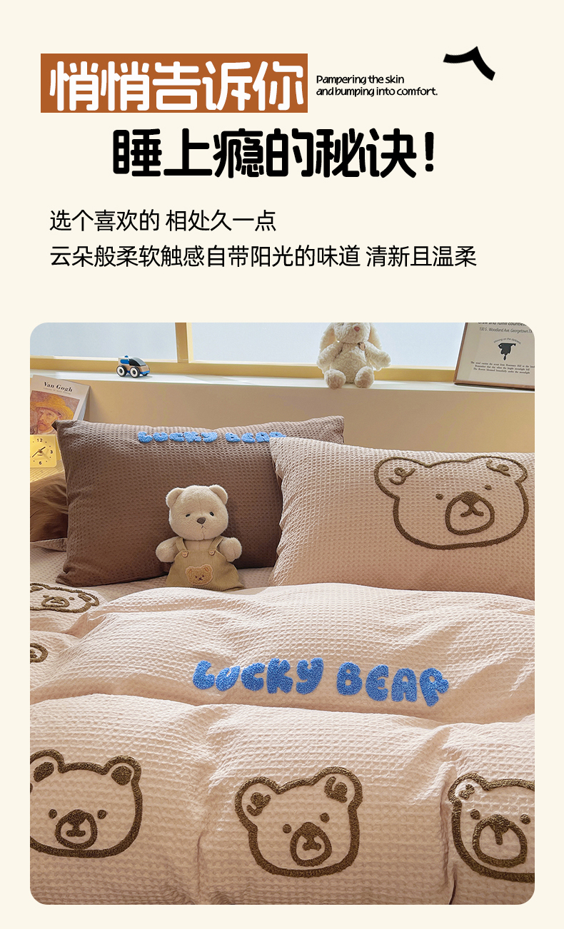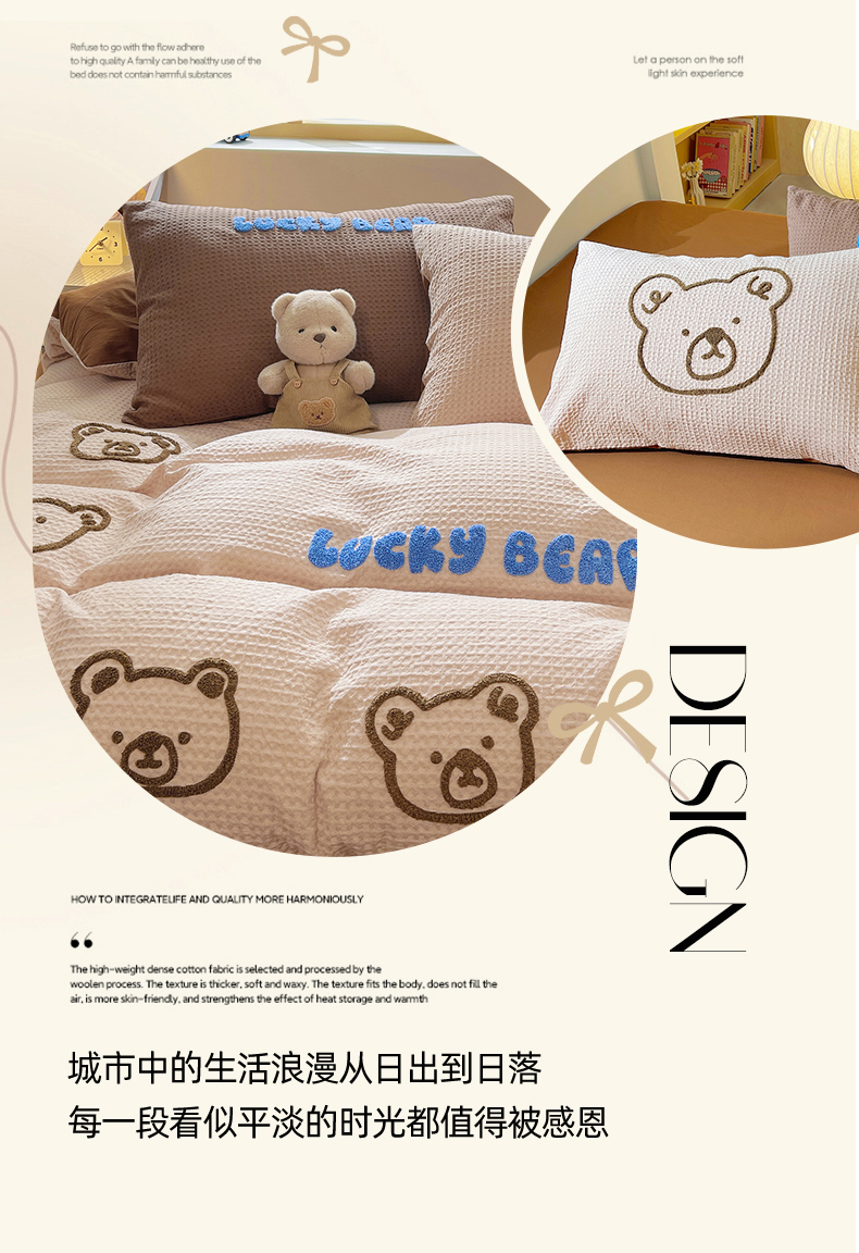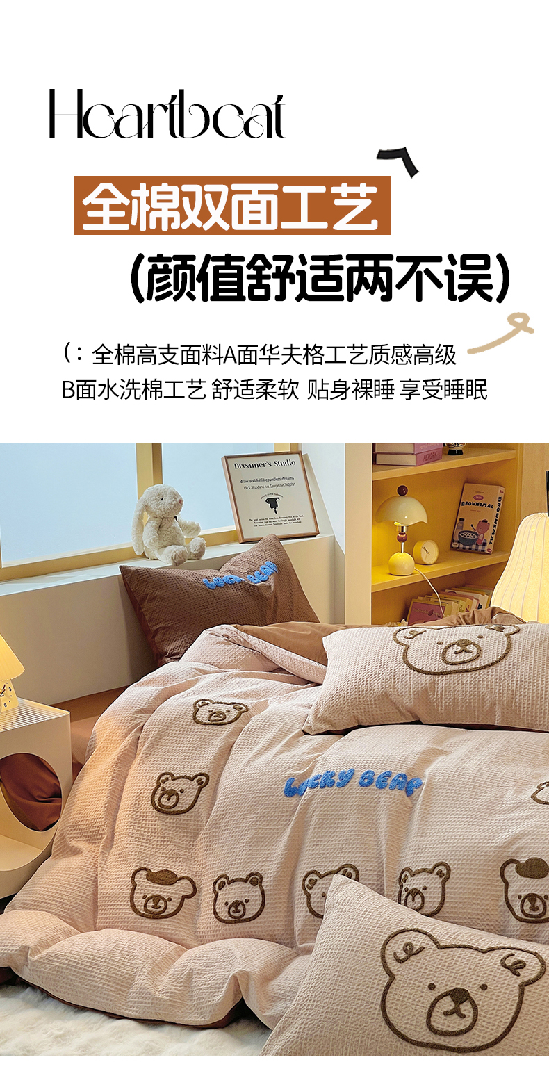 当前位置: 91家纺网 > 商品网购 > 床品套件 > 四件套 > 全棉普通四件套 > 炫拼家纺 2026新款A类全棉纯棉华夫格毛巾绣B版40支纯棉水洗棉四件套-哆啦系列 哆啦一小熊