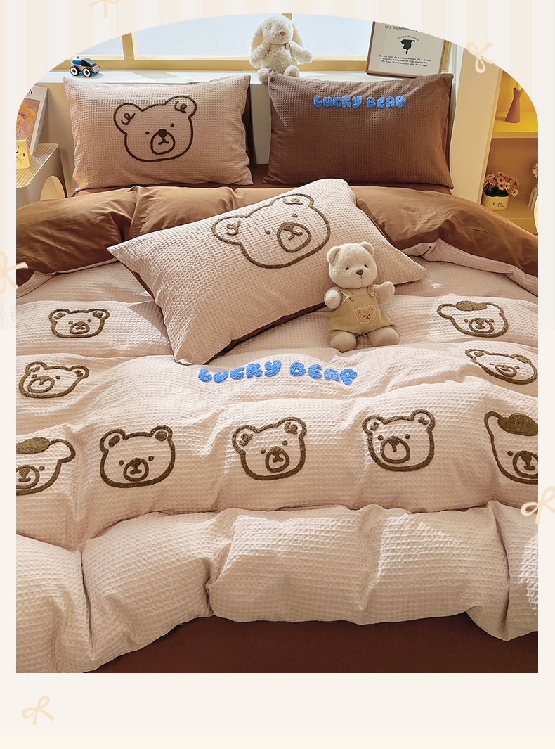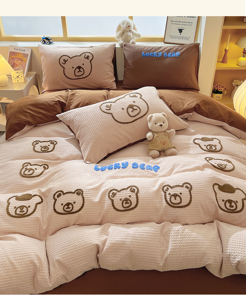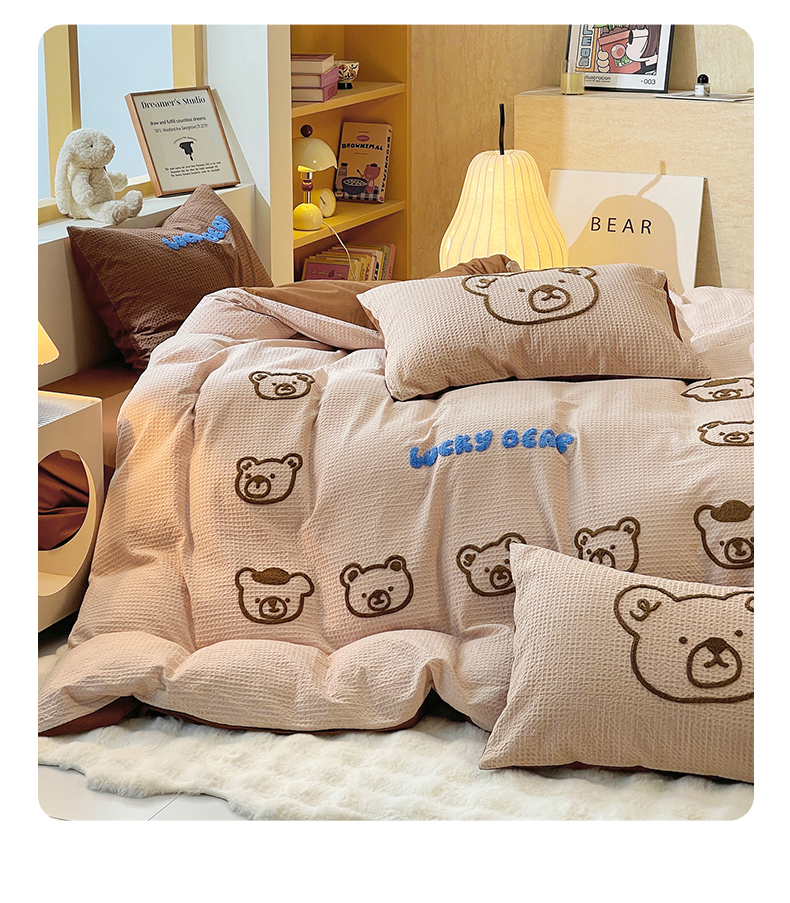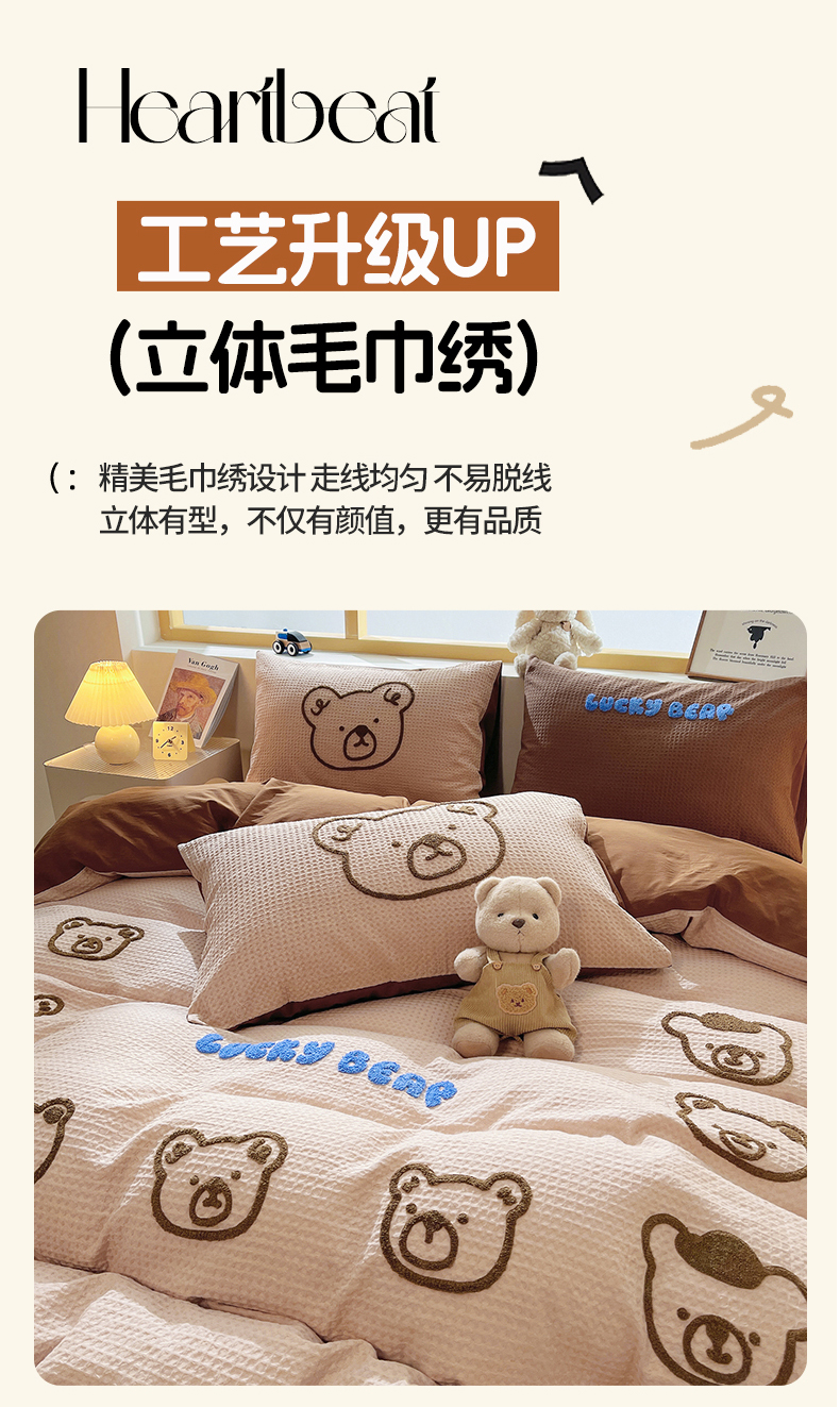 当前位置: 91家纺网 > 商品网购 > 床品套件 > 四件套 > 全棉普通四件套 > 炫拼家纺 2026新款A类全棉纯棉华夫格毛巾绣B版40支纯棉水洗棉四件套-哆啦系列 哆啦一小熊