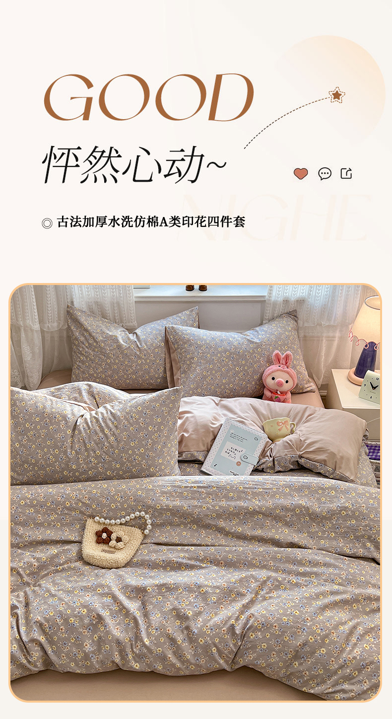 当前位置: 91家纺网 > 商品网购 > 床品套件 > 四件套 > 水洗棉四件套 > 优尚佳生活馆 【提供买家秀】2026新款加厚水洗仿棉A类印花四件套 烟影花踪