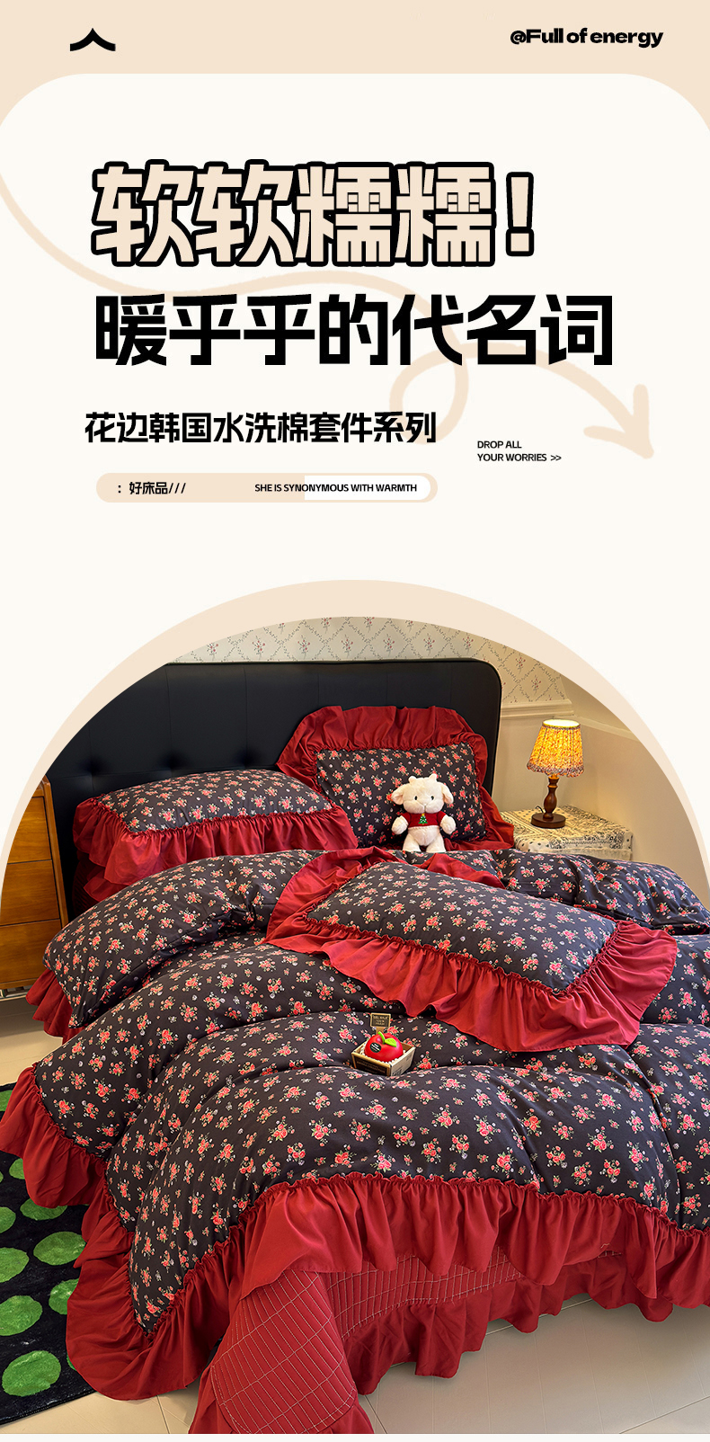 (总)赫梵茜 2026新款韩系古法韩国水洗棉仿棉云感棉大布袋法式浪漫大花边床盖四件套,春华秋实,芋泥波波,焦糖波点,海盐奶蓝,焦糖奶霜,豹纹猫咪,奶蓝波波,黑糖珍珠,春季花妖,蔷薇,泡芙小象,墨柳青棠,梦幻花园,玫粉碎花,春季梨花落,山茶花,沭雅咖,甜蜜喵喵粉,甜蜜喵喵蓝,小黄花,小南瓜,野牧-红,月亮人,知秋,织梦时空,粉薇,红韵花枝,花丛兔,焦糖玛奇朵,焦糖南瓜,米菲兔,墨蓝,墨芍,木马-紫,沭雅-紫,小奶猫,心动格-咖,泫雅蝴蝶结,野牧-咖,一点点红-春,一点点蓝,组合图仅供展示不可下单