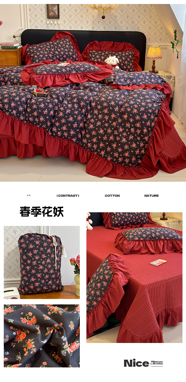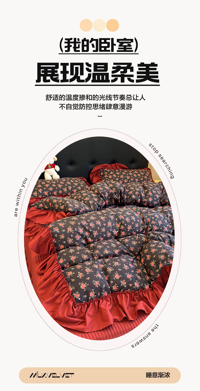 (总)赫梵茜 2025新款韩式花边定制款床盖四件套定制款,定制款梨花落,定制款花妖,定制款苏妲己,定制款一点点黑配黑,定制款一点点黑配红