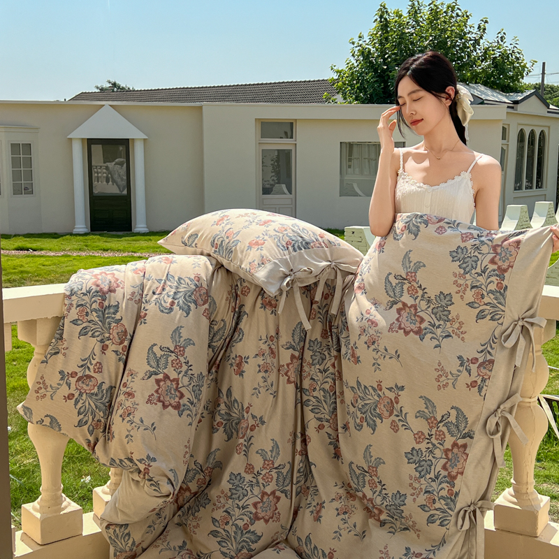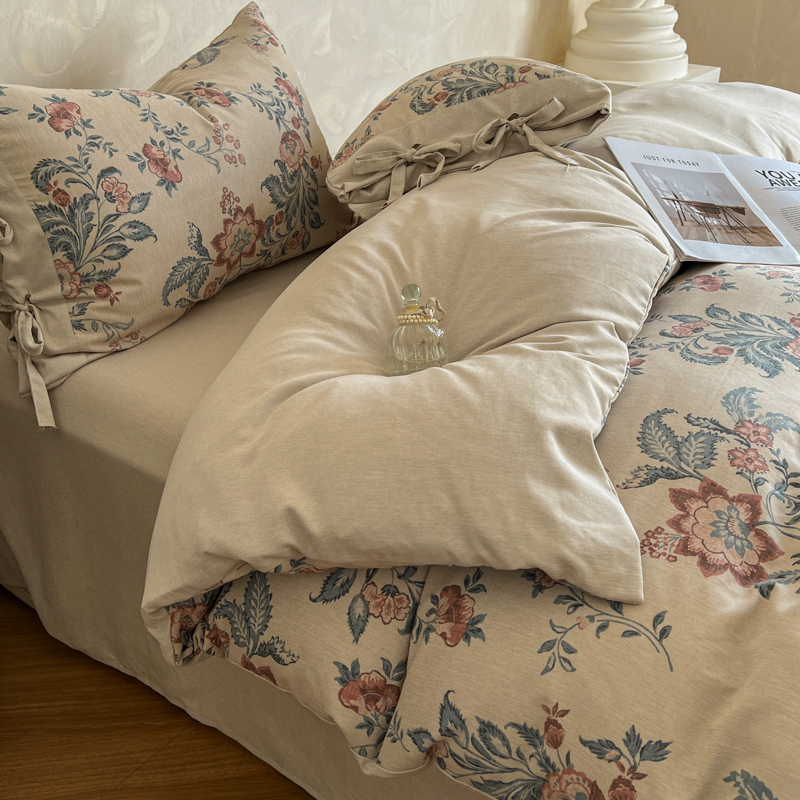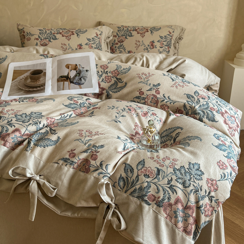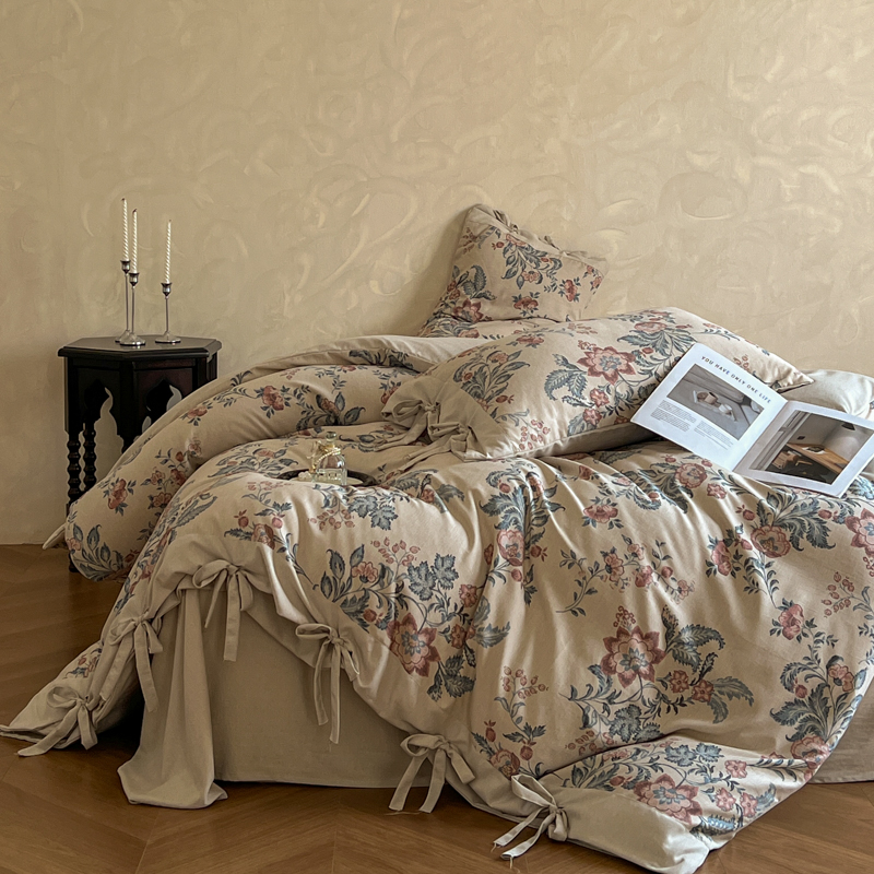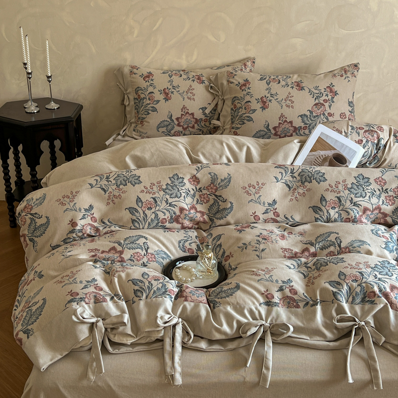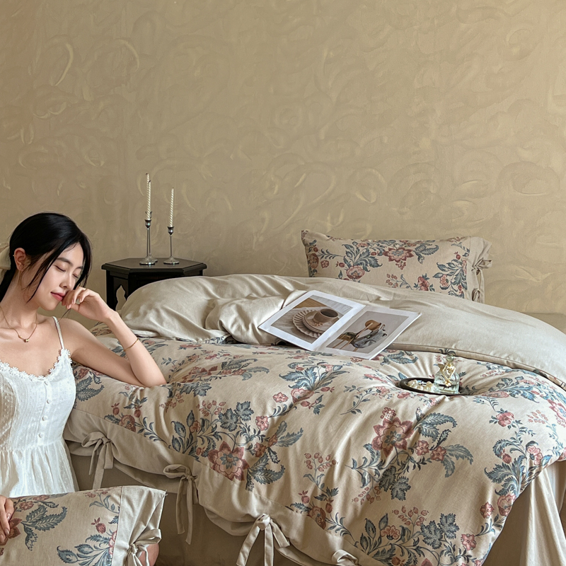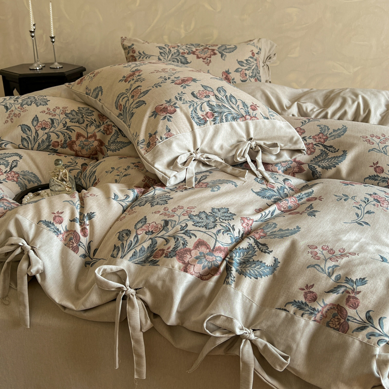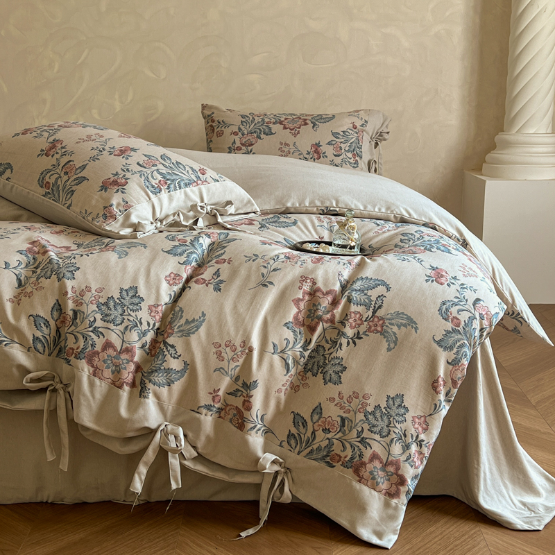 (总)漫仙阁家纺 2025新款加厚高克重原麻复古风印花四件套,布袋子,粉黛,花蕾-咖,花蕾-绿,金枝玉叶,锦簇,盛夏,素锦,向阳花开,一抹香,绽放