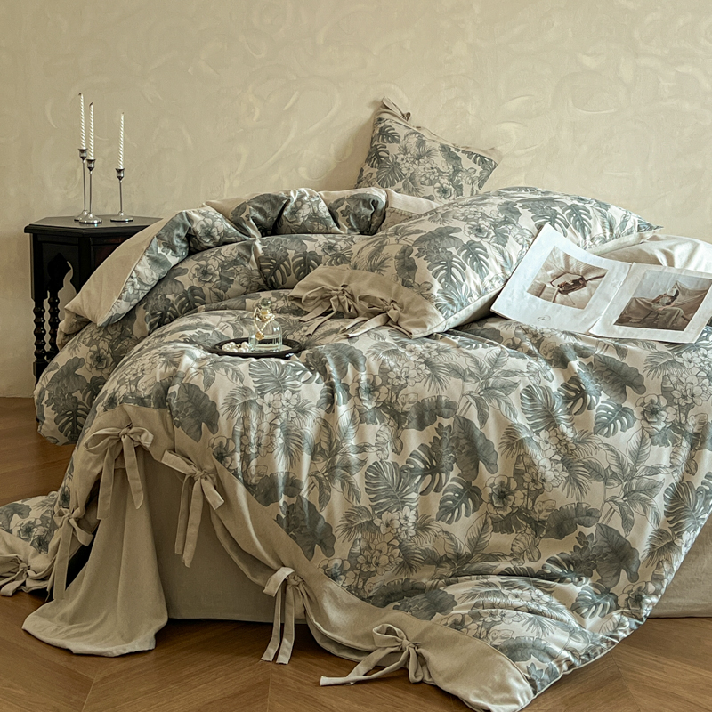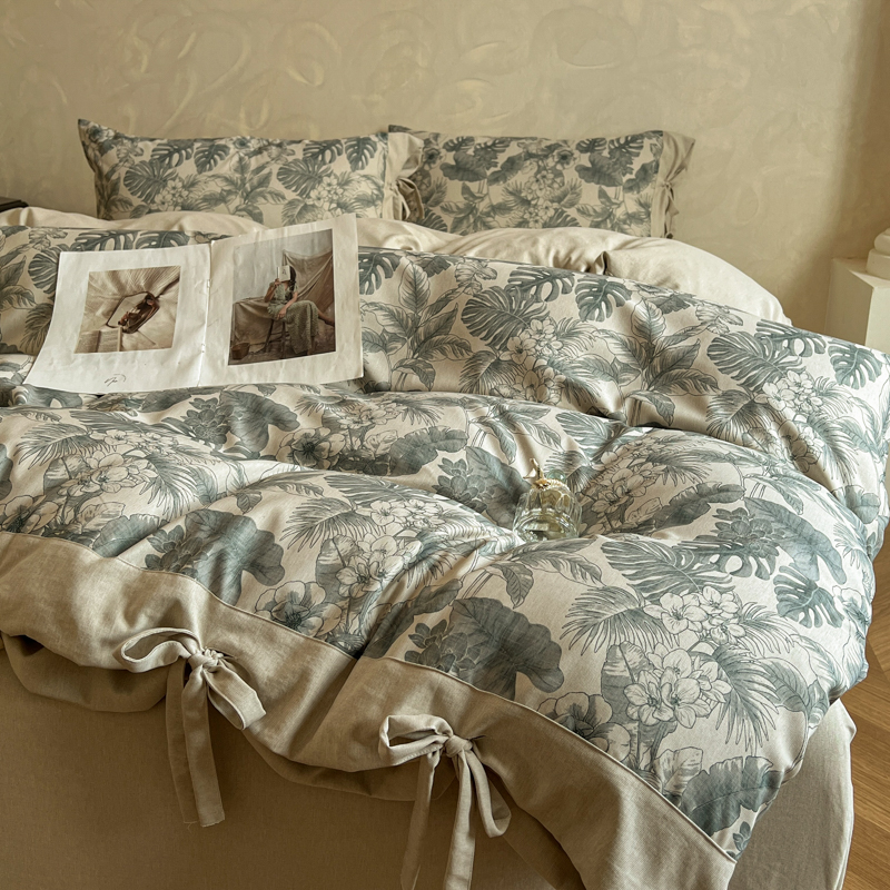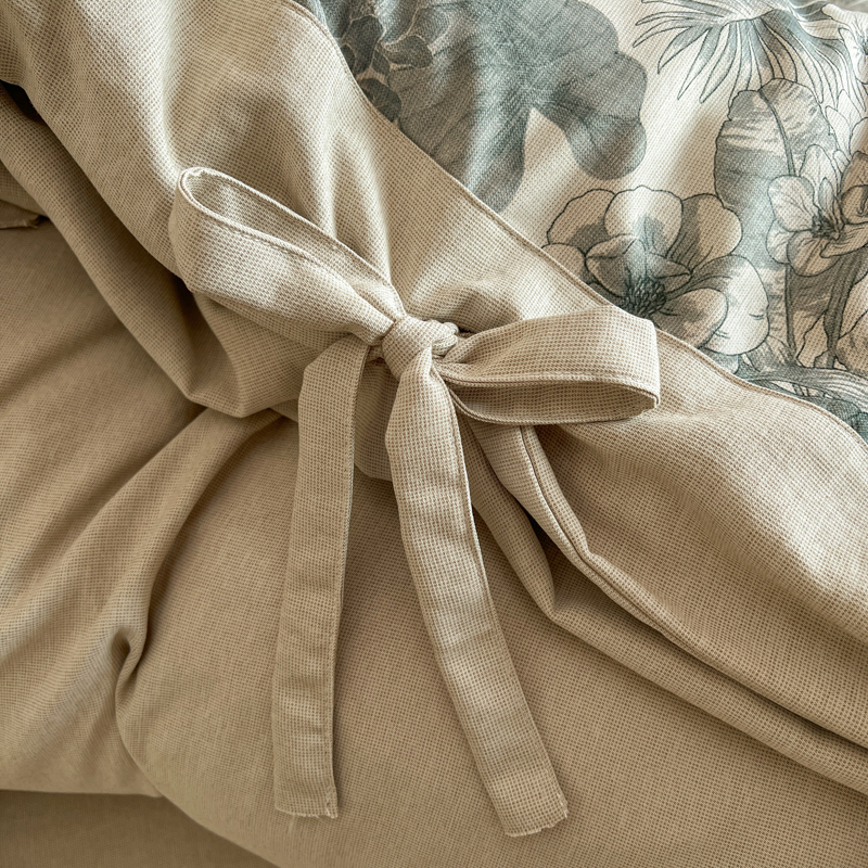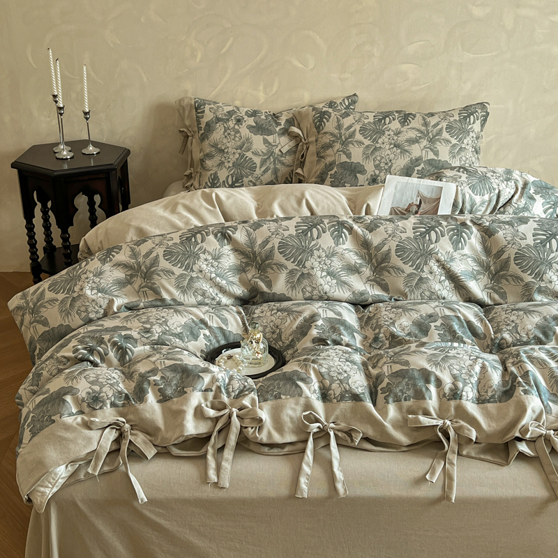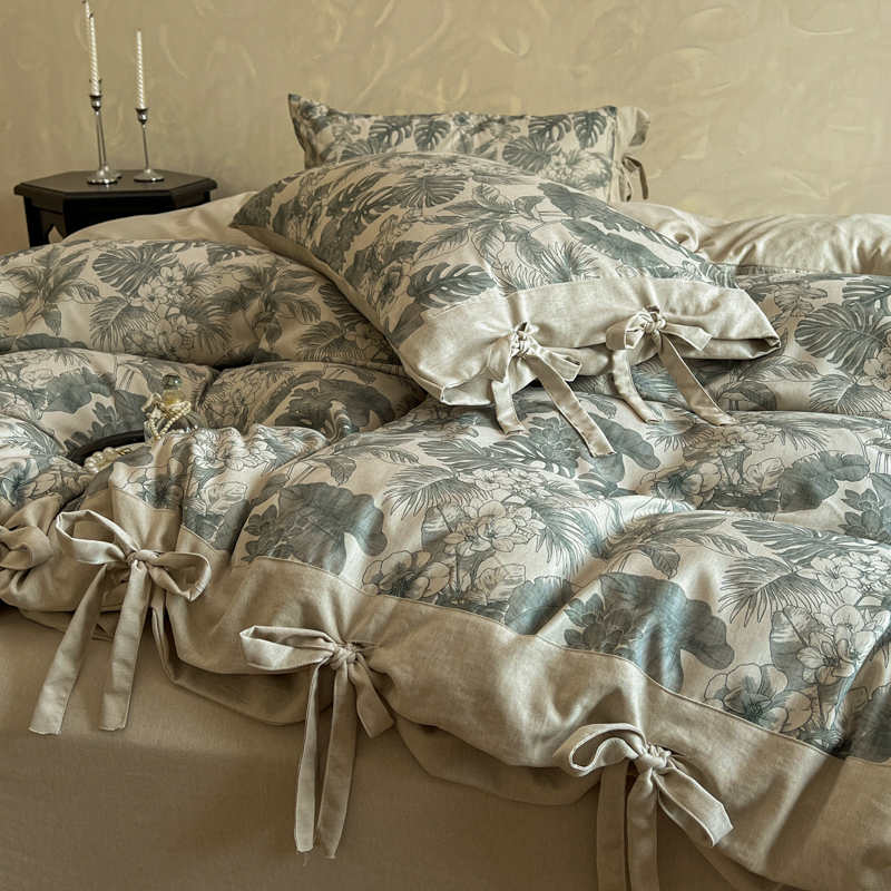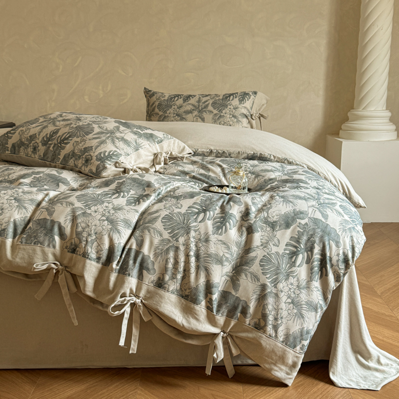 漫仙阁家纺 2026新款蝴蝶结汉麻四件套 叶栖