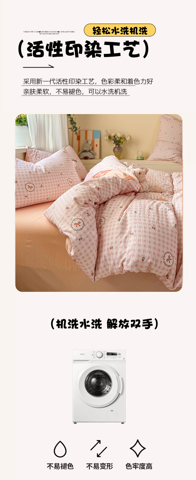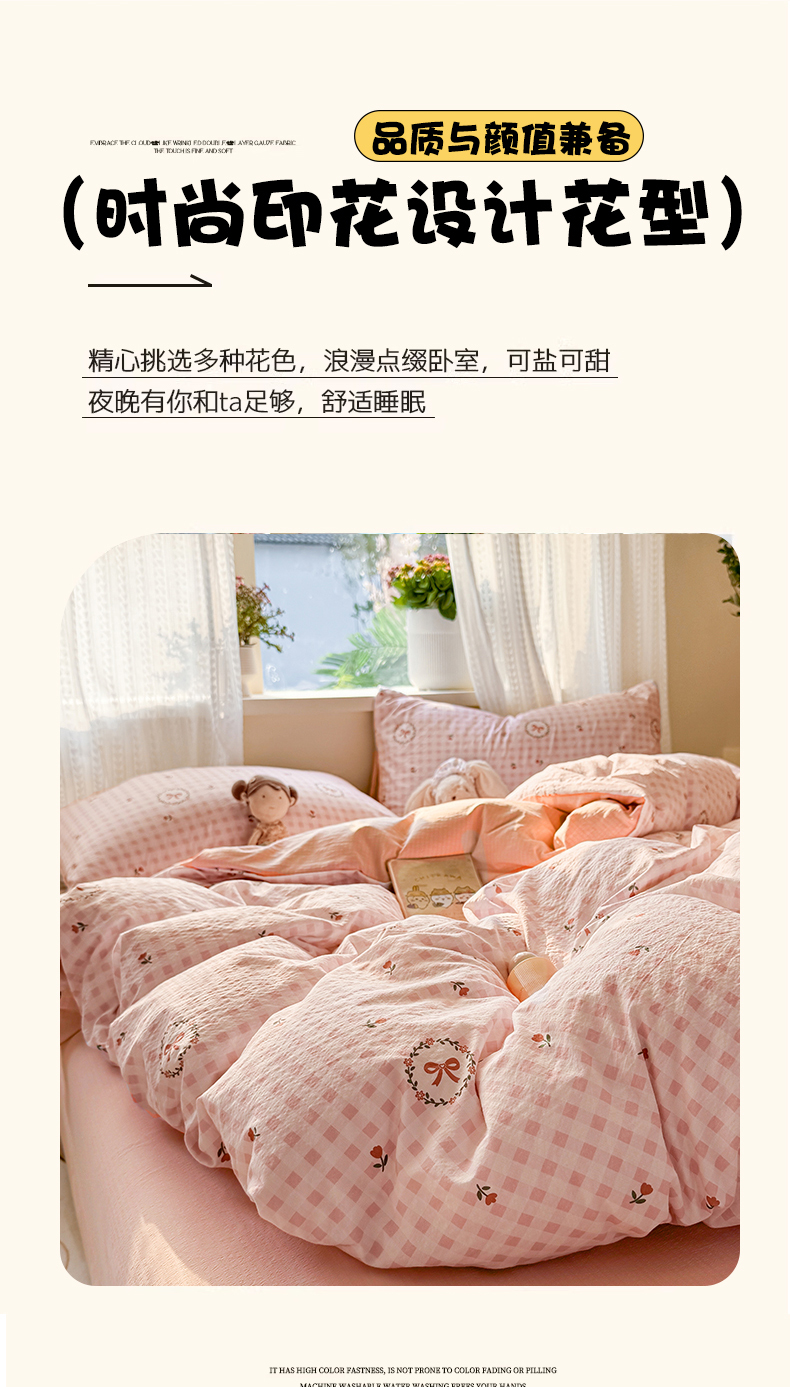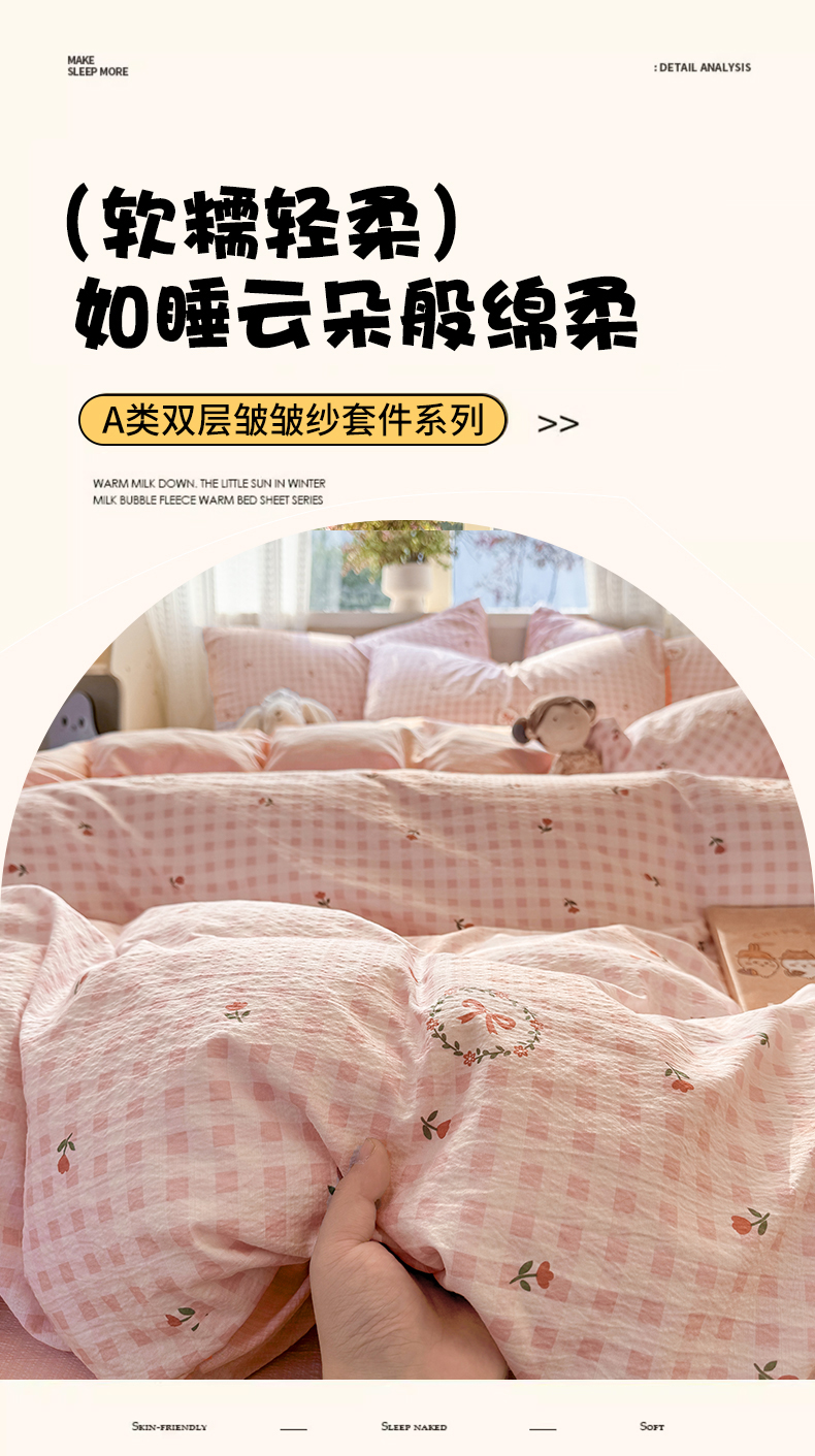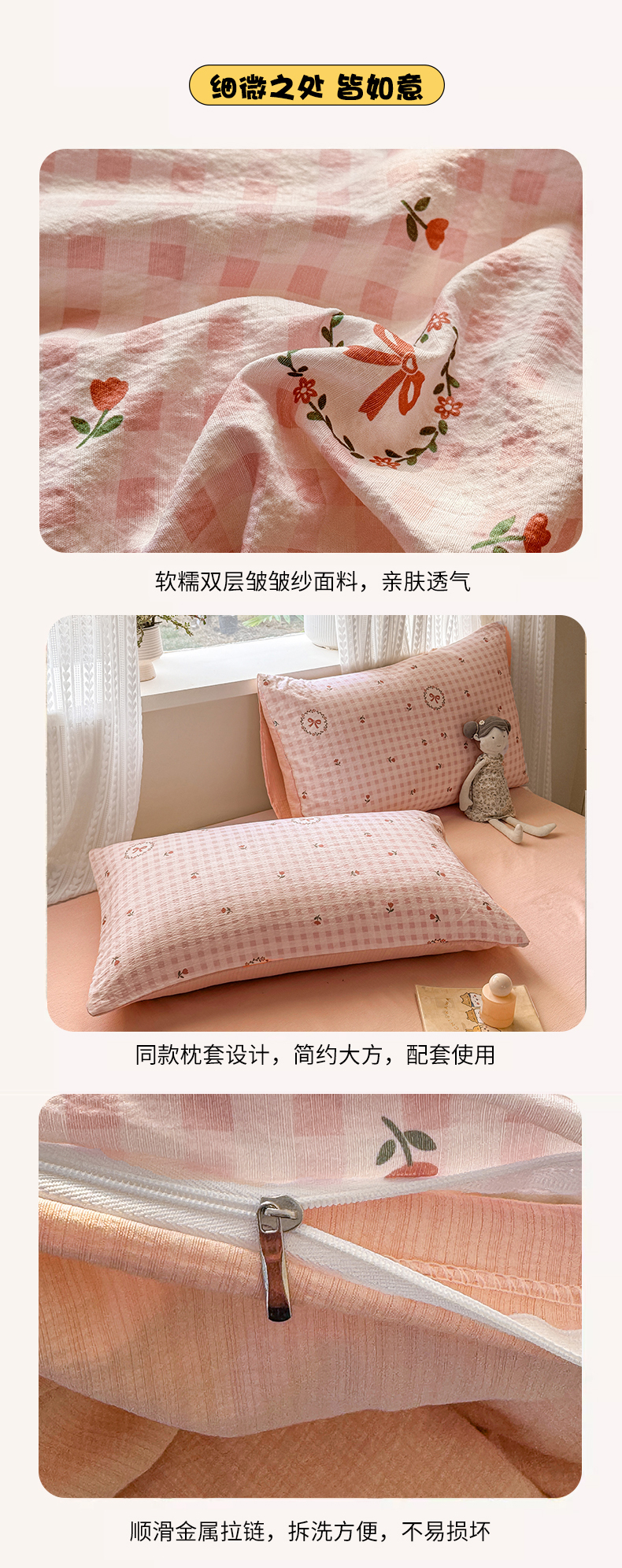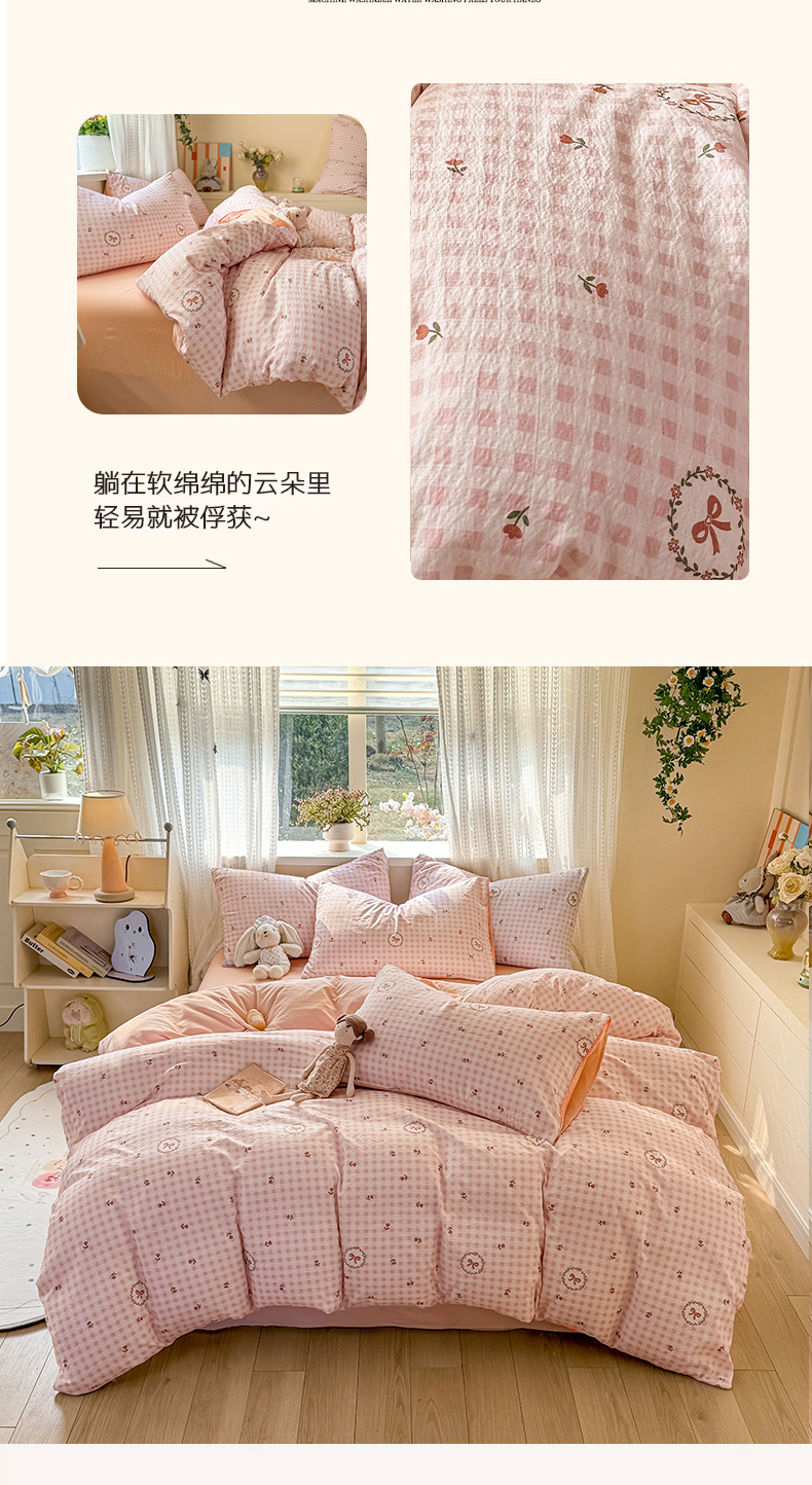 当前位置: 91家纺网 > 商品网购 > 床品套件 > 四件套 > 双层纱四件套 > 丽美人家纺 2026新款A类皱皱纱双层印花四件套 格子蝴蝶结