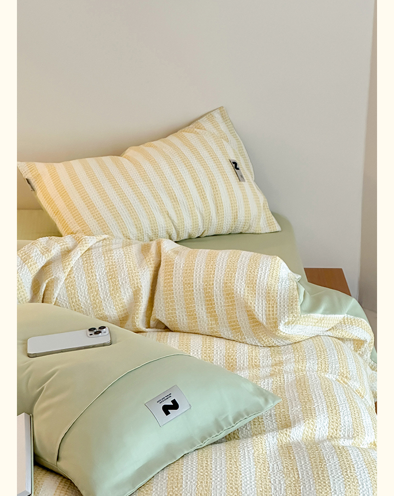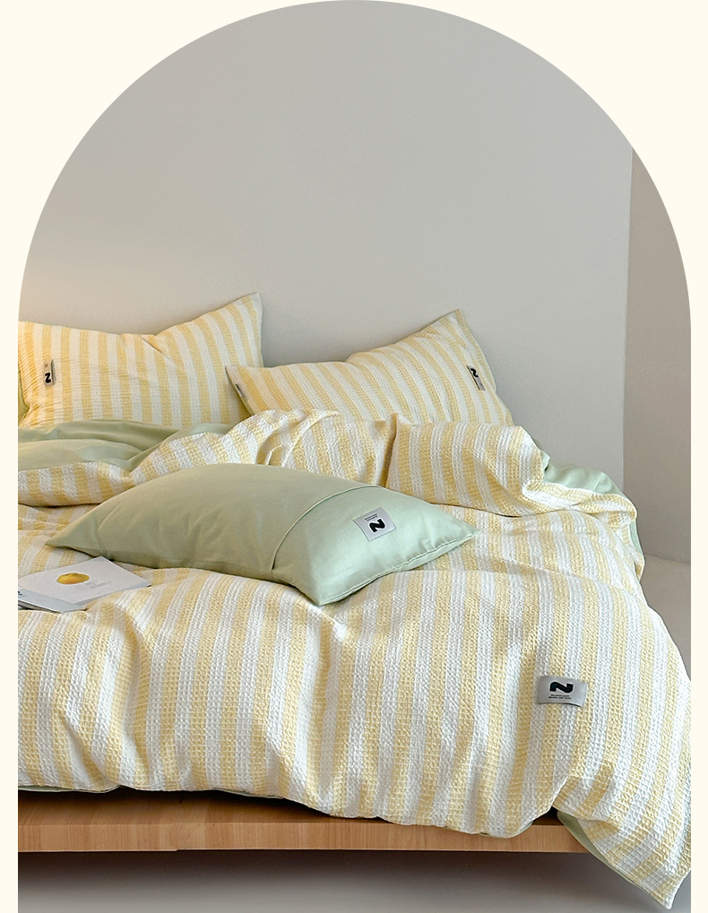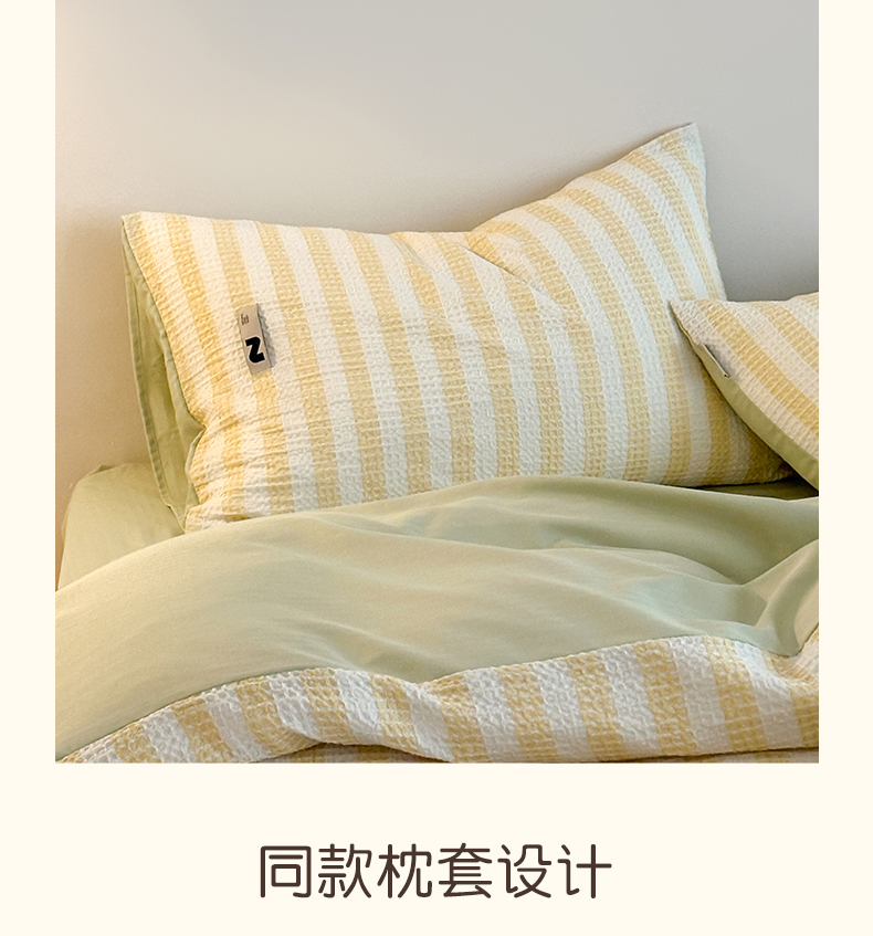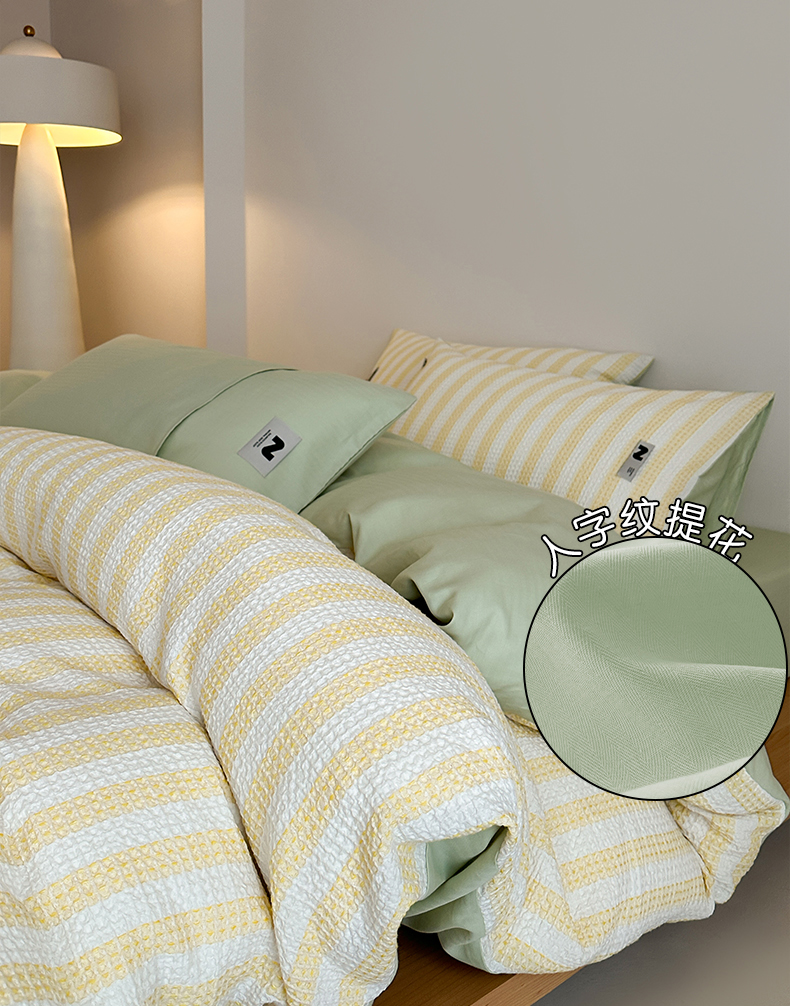 当前位置: 91家纺网 > 商品网购 > 床品套件 > 四件套 > 全棉普通四件套 > 静家居-简约原创家纺 2026新款ins小清晰简约全棉纯棉华夫格提花四件套-芝士系列 芝士-黄绿