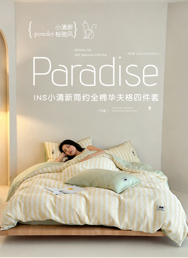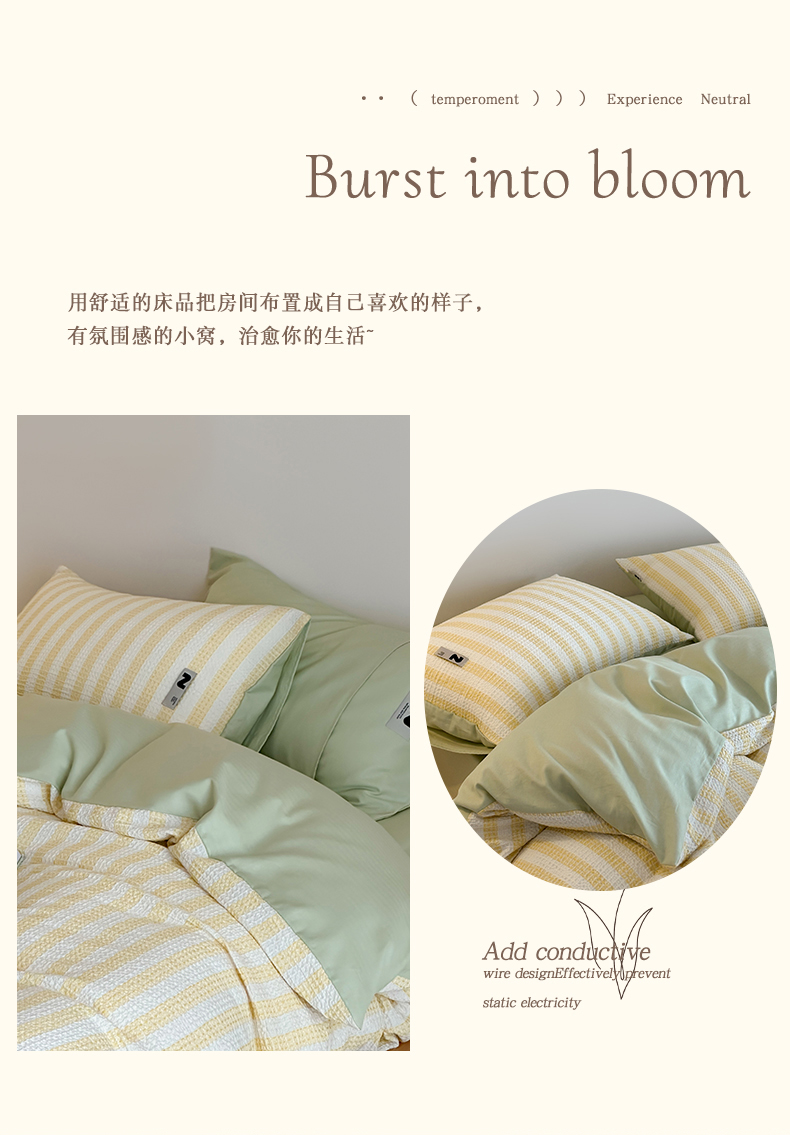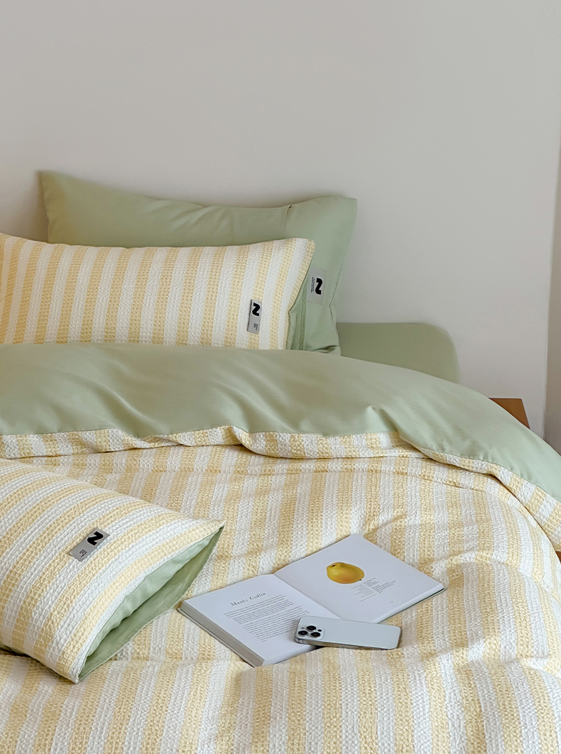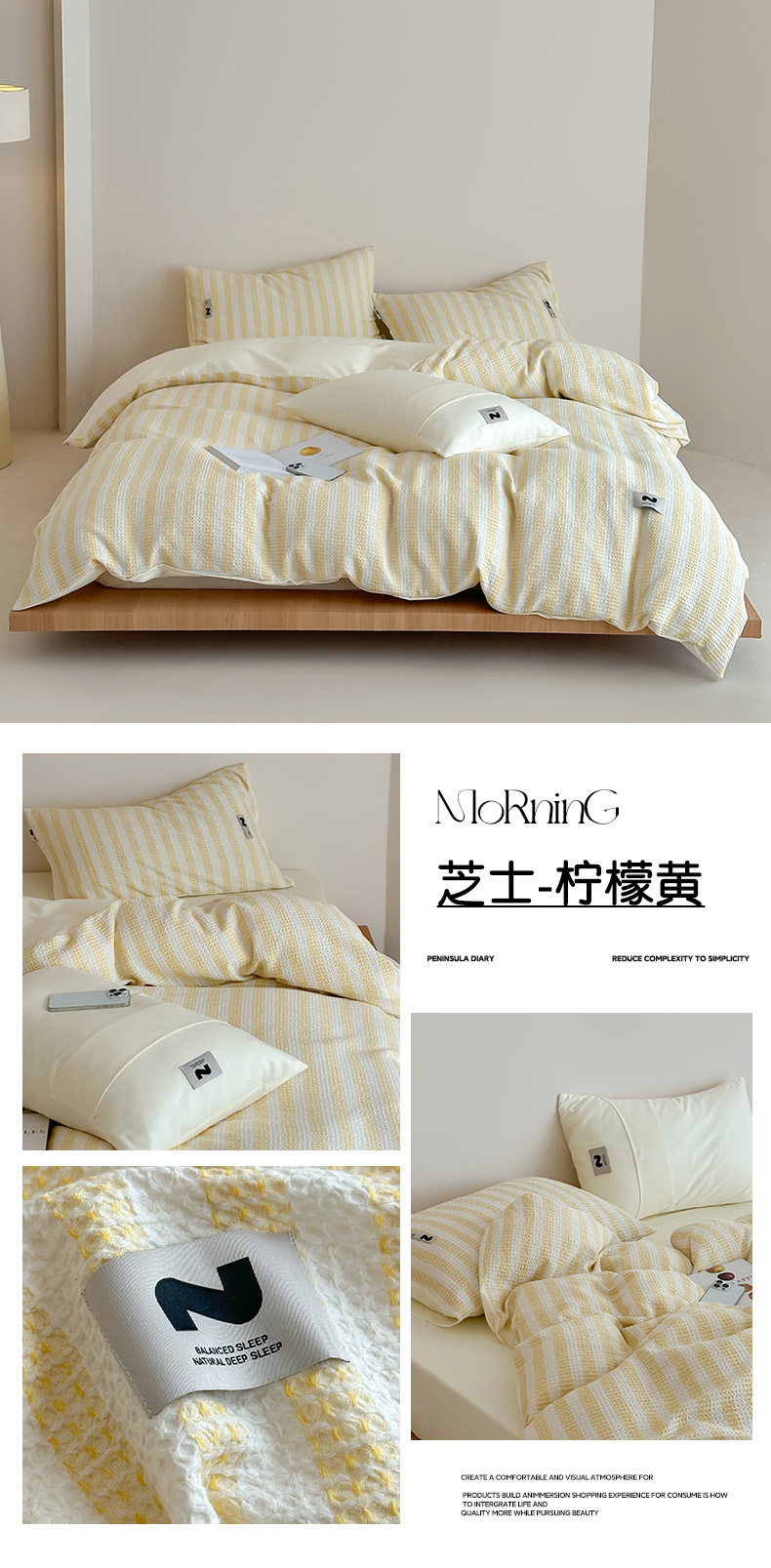当前位置: 91家纺网 > 商品网购 > 床品套件 > 四件套 > 全棉普通四件套 > 静家居-简约原创家纺 2026新款ins小清晰简约全棉纯棉华夫格提花四件套-芝士系列 芝士-黄绿