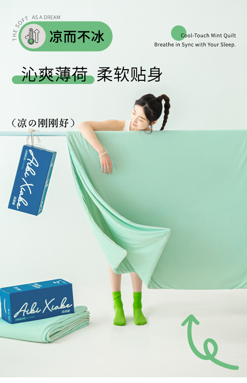 商品名称:爱彼家纺 2026夏季新款薄荷冰香凉感丝夏被夏凉被空调被-薄荷系列一 薄荷绿