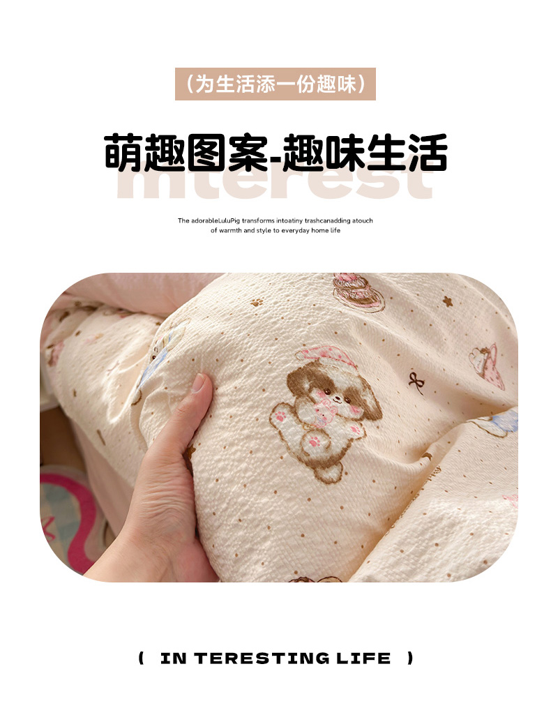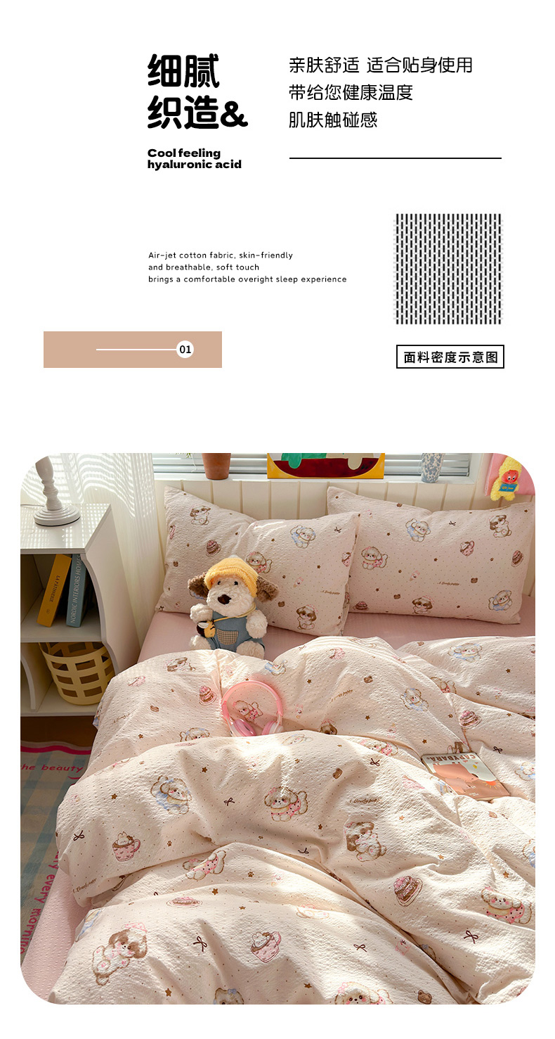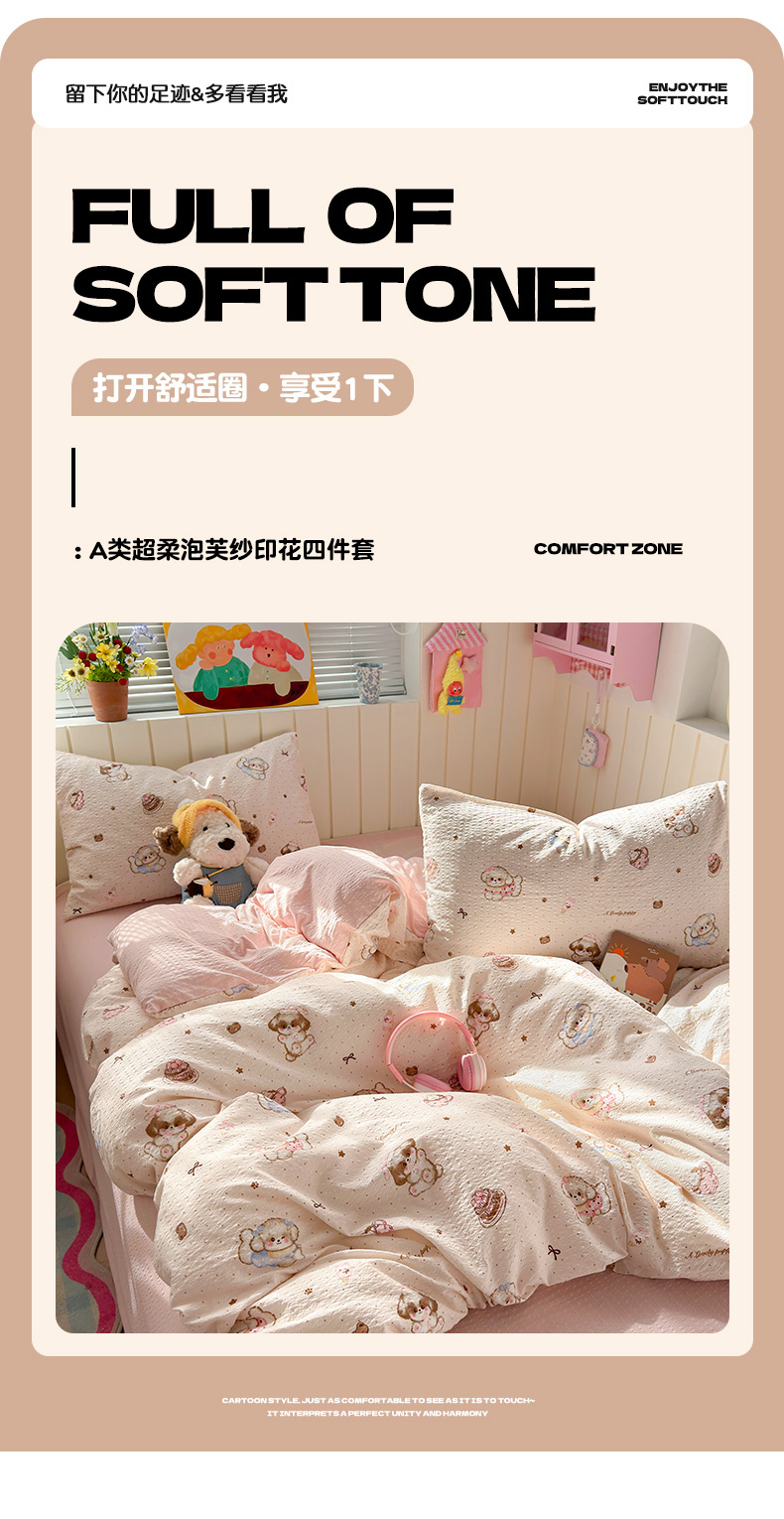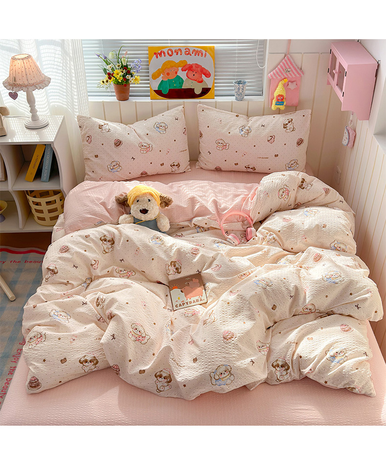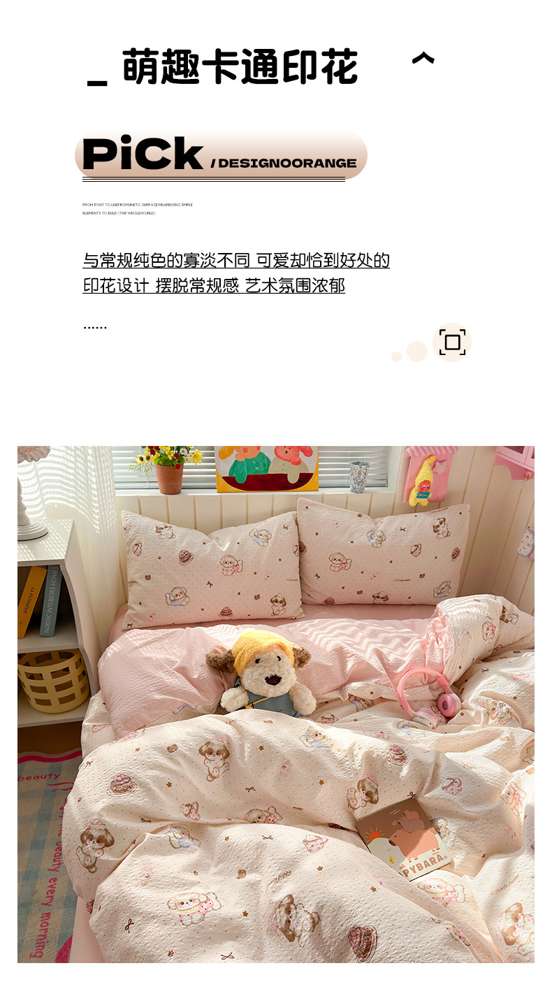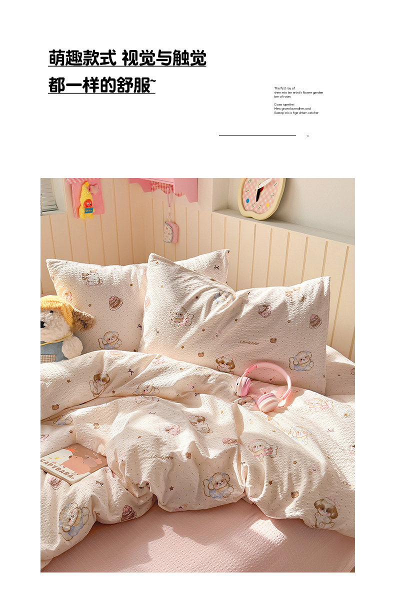 当前位置: 91家纺网 > 商品网购 > 床品套件 > 四件套 > 化纤普通四件套 > 奈颜 2026新款A类泡芙纱印花四件套学生宿舍三件套-卡通印花系列 甜品萌狗