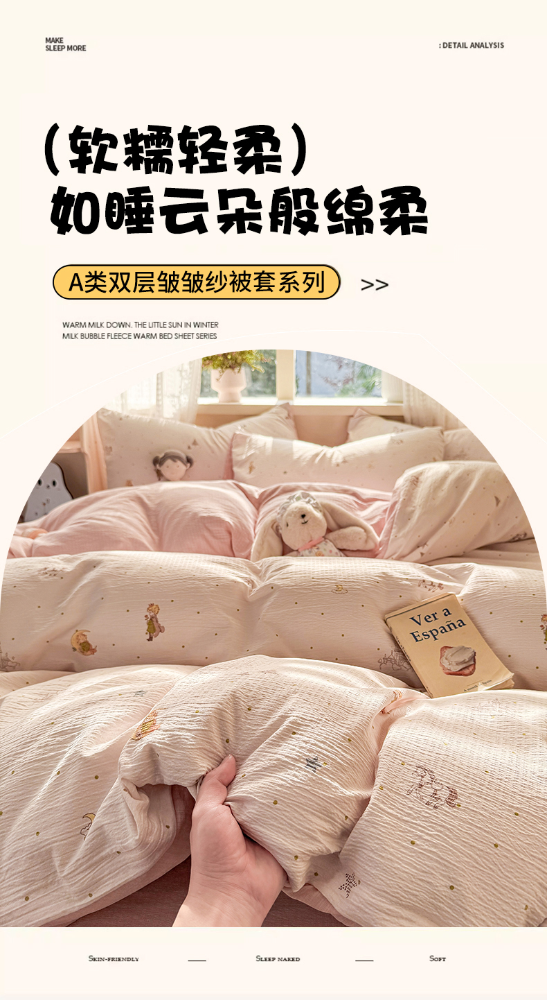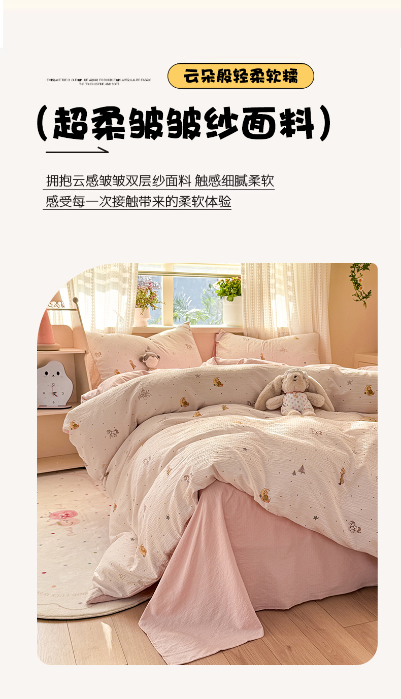 (总)丽美人家纺 2026新款双层皱皱纱大豆夹棉床笠单床笠床笠单件,JM花开漫漫,JM贝拉,JM布兰卡,JM粉格猫咪,JM格仔萌宠,JM可爱小狗,JM腊肠狗,JM乐园,JM玛丽,JM时光,JM月境骑踪,JM紫雾叶兔